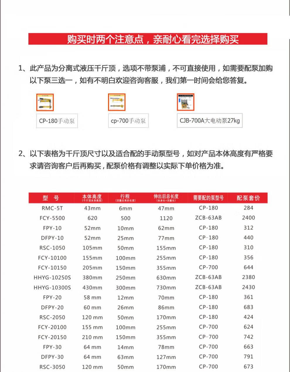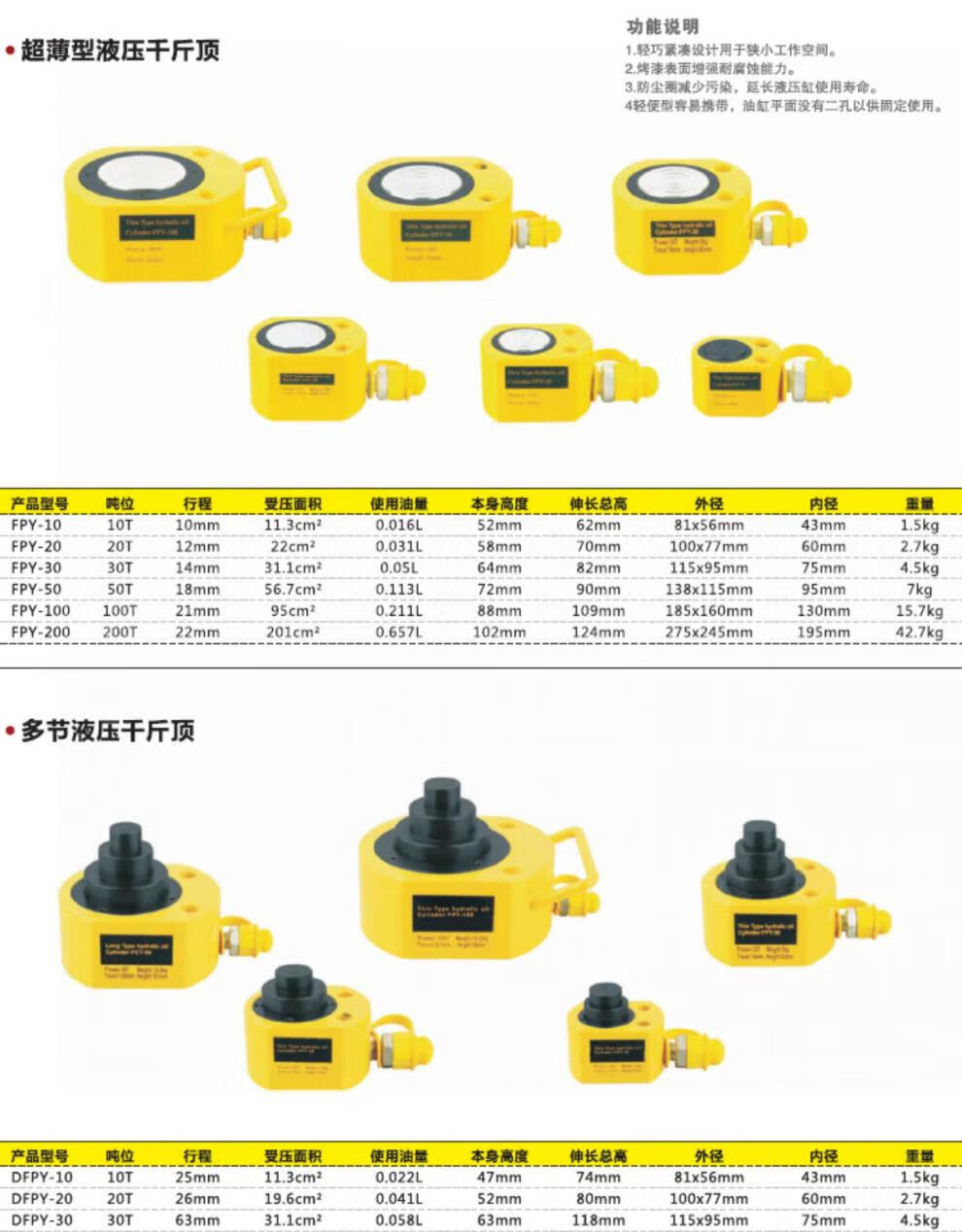 Yuhuan separated hydraulic jack 10 tons 20 tons 30 tons 50 tons 100 tons electric manual synchronized cylinder vertical and horizontal type 10T stroke 12mm