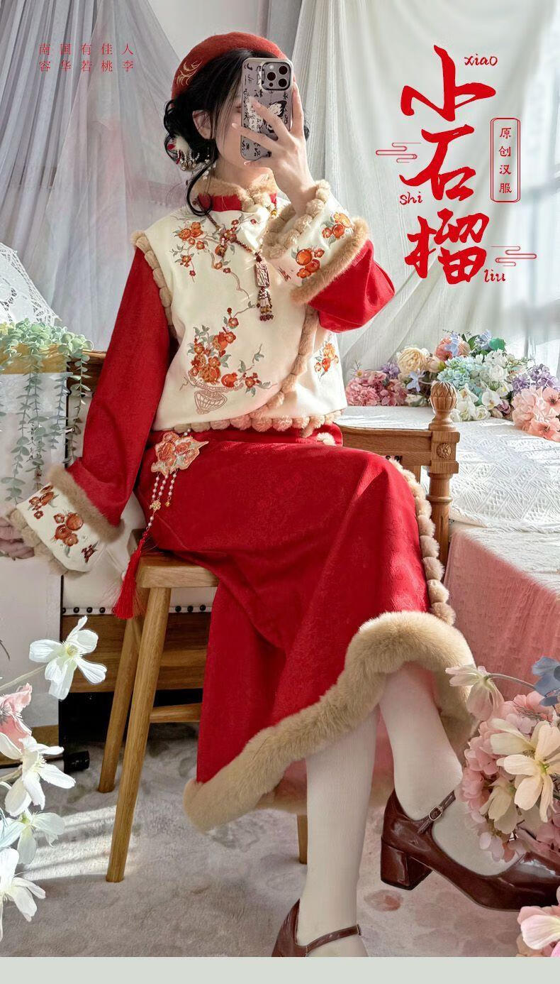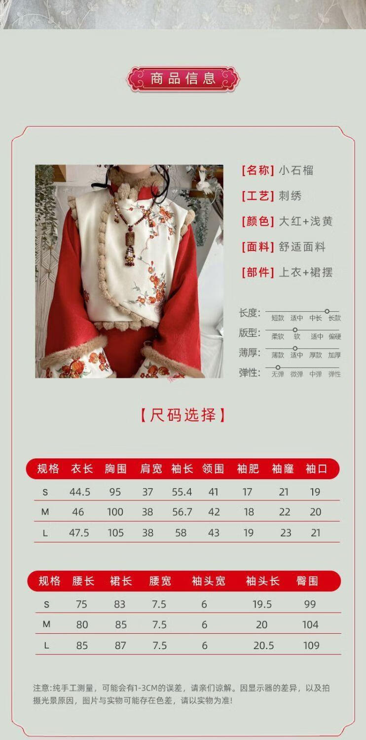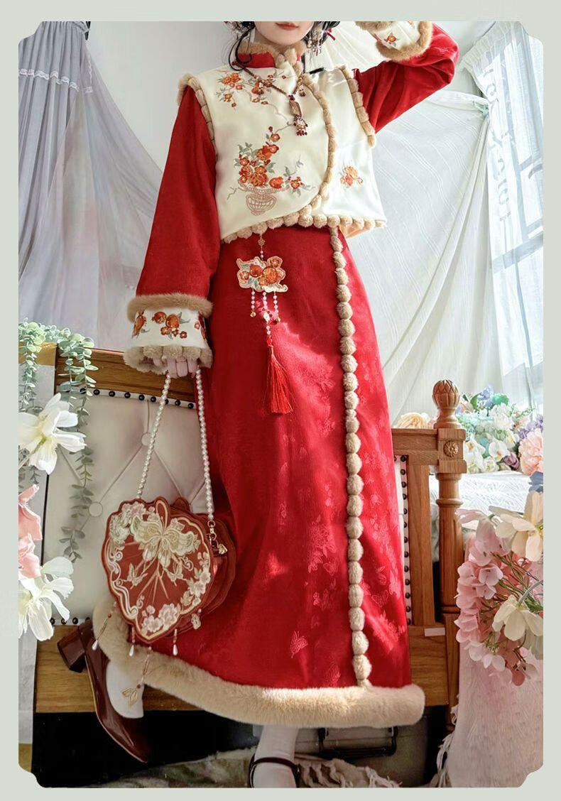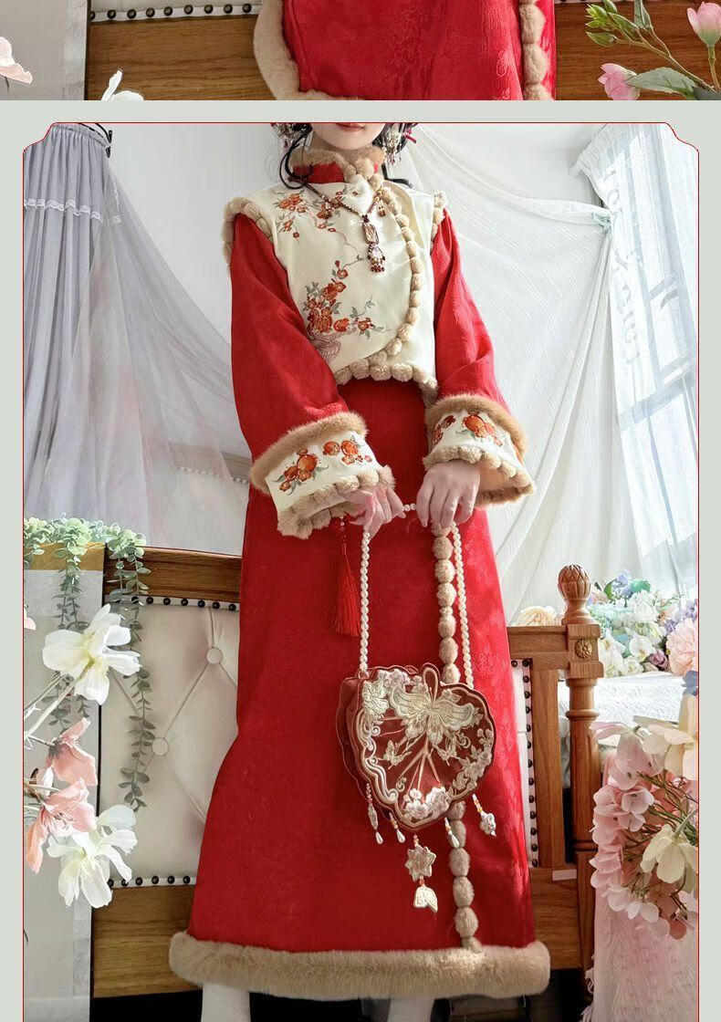 Pierre Cardin 2025 Winter Hanfu Women New Chinese Style Chinese New Year Clothes Plus Velvet Thickening Daily Winter Improved Cheongsam Vest Small Pomegranate Complete Set Free Pendant S