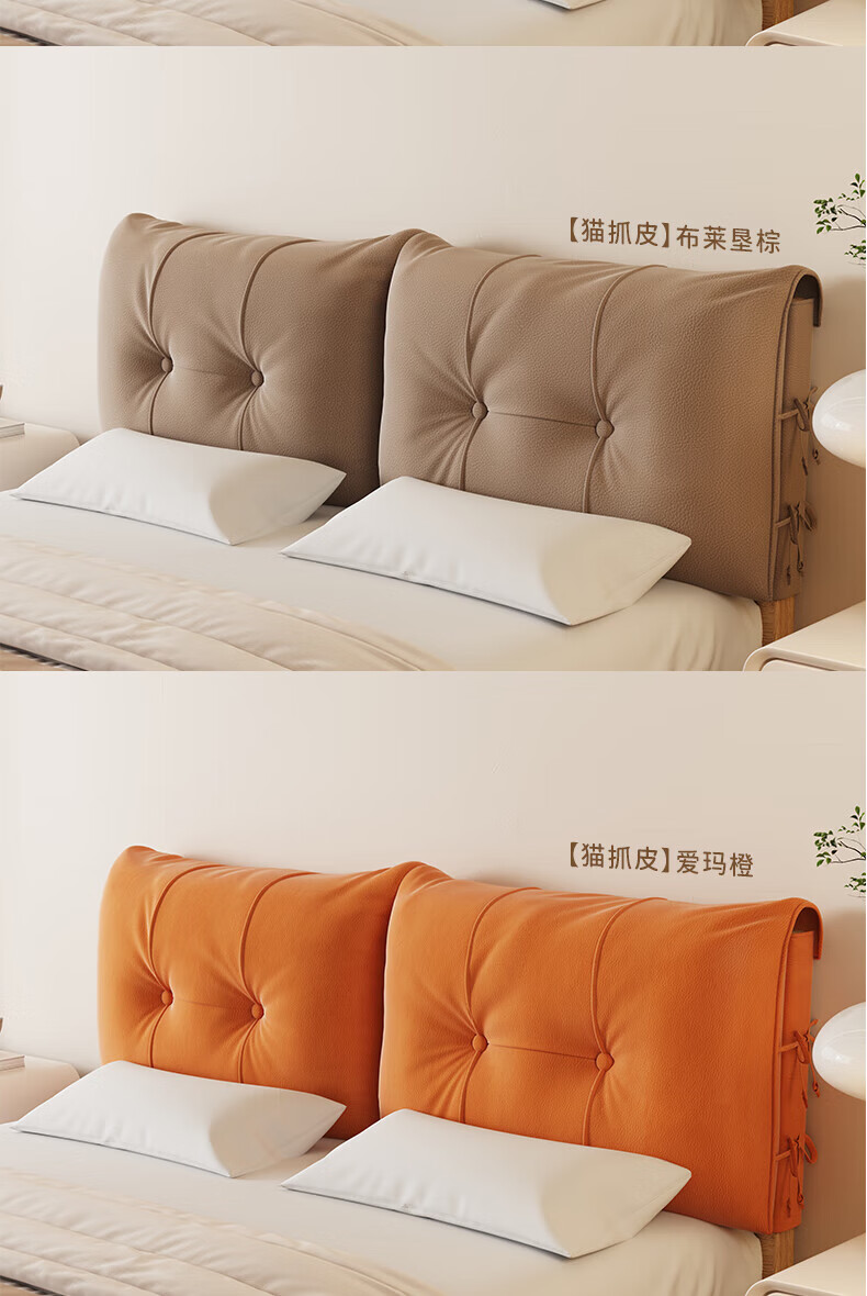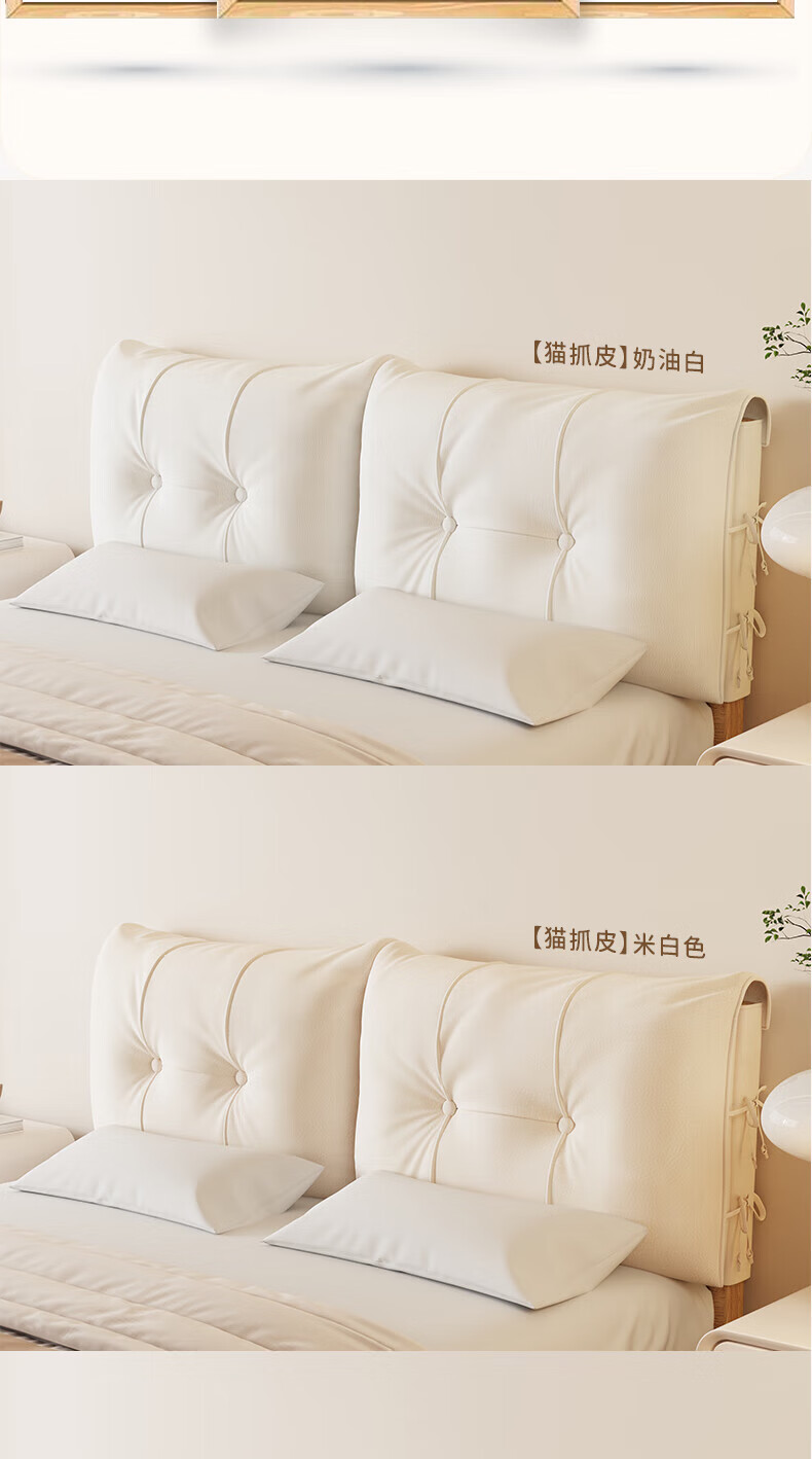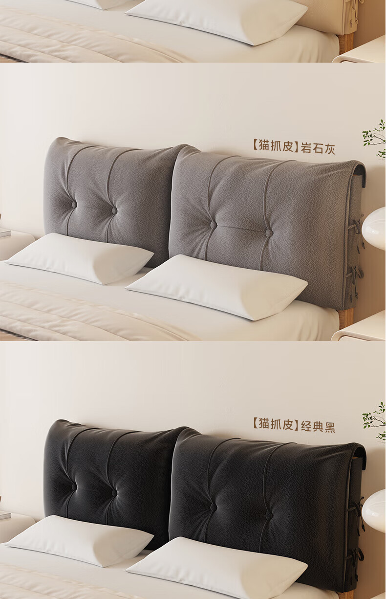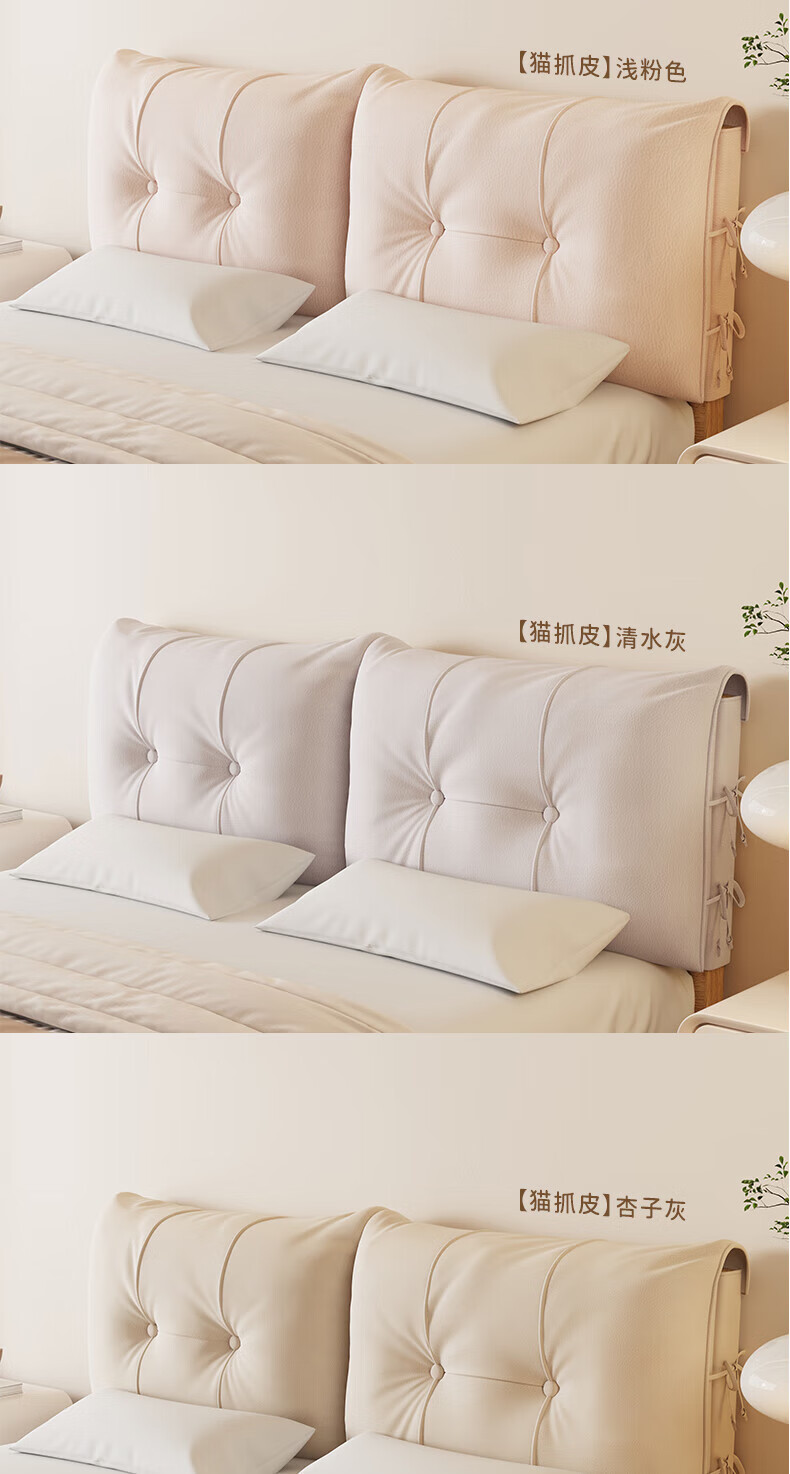 He Jiagong Yunduo cream style leather bedside soft cushion cushion strap headboard back custom cover tatami cushion light luxury anti-scratch leather milk bag apricot gray length 90*height 60*thick 12cm bedside set
