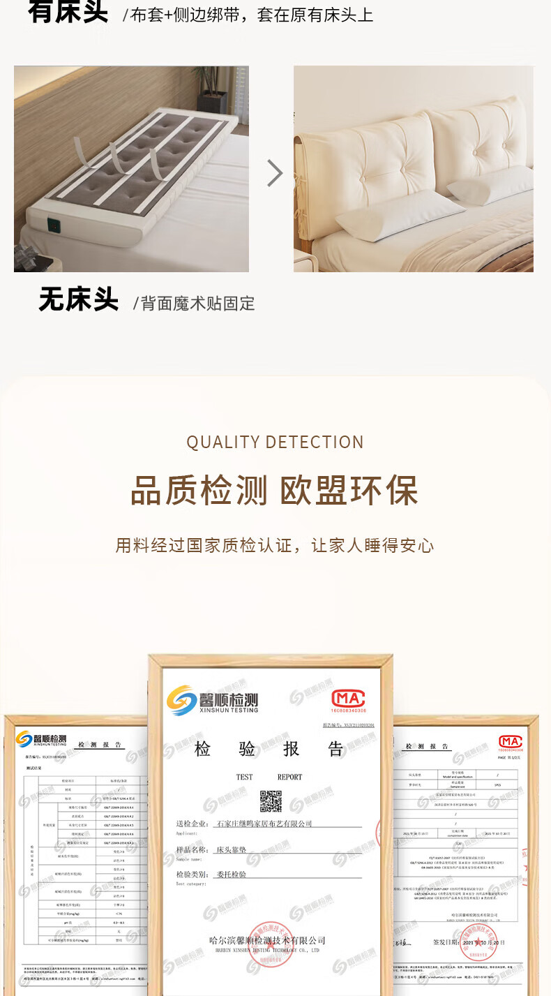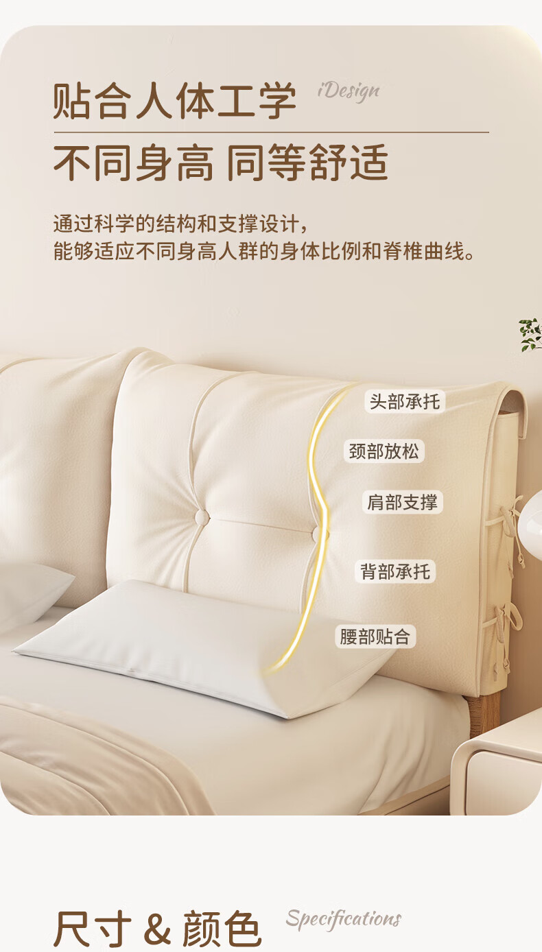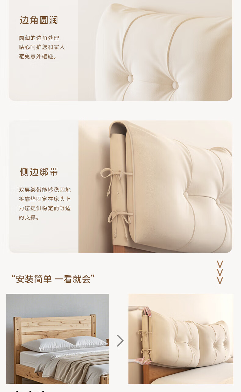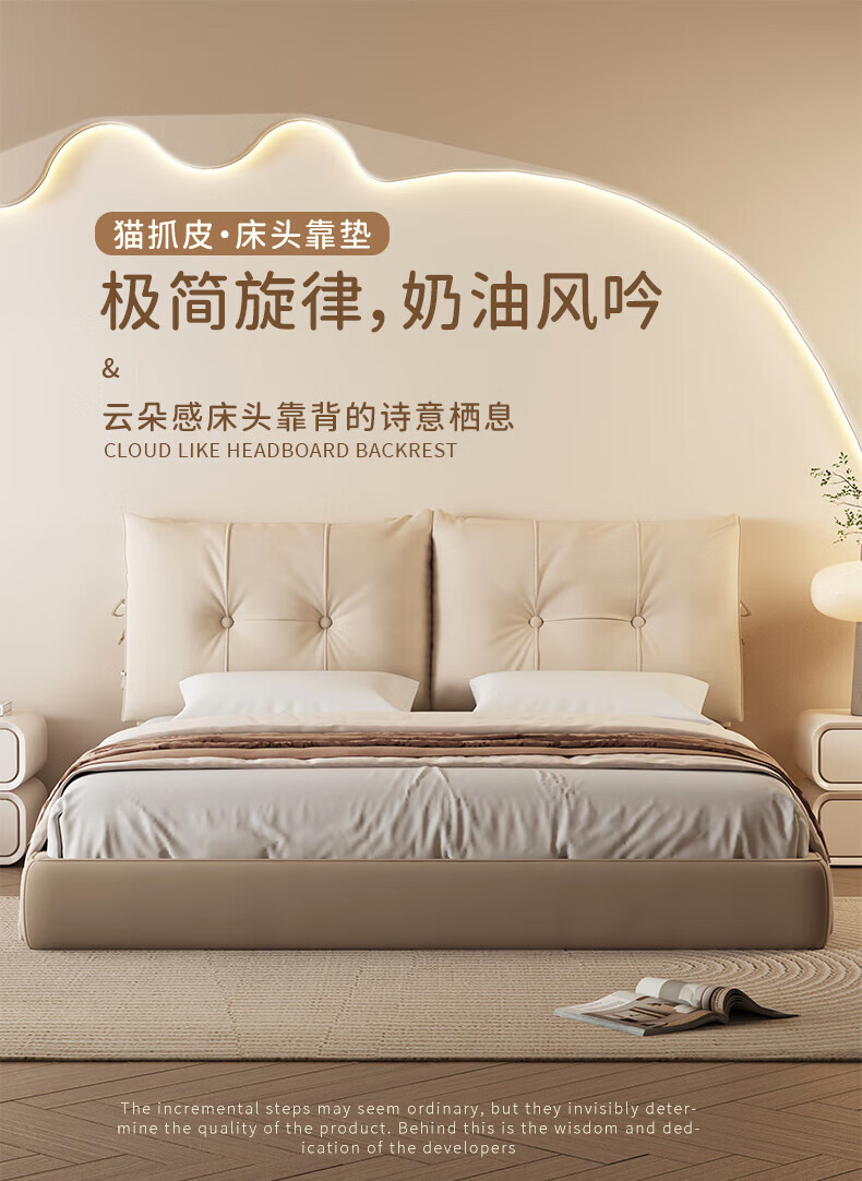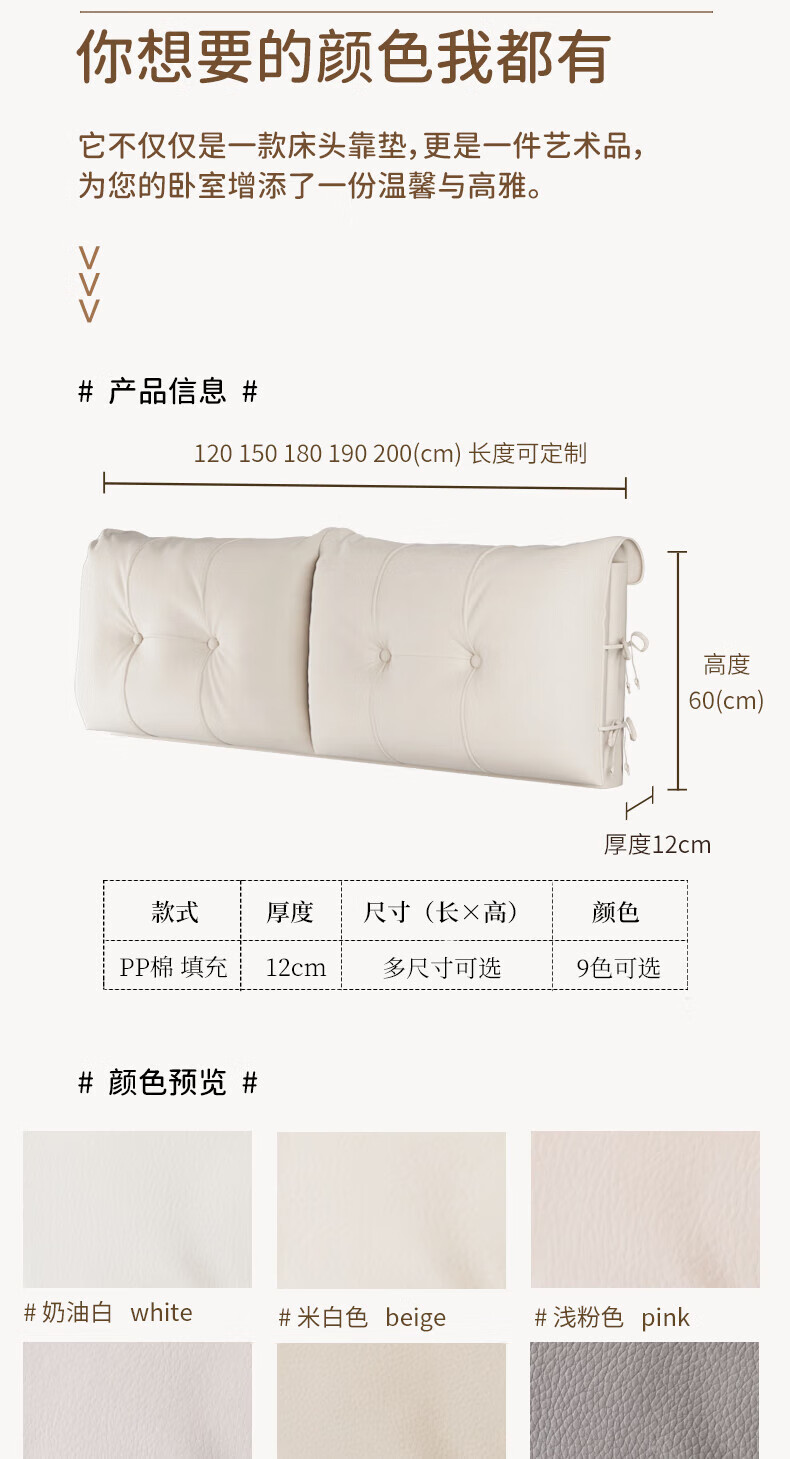 He Jiagong Yunduo cream style leather bedside soft cushion cushion strap headboard back custom cover tatami cushion light luxury anti-scratch leather milk bag apricot gray length 90*height 60*thick 12cm bedside set