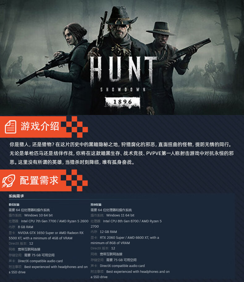 Steam Genuine Hunting Showdown 1896 Country Activation Code CDKey PC Genuine Game Son of Gunpowder DLC requires the game body Simplified Chinese