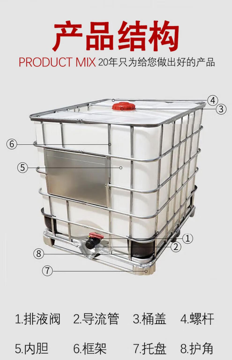 Ton barrel new thickened plastic square barrel 1000L water tank 1 ton water storage diesel chemical barrel 500 liter ibc container barrel 1000L white liner (cleaned)