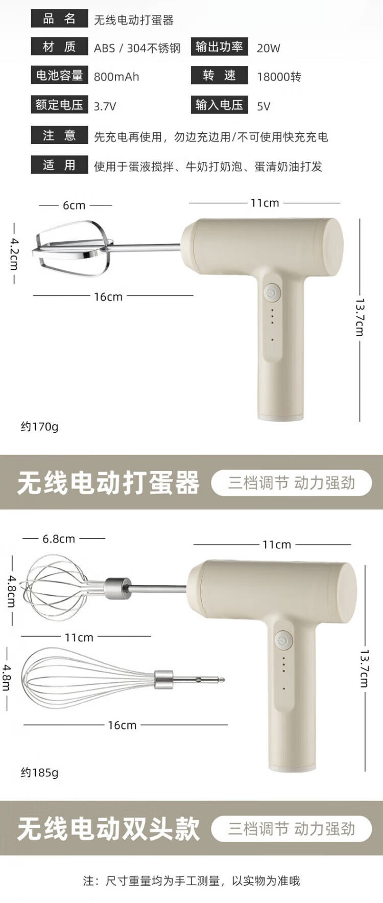 Wing Fantasy German brand rechargeable electric egg beater stainless steel cream whipper mixer household whisk double-head rechargeable model
