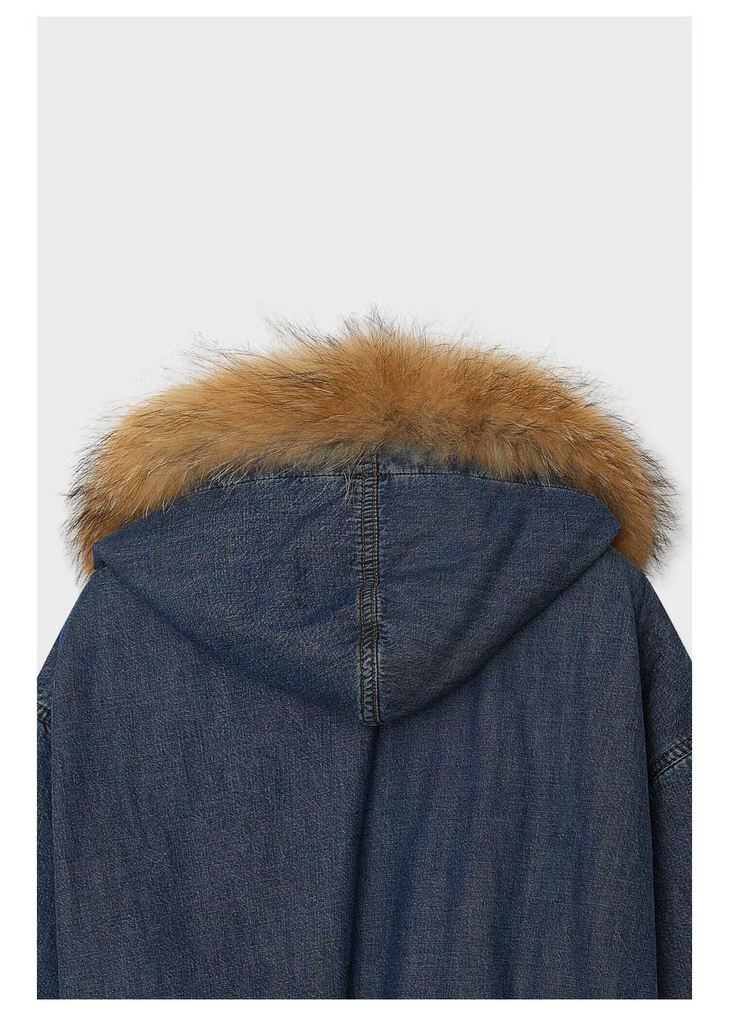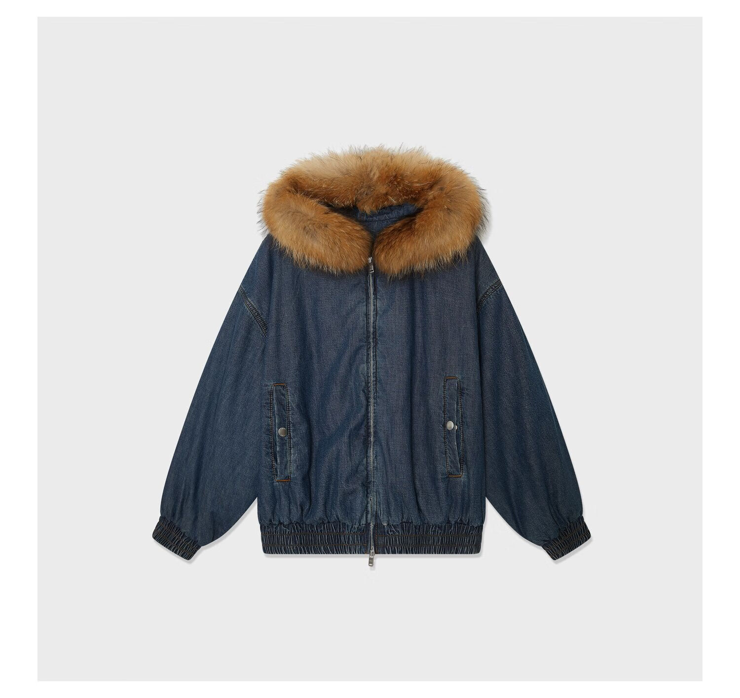 IMMI25 new autumn and winter thin denim quilted cotton hooded jacket MWEFWDJK0787X navy blue S 0