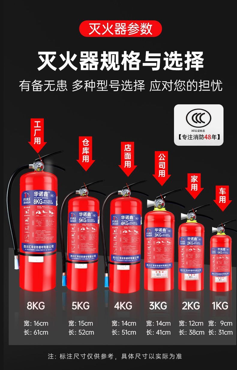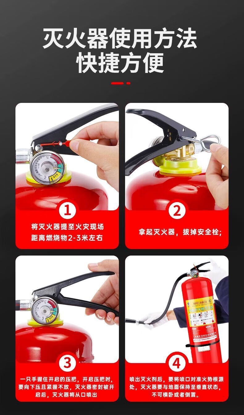 FANCYCHIC fire extinguisher 4kg dry powder portable for home store and vehicle 2/3/5/8kg fire extinguisher equipment set 1kg dry powder fire extinguisher for vehicle/home use produced in December 2024 (old national standard)
