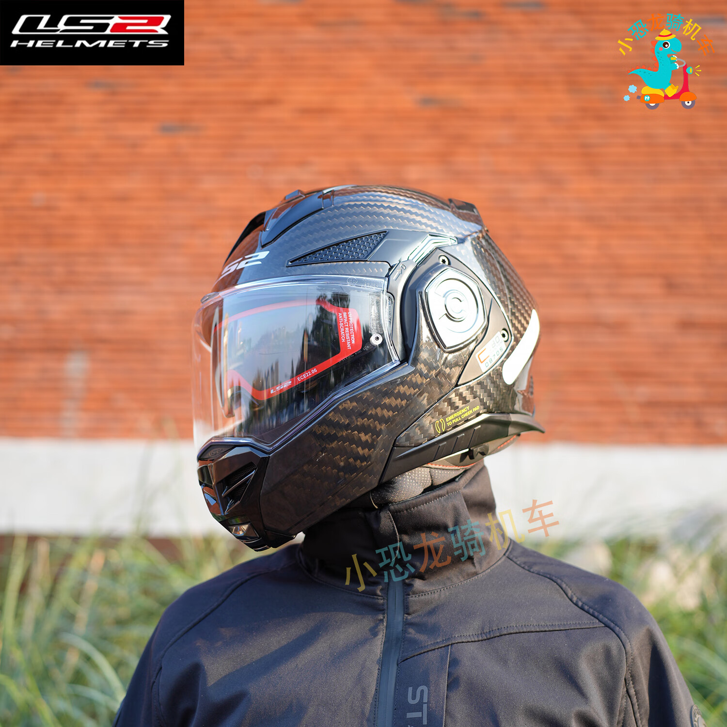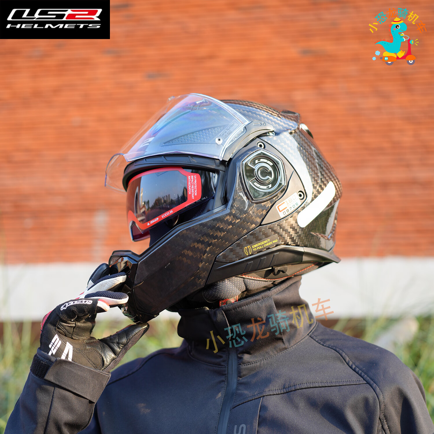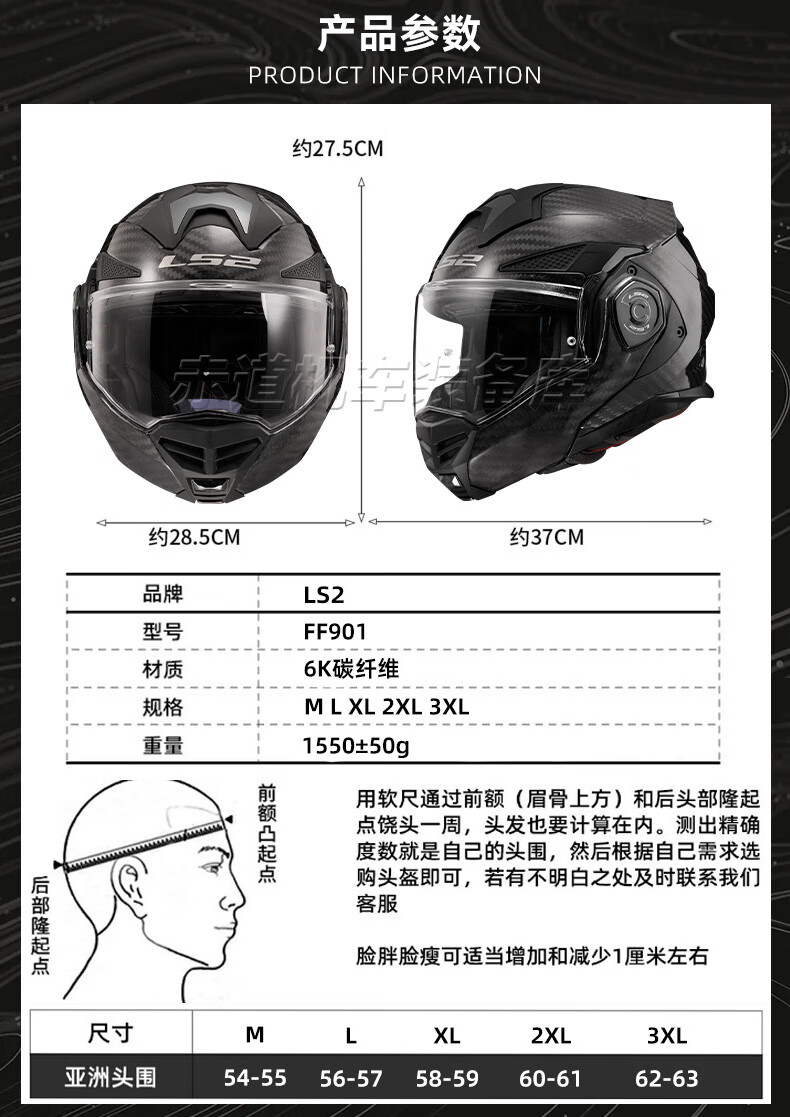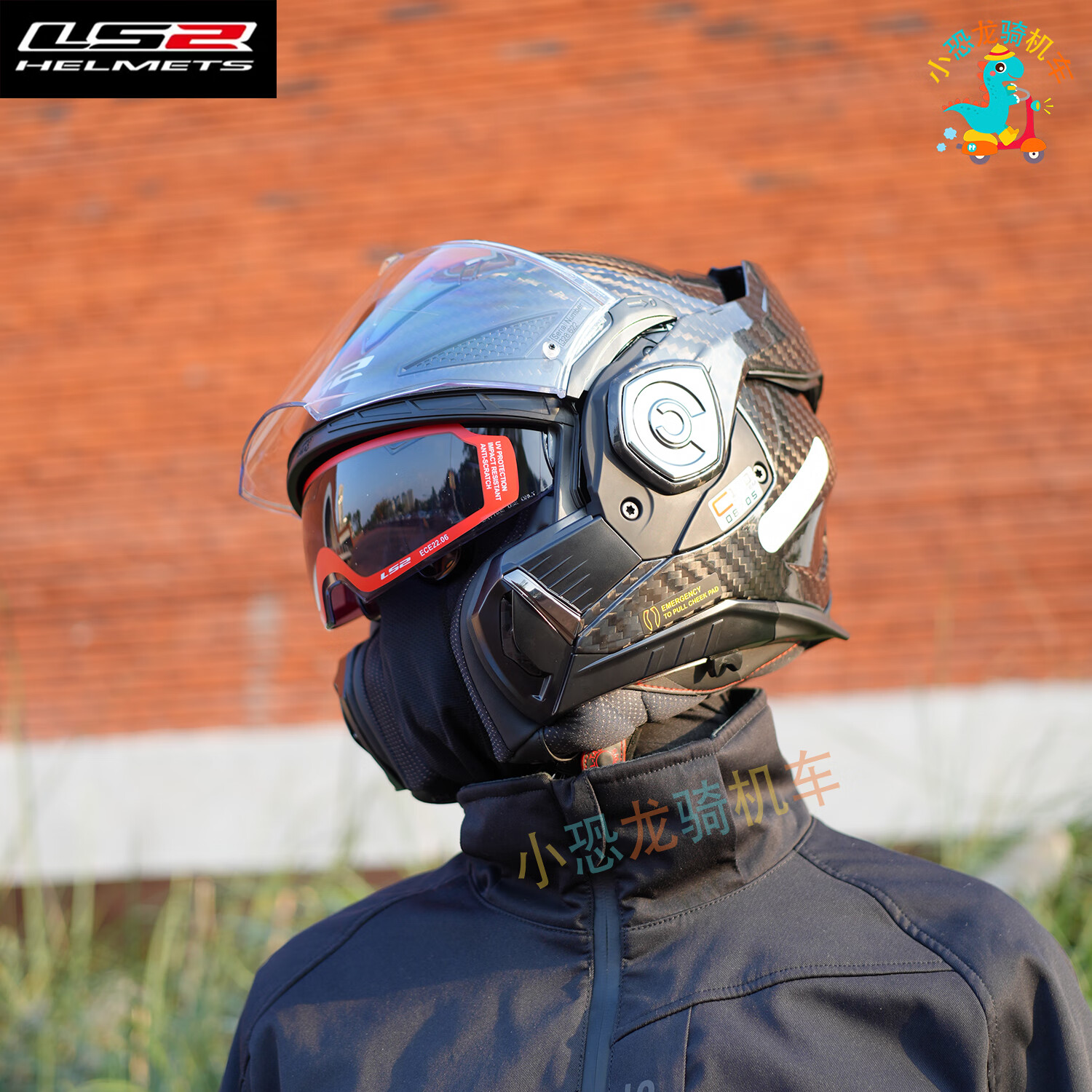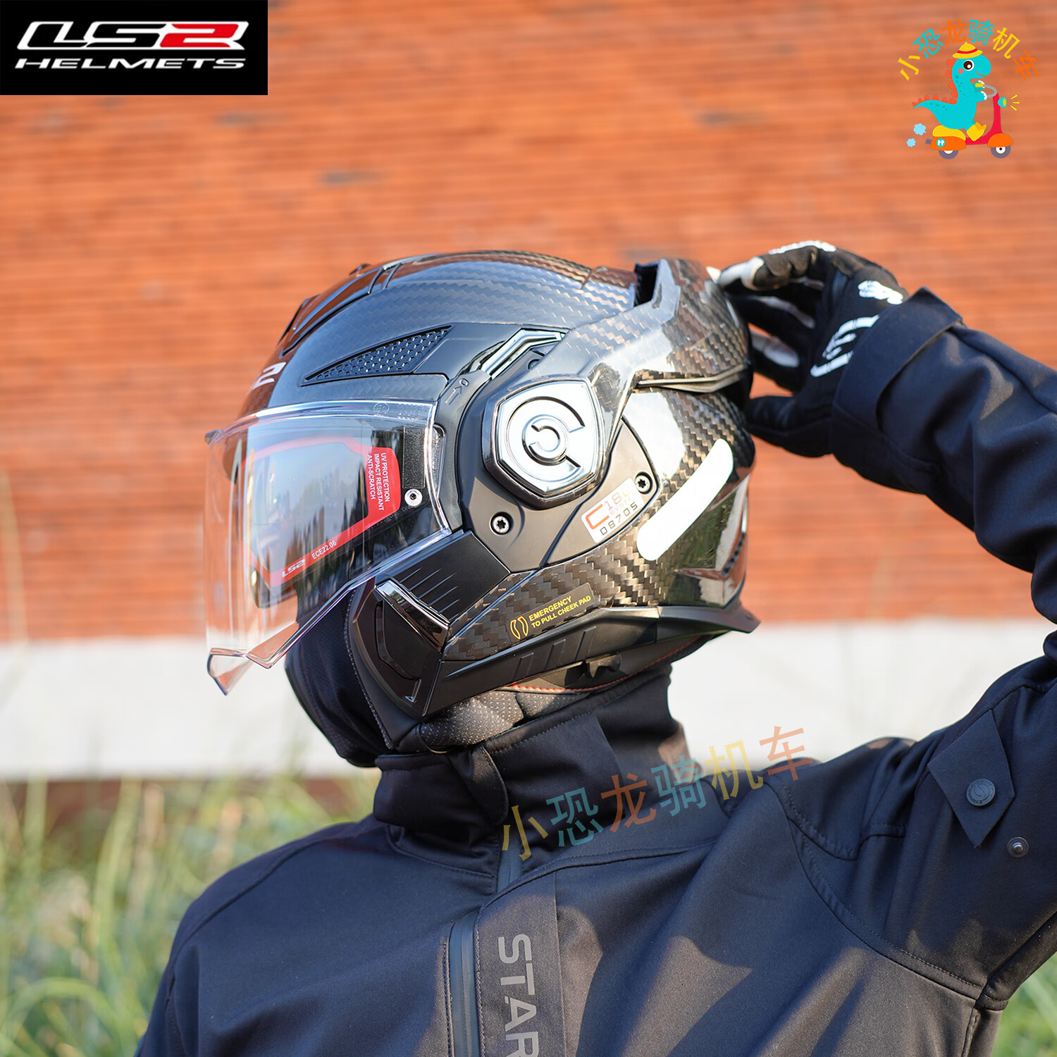LS2 Carbon Fiber FF901 Backflip Motorcycle Dual Lens 180 Carbon Fiber Face-Up Helmet 3C Four Seasons FF906 FF906 Flash White 2XL (60-61CM recommended)