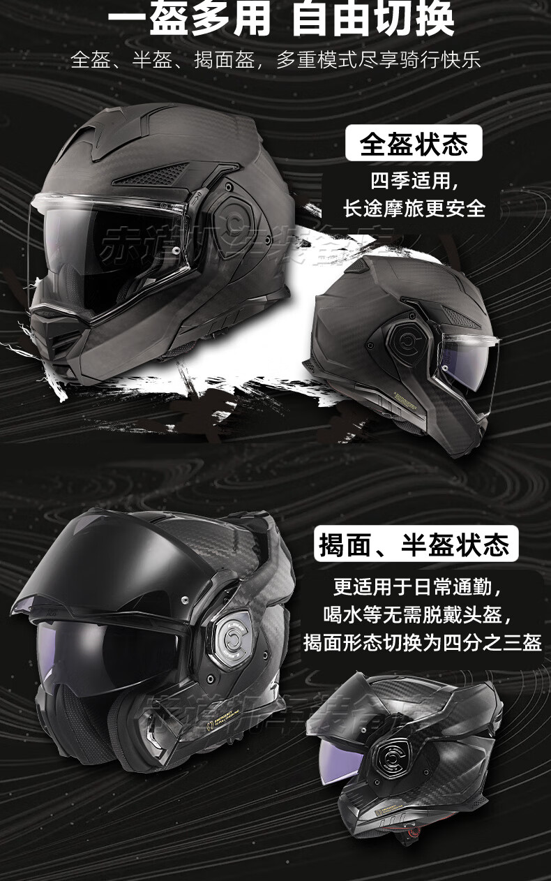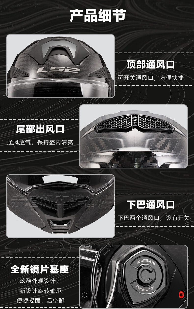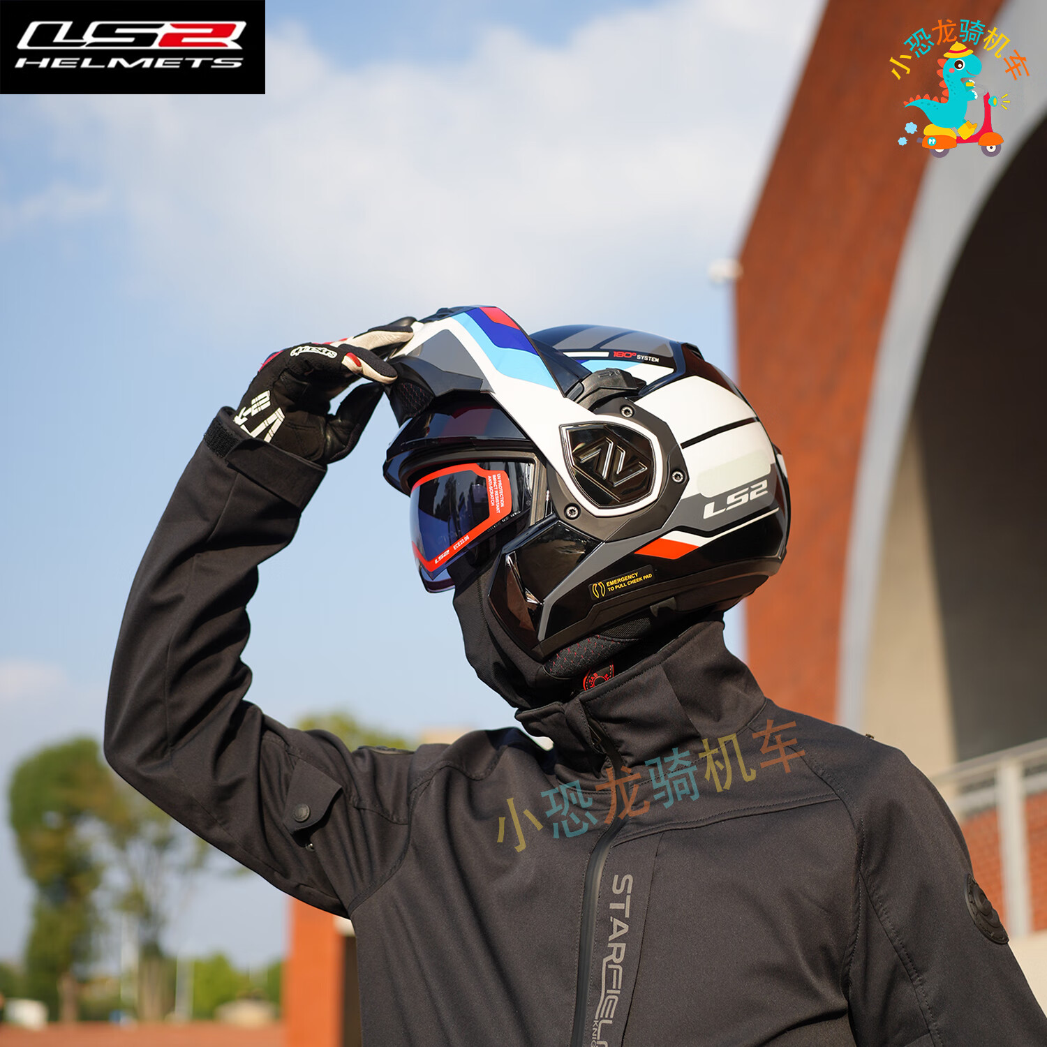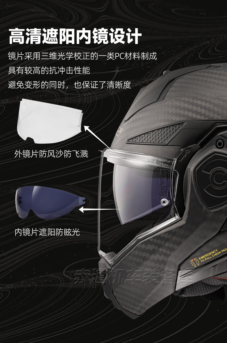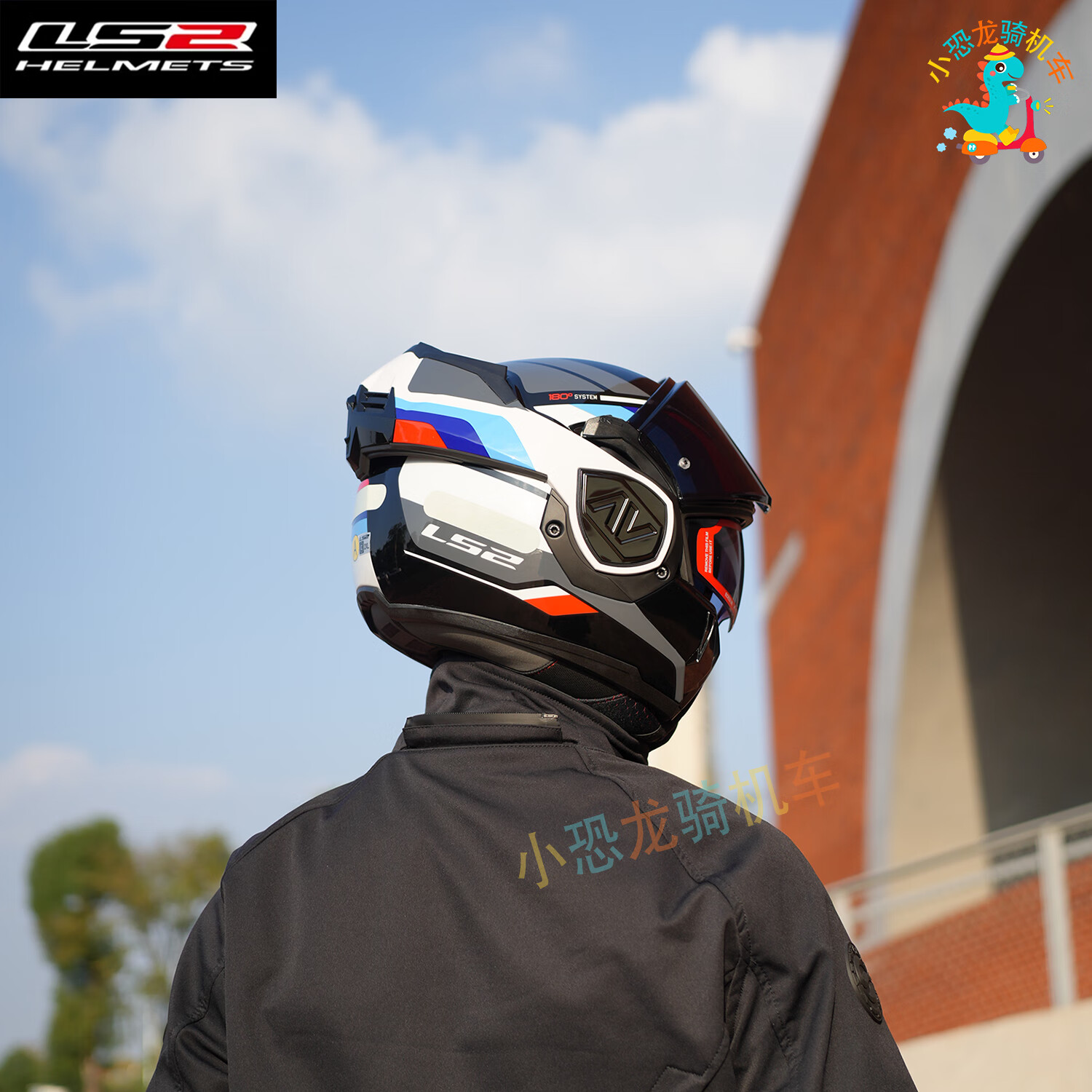 LS2 Carbon Fiber FF901 Backflip Motorcycle Dual Lens 180 Carbon Fiber Face-Up Helmet 3C Four Seasons FF906 FF906 Flash White 2XL (60-61CM recommended)