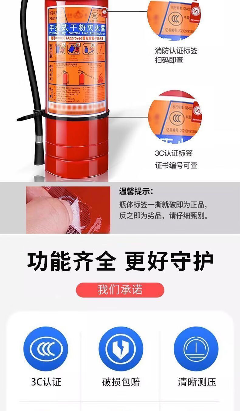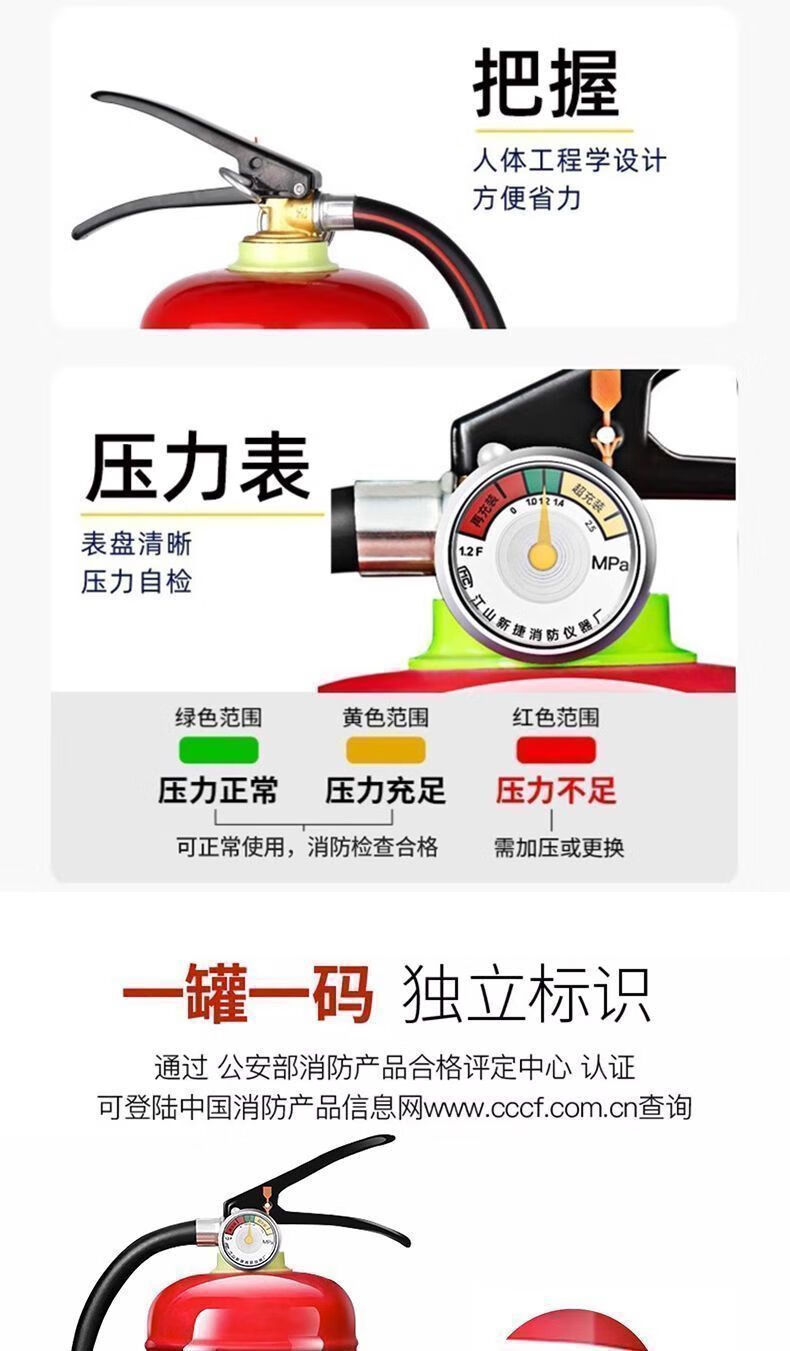 FANCYCHIC national standard portable 4kg dry powder fire extinguisher for shop, vehicle, household and commercial 2/3/4/5/8kg fire fighting equipment 4kg carbon dioxide product/store fire extinguisher + leather hose + inspection card