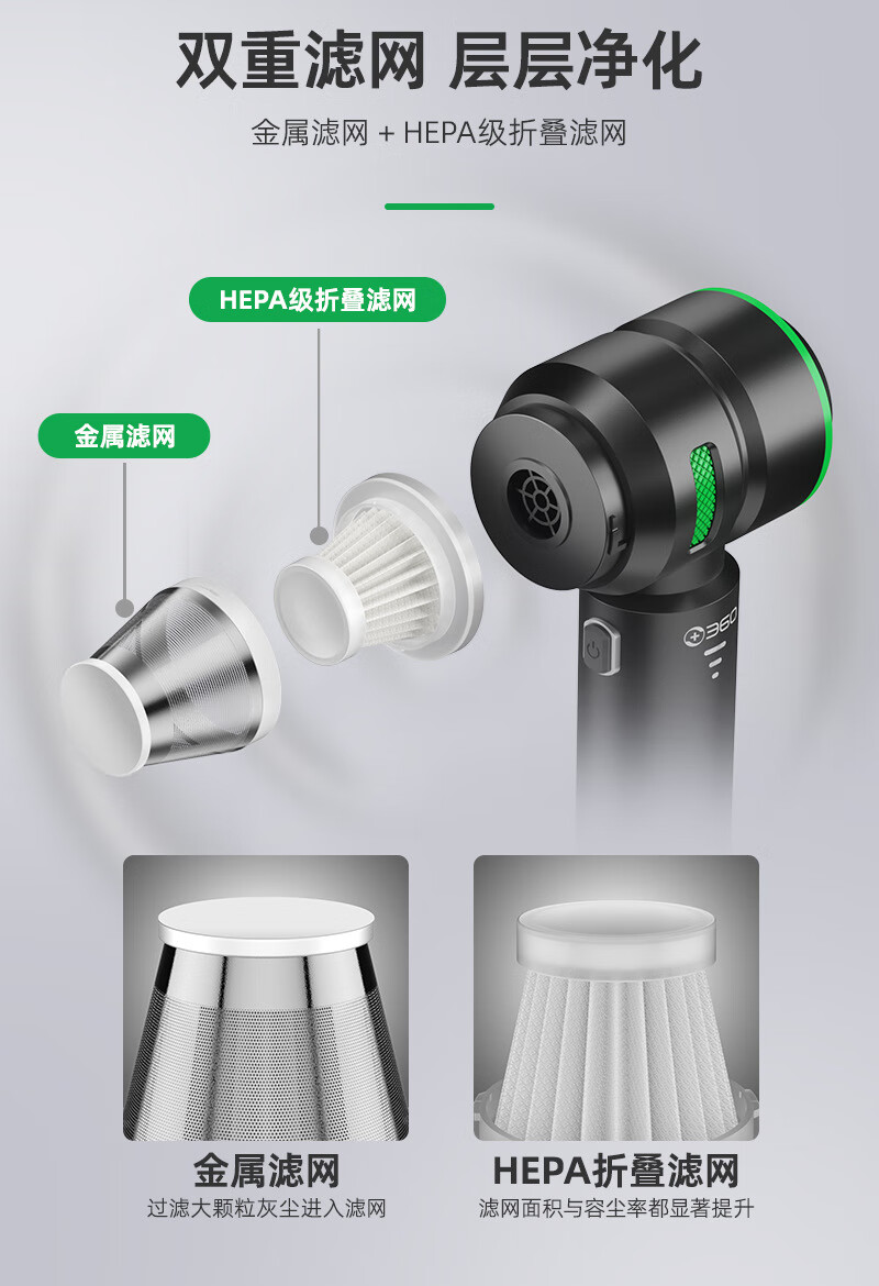 Ai Style Portable Car Bracket 360 Brushless Motor Car Vacuum Cleaner Charging Household High Power Vacuum Cleaner Small Portable Black High Power Brushless Handheld Vacuum Cleaner Filter Element X2