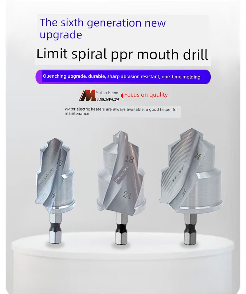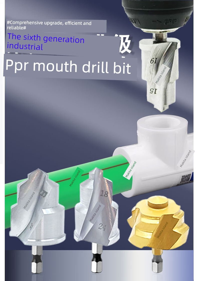 Makita Island's new hexagonal drill tip PPR lift drill bit water pipe special reamer four-to-six pipe repair opening drilling adapter + 20+32 newly upgraded quenching lift drill