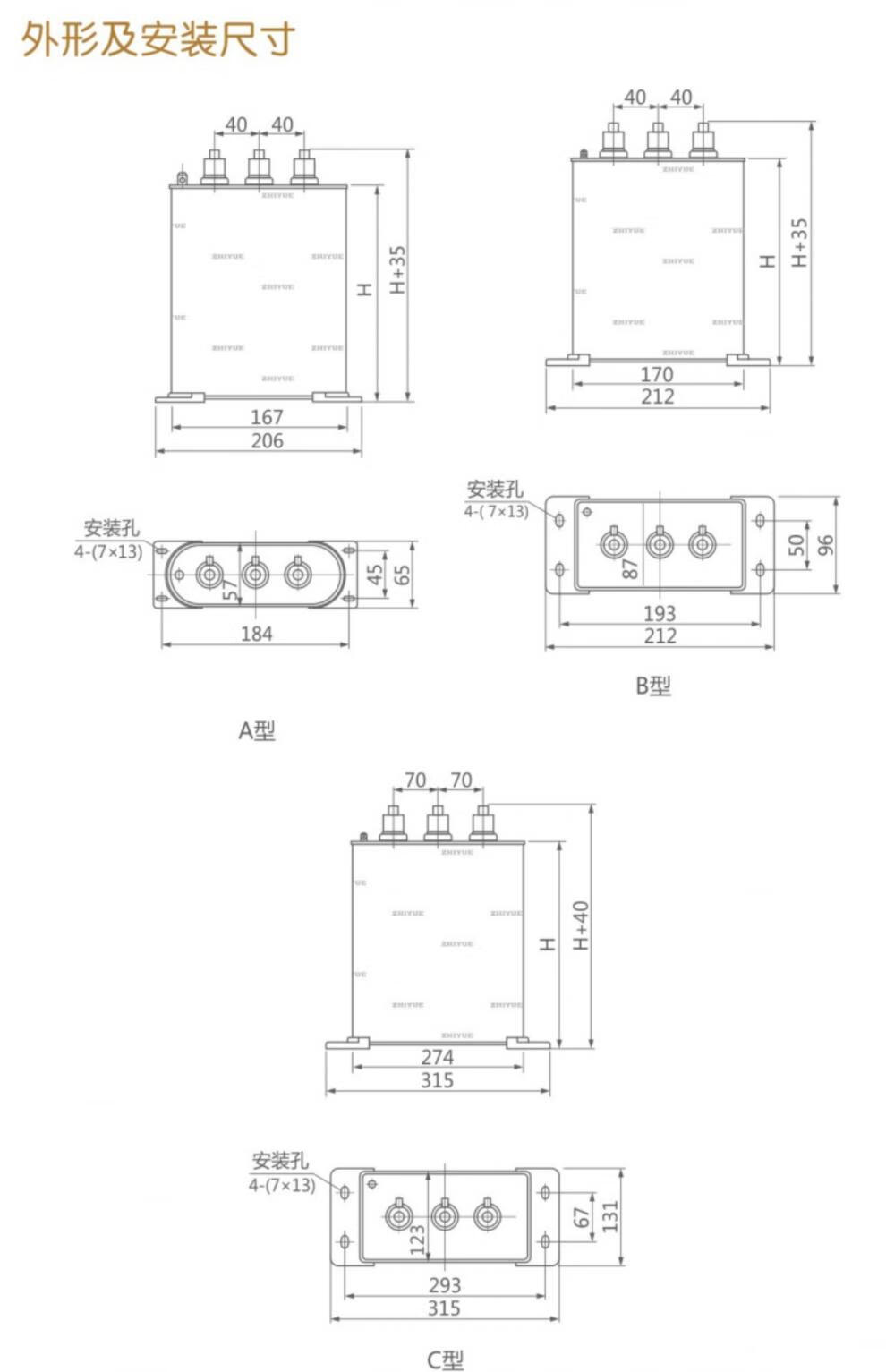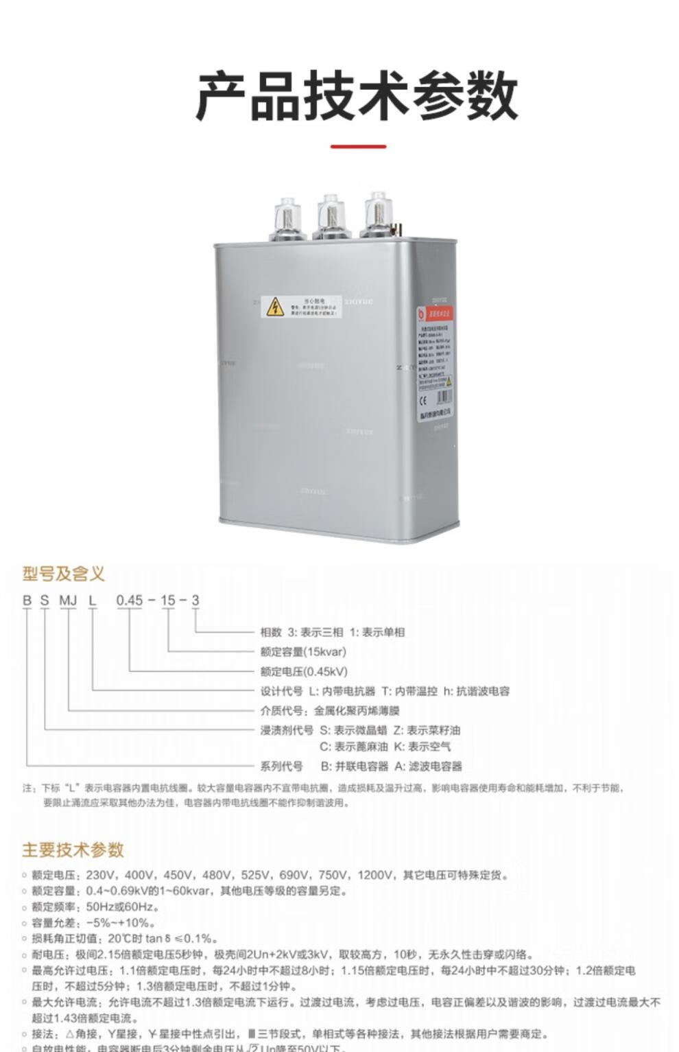 Zhiyue Group capacitor cabinet self-healing low-voltage parallel capacitor 400V450V480V30kvar compensation 50Kvar 690