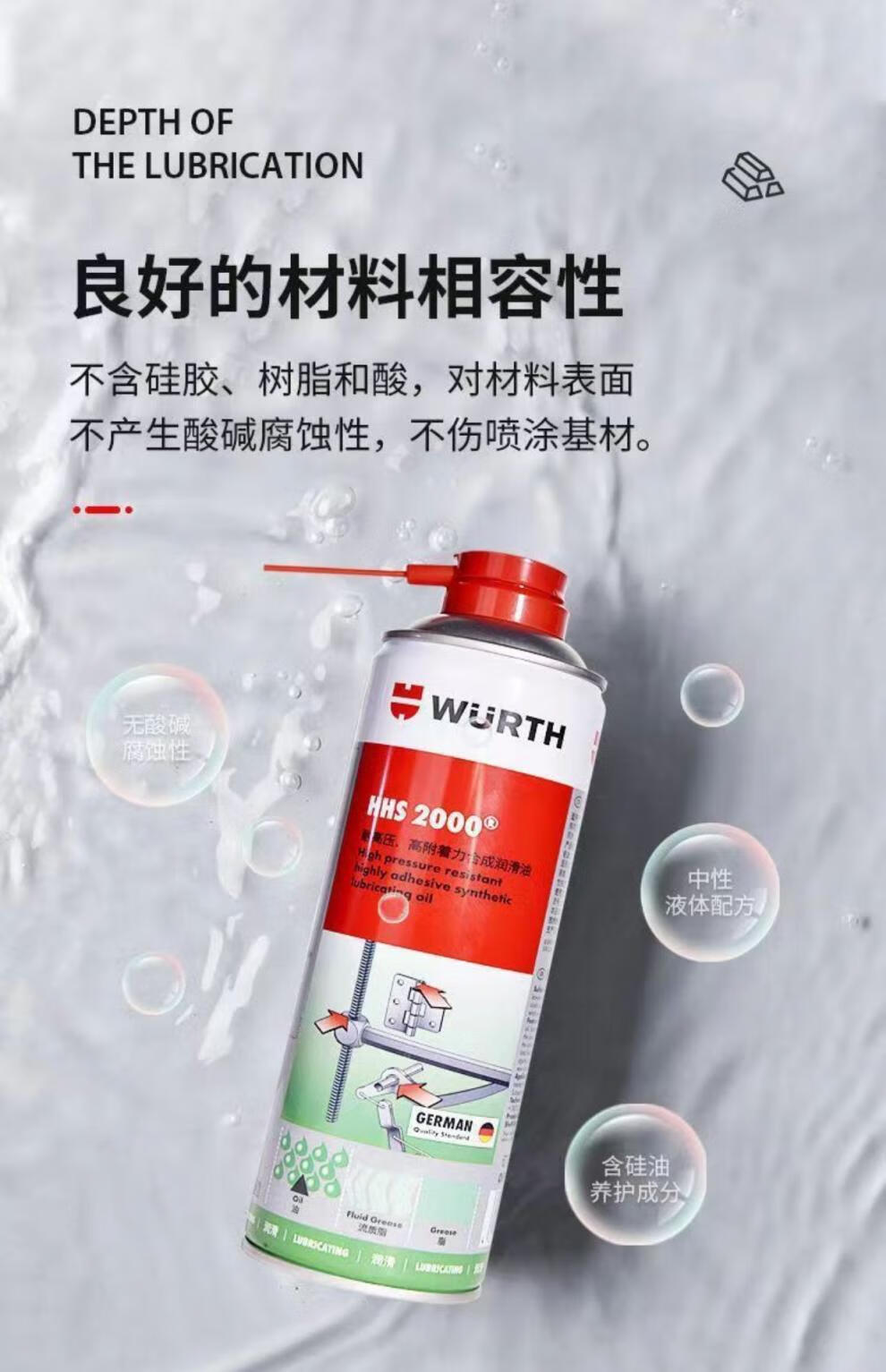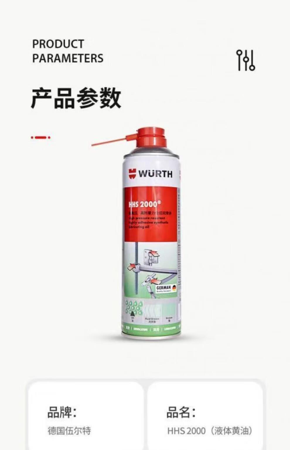 Wurth liquid butter HHS2000 high pressure resistant high adhesion grease hinge lubricant spray HHS2000 liquid butter_500ML