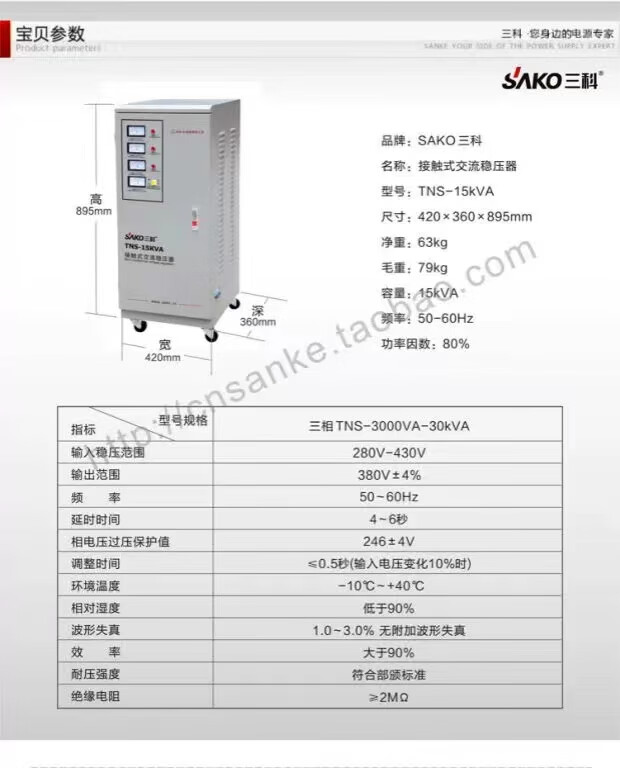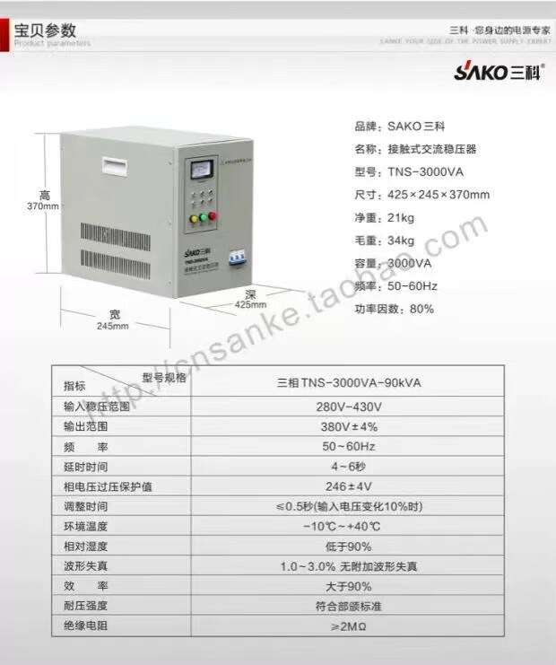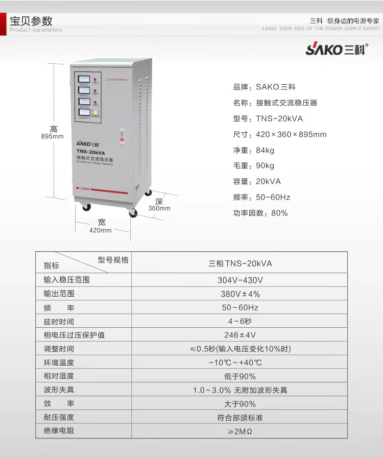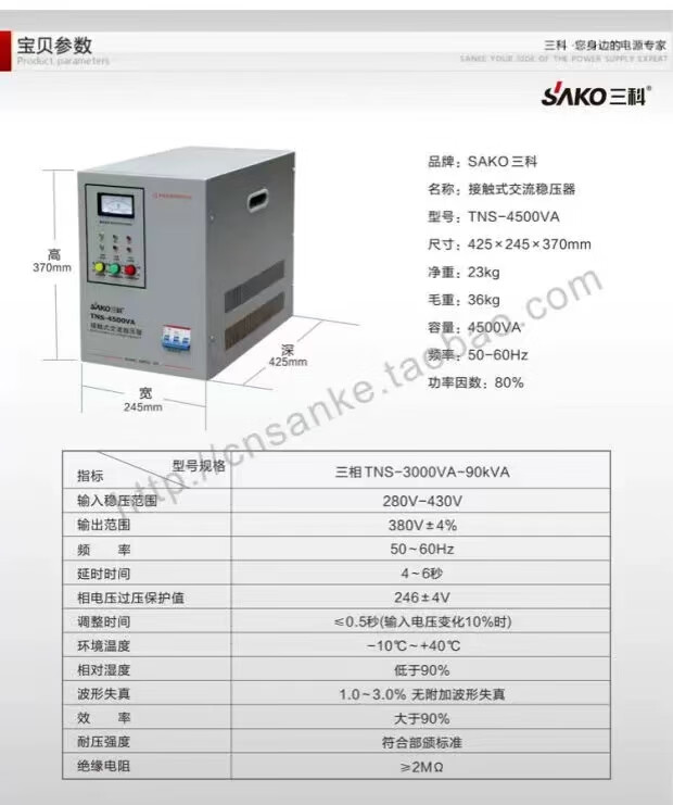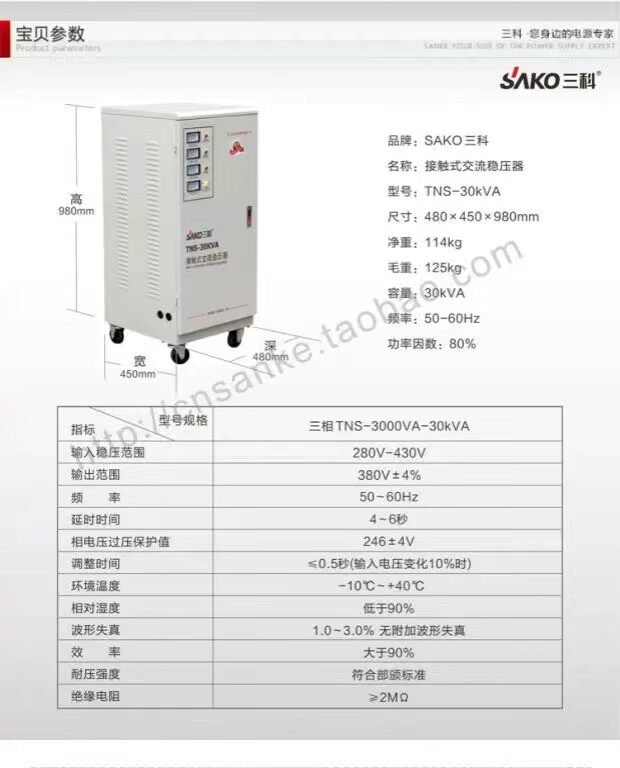 SAKO Sanke 30000W automation instrument CNC machine tool dedicated three-phase voltage regulator TNS-90KVA