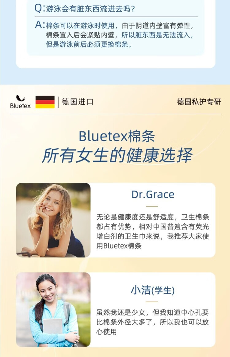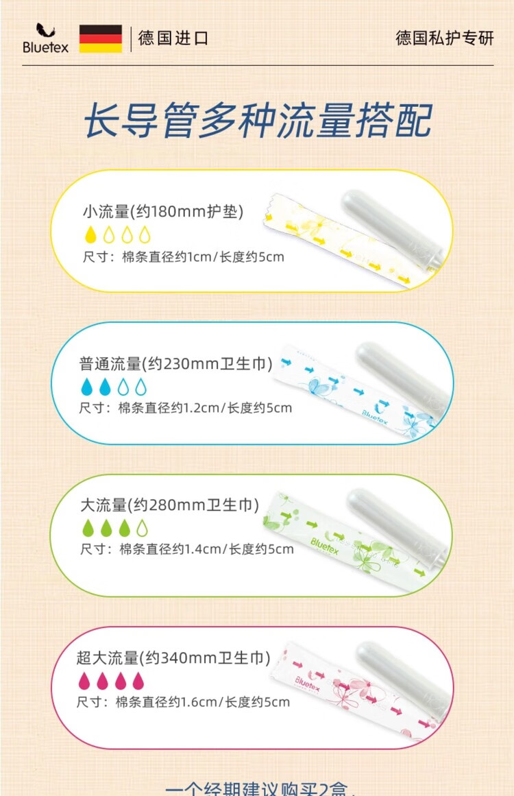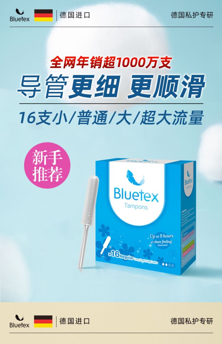 Bluetex tampons, catheter-type sanitary napkins, swimming-specific vaginal plugs, waterproof menstrual insertion, long catheter set of 48 pieces (normal 16+large 32) others