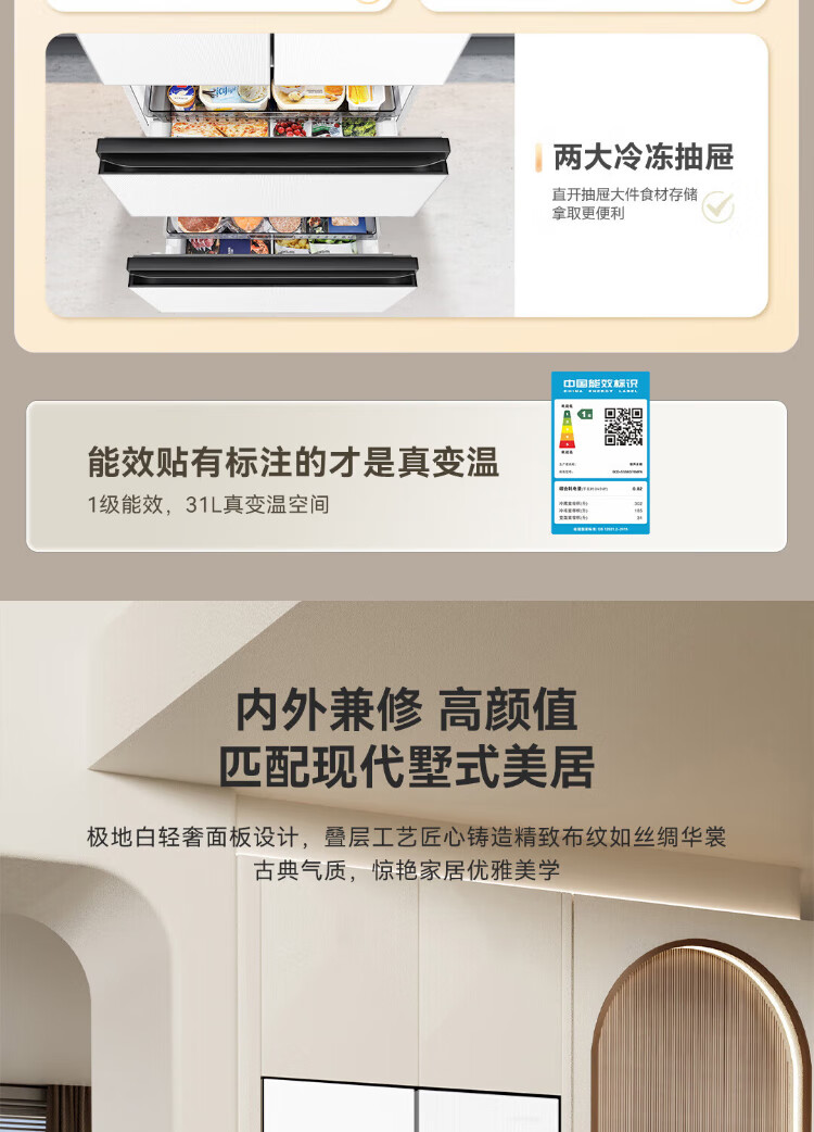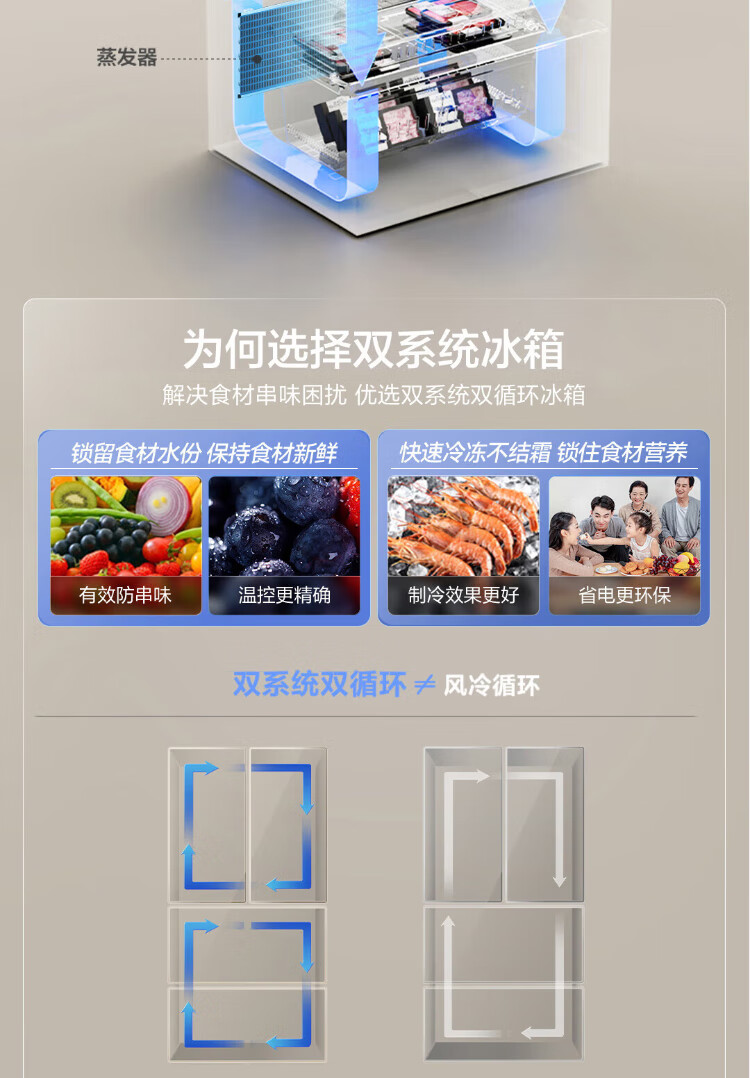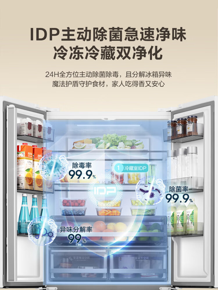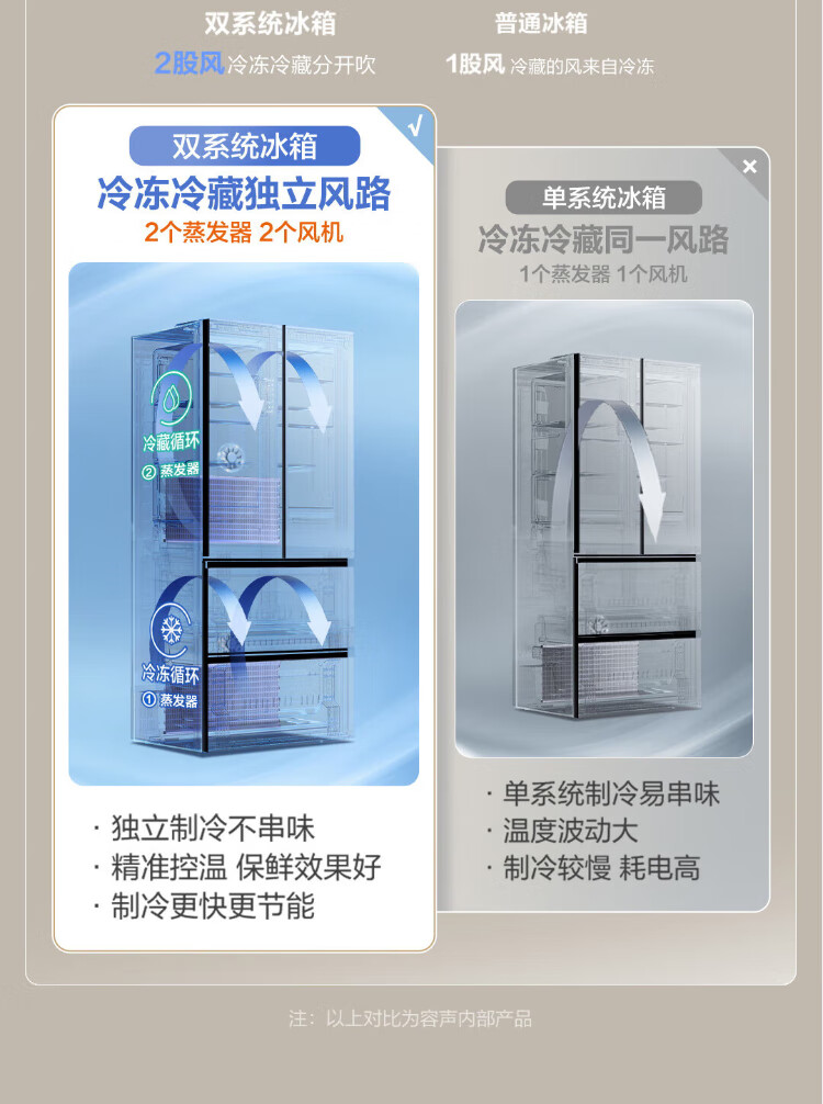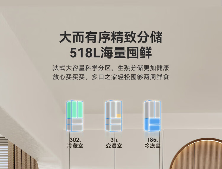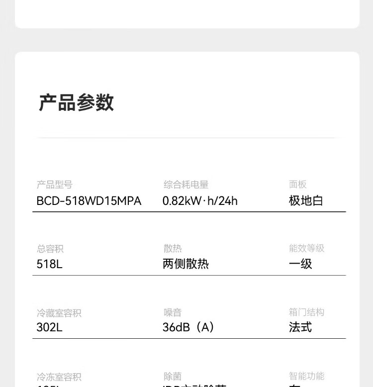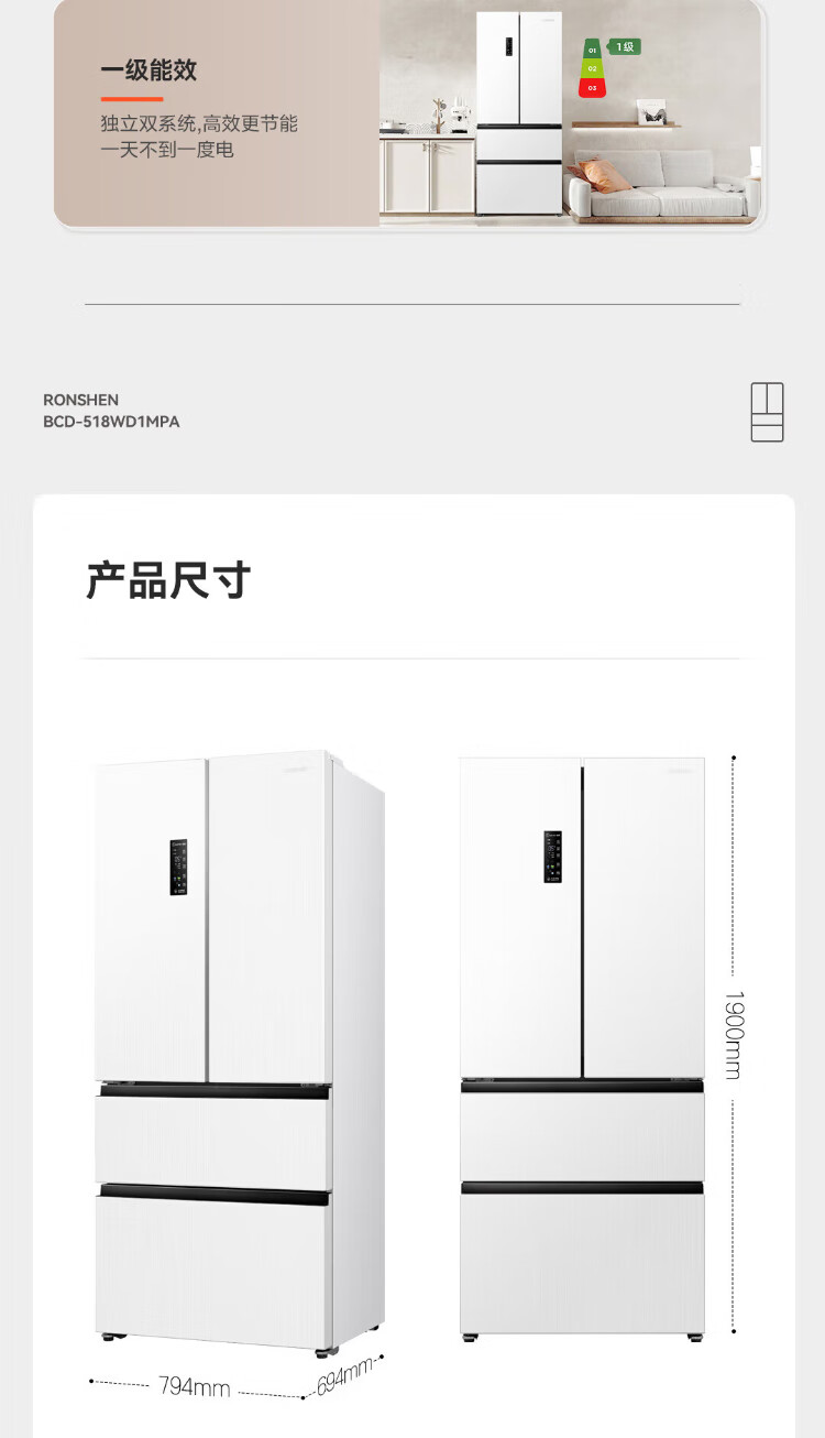 Rongsheng 518-liter dual-clean dual-system French-style multi-door refrigerator first-class energy efficiency variable frequency air-cooled frost-free odor-free large-capacity maternal and infant thin household refrigerator trade-in dual system without odor BCD-518WD15MPA gray