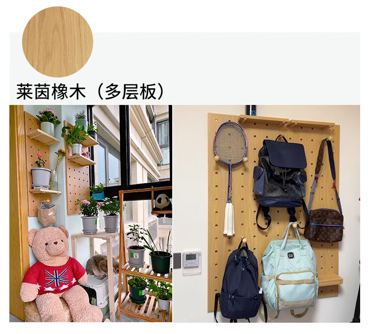He Jiagong solid wood hole board display rack wooden desktop wall desk storage wall entrance door porch storage rack wood color (40*60cm) package solid wood multi-layer board