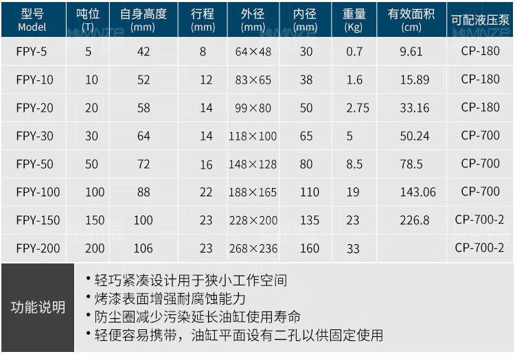 MNZE bridge hydraulic cylinder jack separate split 10T20T30T50T100 heavy duty 200TCP7002 manual pump