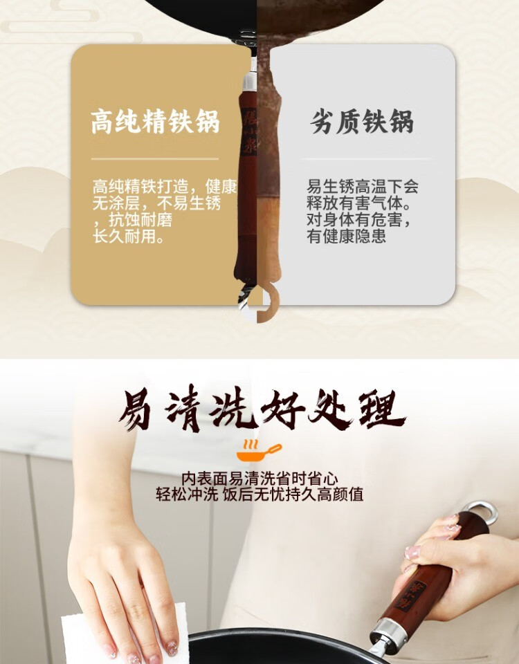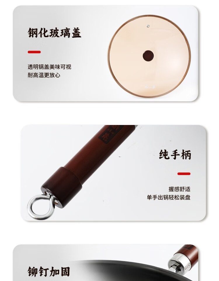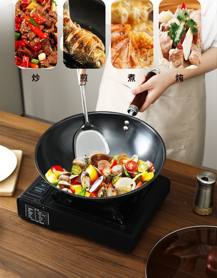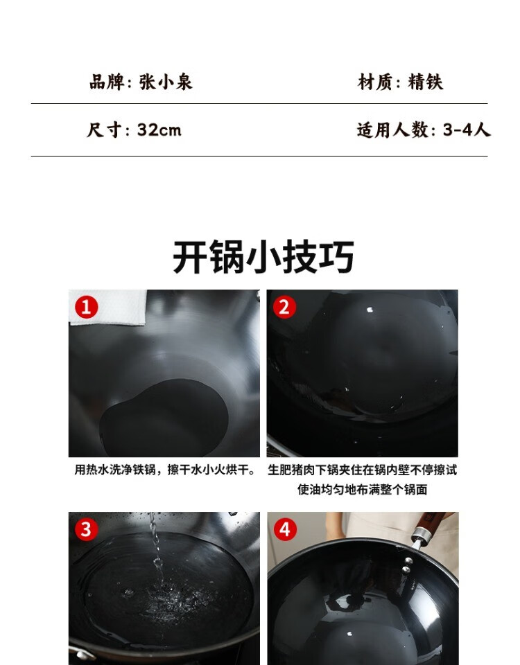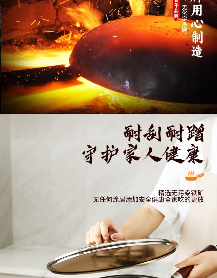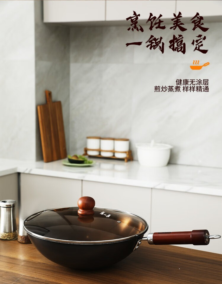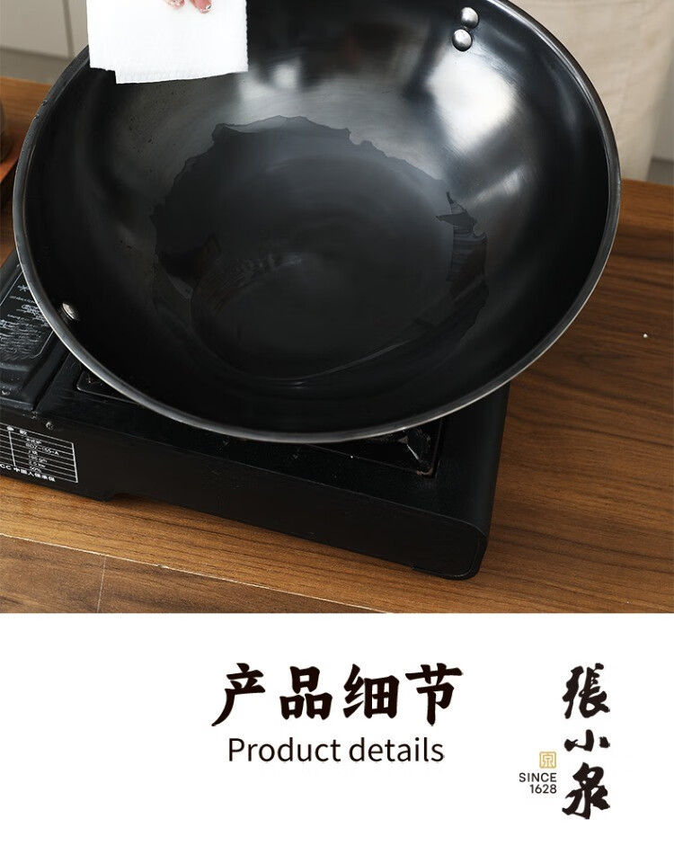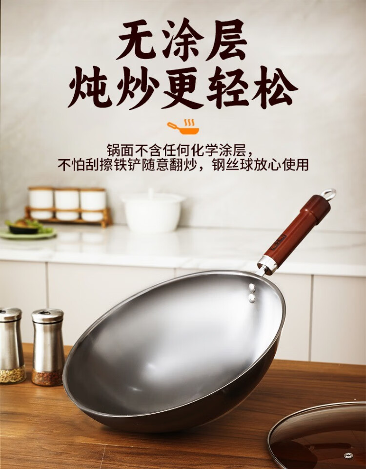 Zhang Xiaoquan wok, old-fashioned iron pan, genuine non-stick pan, refined iron, uncoated, 32cm wok for household gas stove (comes with lid)