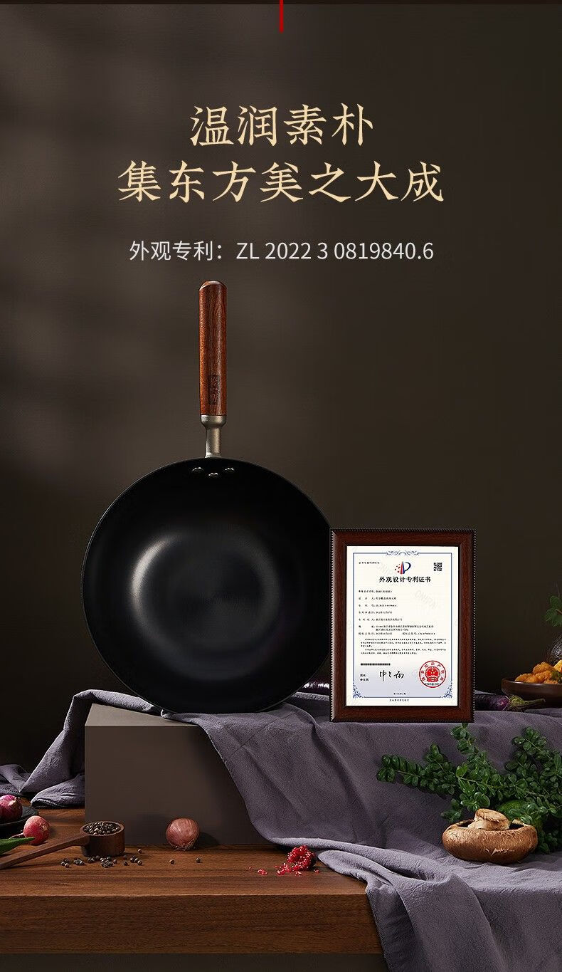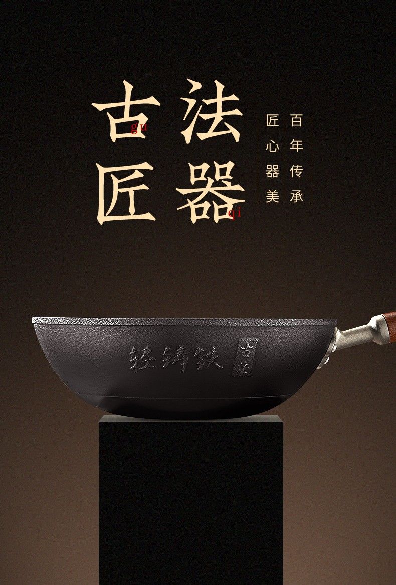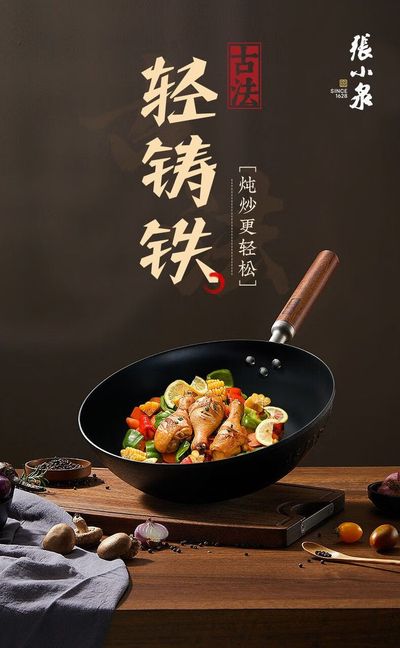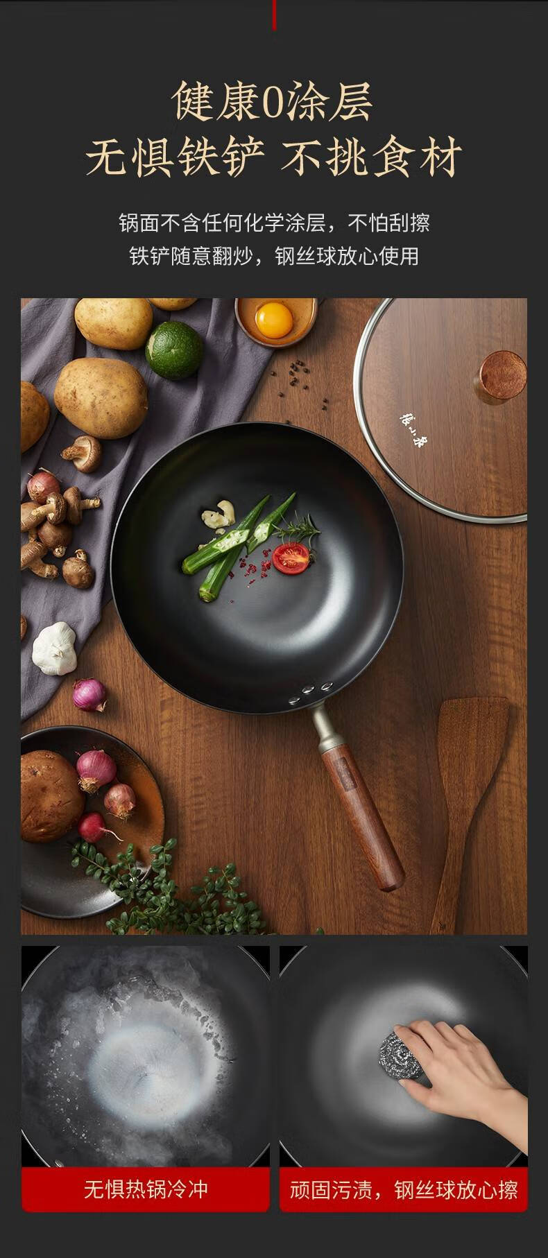 Zhang Xiaoquan uncoated iron pot non-stick household old-fashioned wok flat bottom gas stove induction cooker universal wok 34cm (suitable for 4-5 people) Qianyuanji iron pot same style