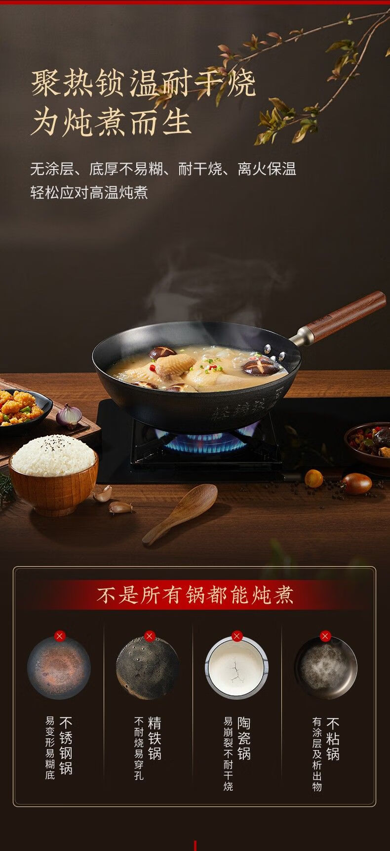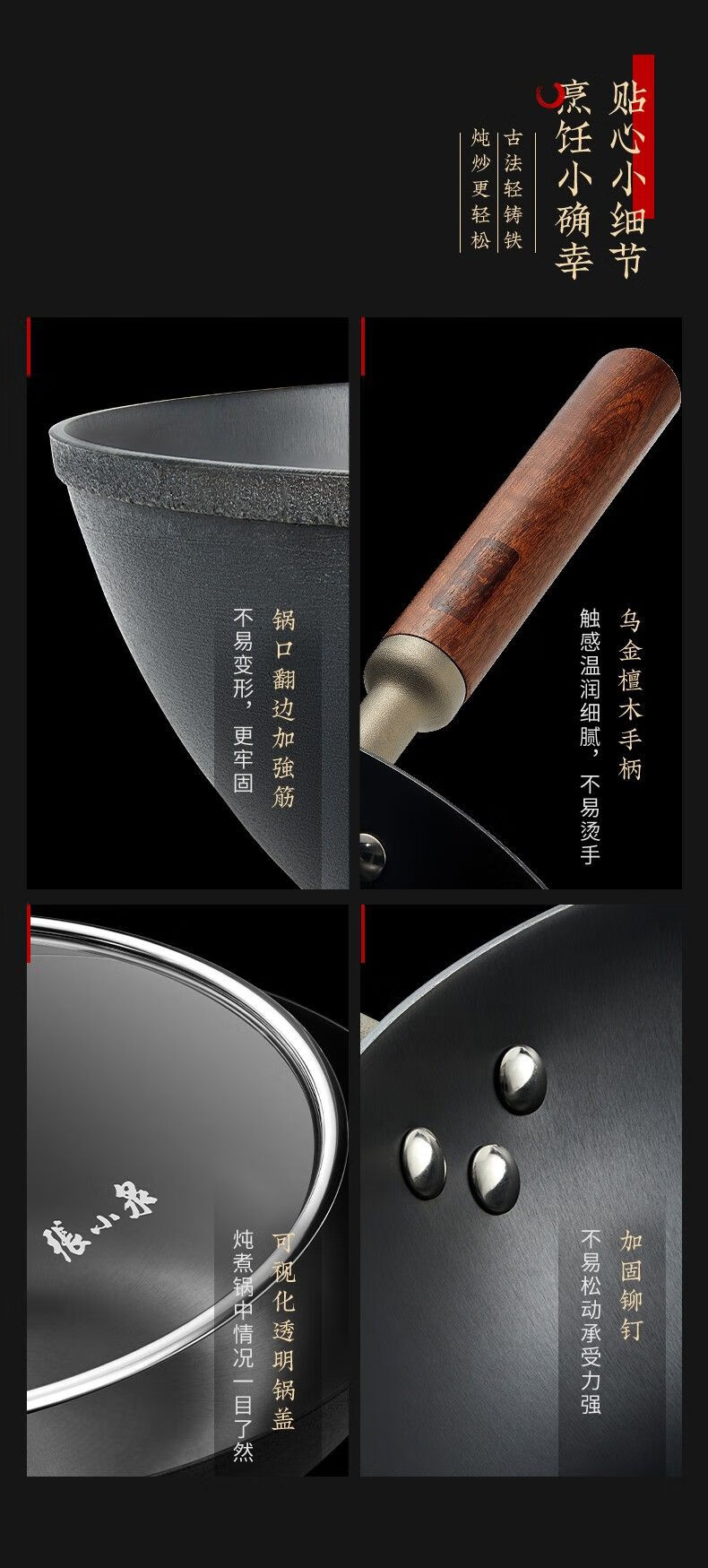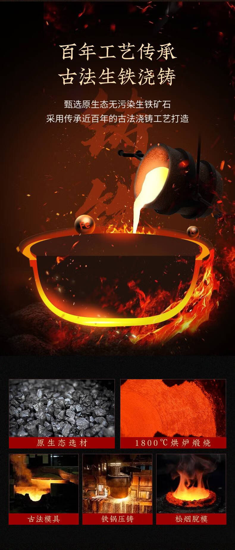 Zhang Xiaoquan uncoated iron pot non-stick household old-fashioned wok flat bottom gas stove induction cooker universal wok 34cm (suitable for 4-5 people) Qianyuanji iron pot same style
