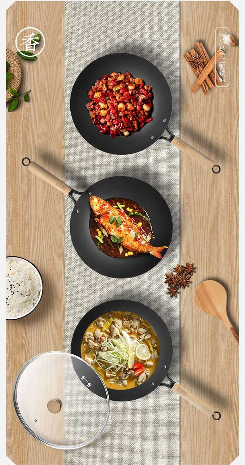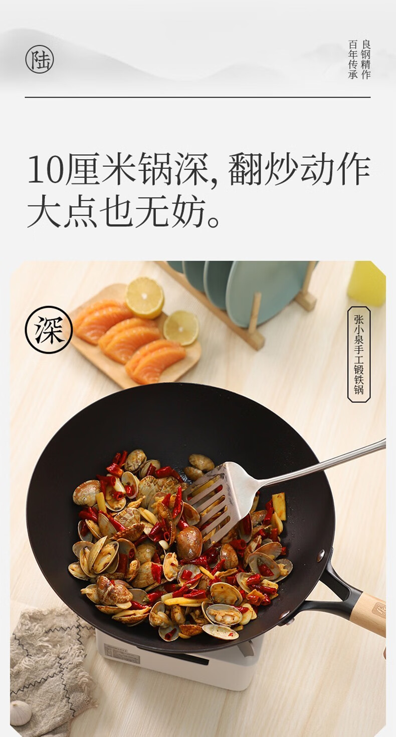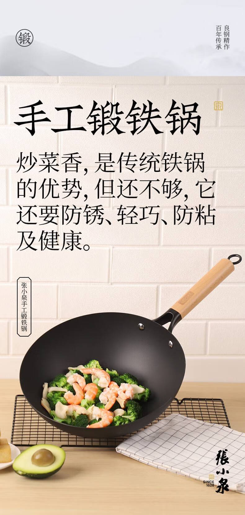 Zhang Xiaoquan iron pot large iron pot uncoated wok household 32cm34 non-stick pot induction cooker fire special 32cm gas (iron cover) - suitable for 2-5 people