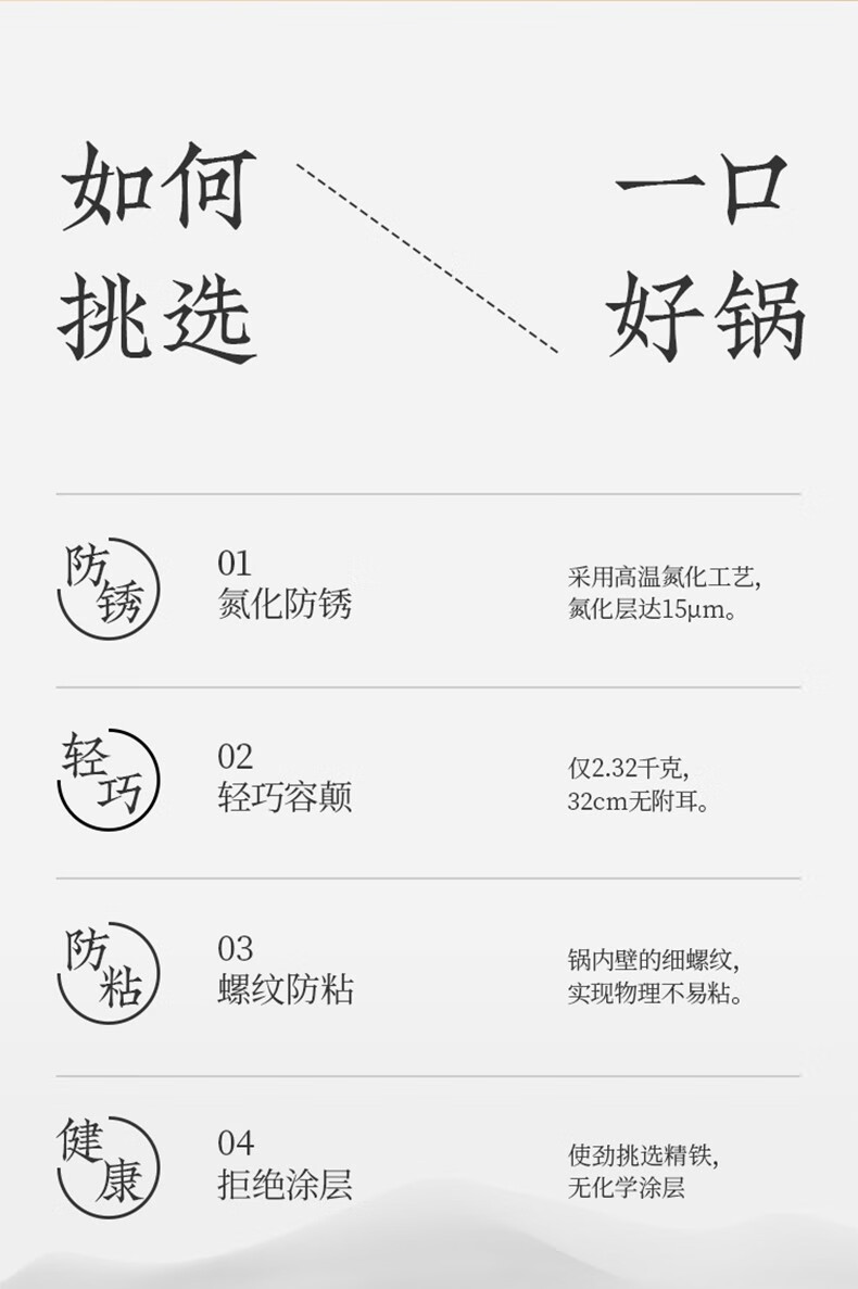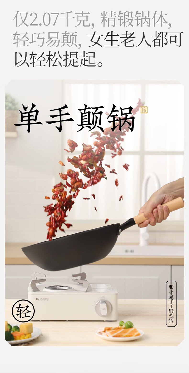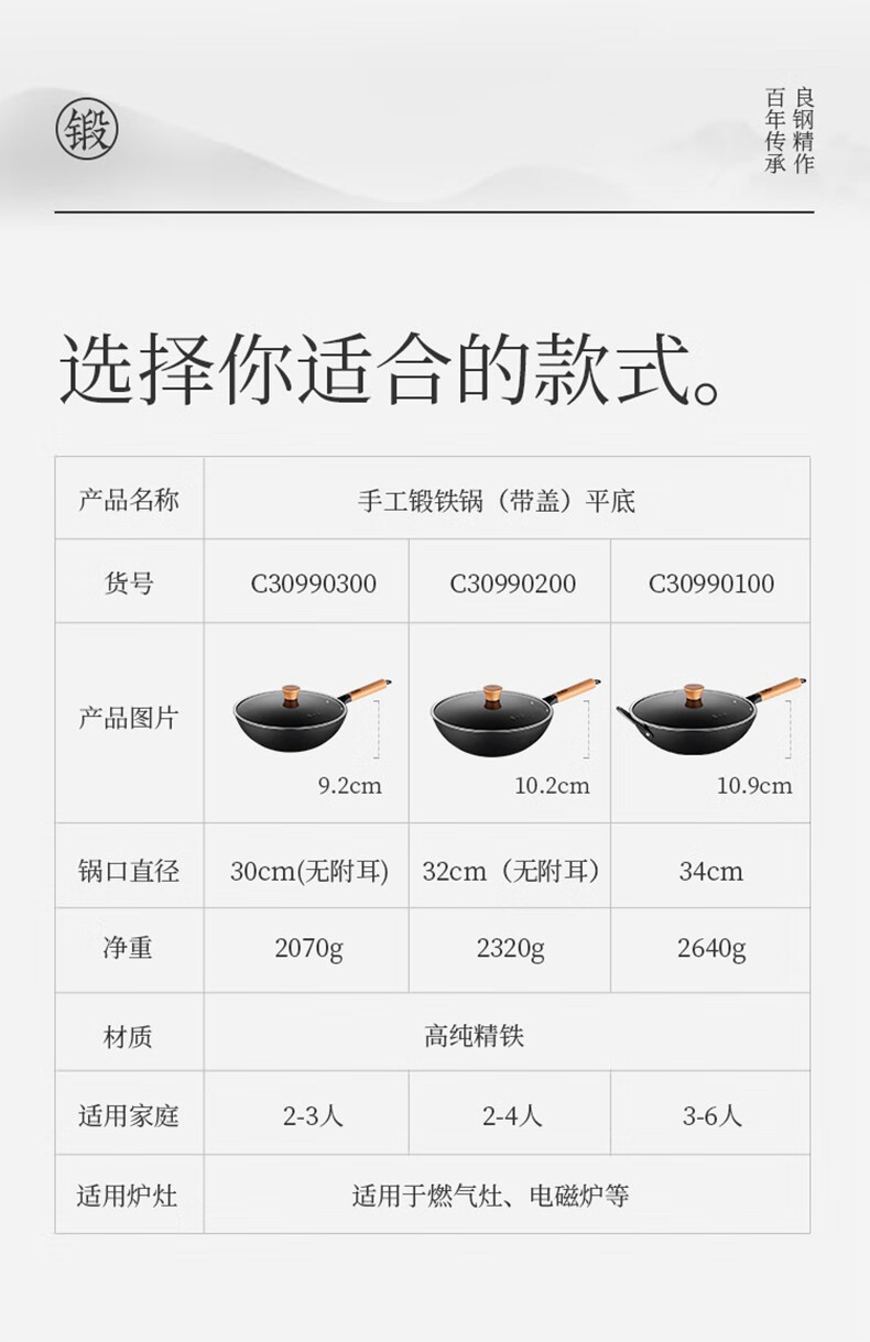 Zhang Xiaoquan iron pot large iron pot uncoated wok household 32cm34 non-stick pot induction cooker fire special 32cm gas (iron cover) - suitable for 2-5 people