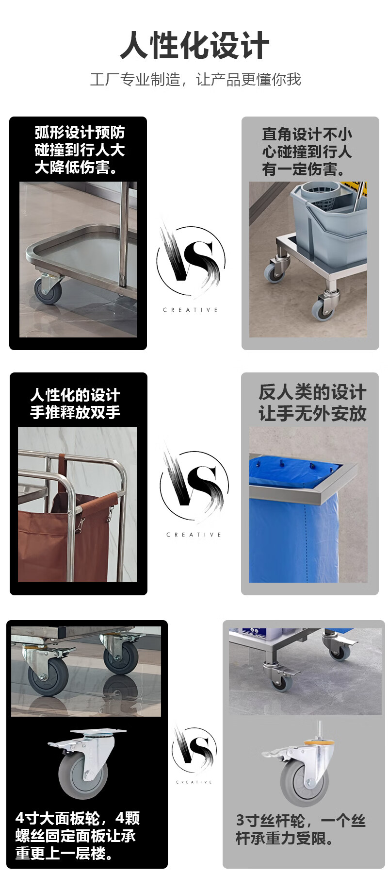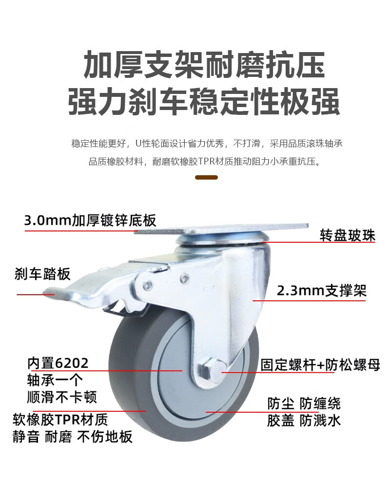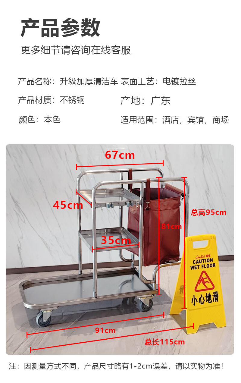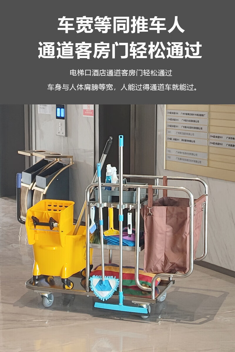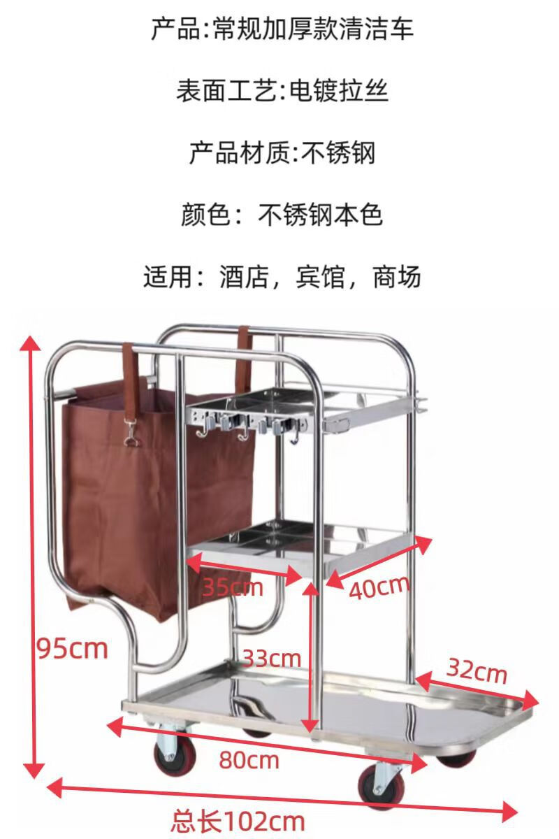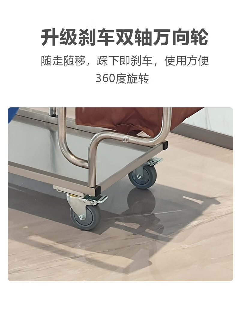 Stainless steel cleaning cart, cleaning cart, tool cart, hotel guest cart, linen cart, property cleaning cart, gray wheel brake wheel cleaning cart (with hook)