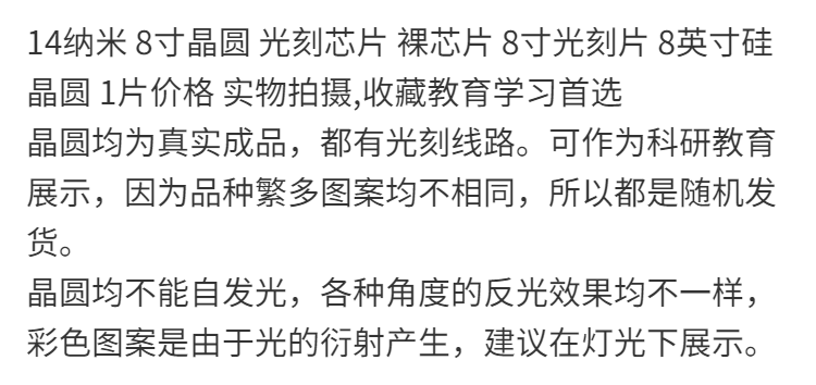 Silicon wafer 14nm 8-inch wafer Photolithography chip Bare chip 8-inch photolithography 8-inch silicon wafer Pendulum 12-inch aluminum pad Default