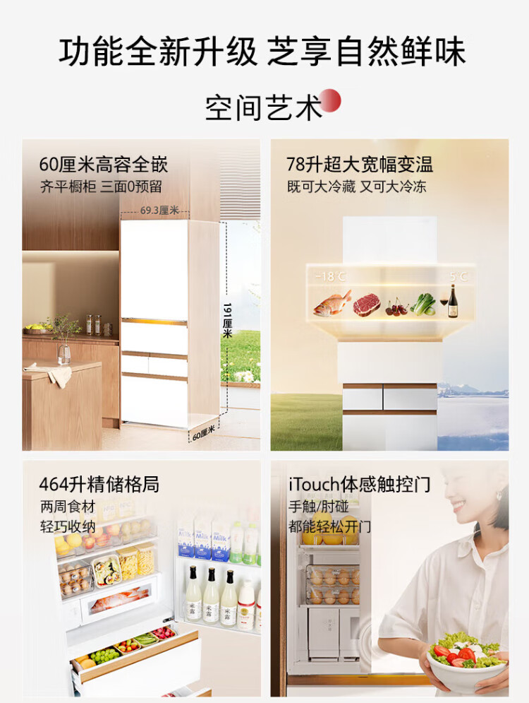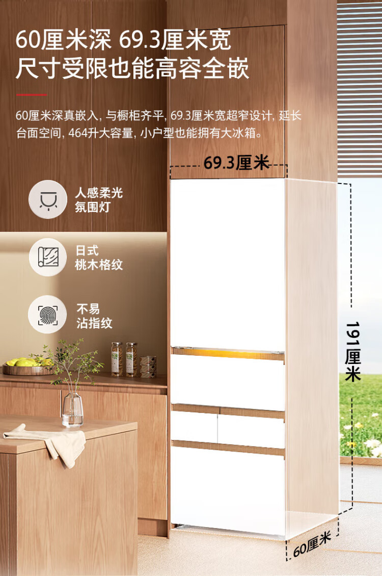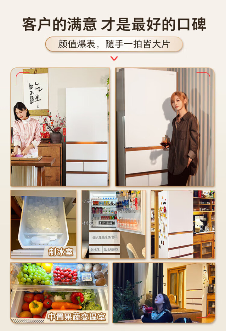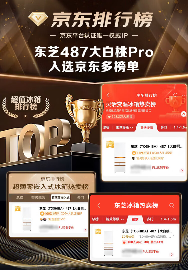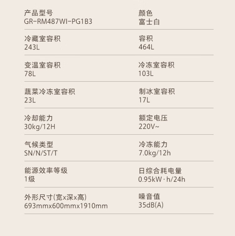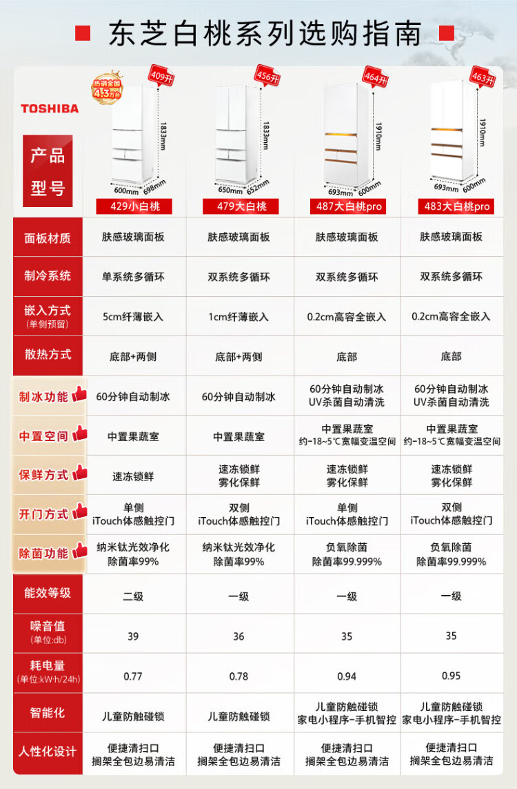 TOSHIBA 483 Big White Peach Pro Japanese aesthetic ultra-thin zero-embedded automatic ice making dual system sterilization and deodorization first-class energy efficiency multi-door French home state-subsidized refrigerator GR-RM483WI-PG1B3 Fuji White