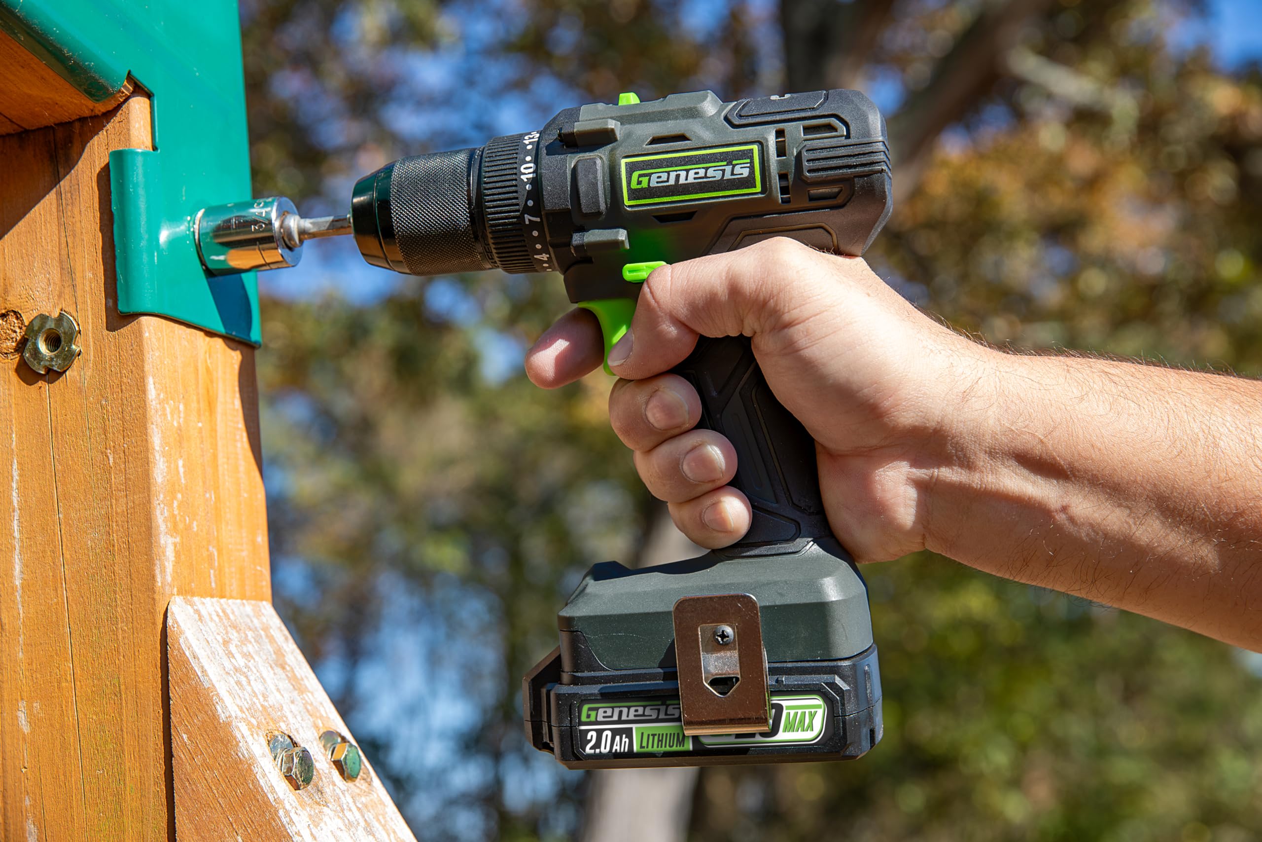 Genesis 20V 1/2 Cordless Drill with Battery and Charger Metal Ratchet Chuck 450 lbs.