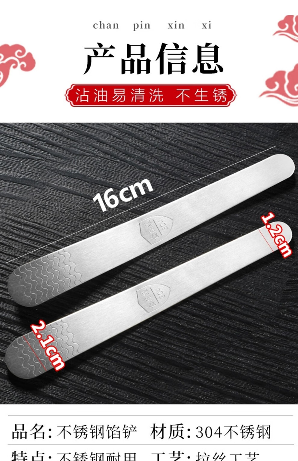 Rihe Sheng Tang Stuffing Spoon Picking Stuffing Spoon New Stainless Steel Dumpling Household Tool Bag Wonton Dumpling Chaos Handmade 304 Stainless Steel Stuffing Spade X1