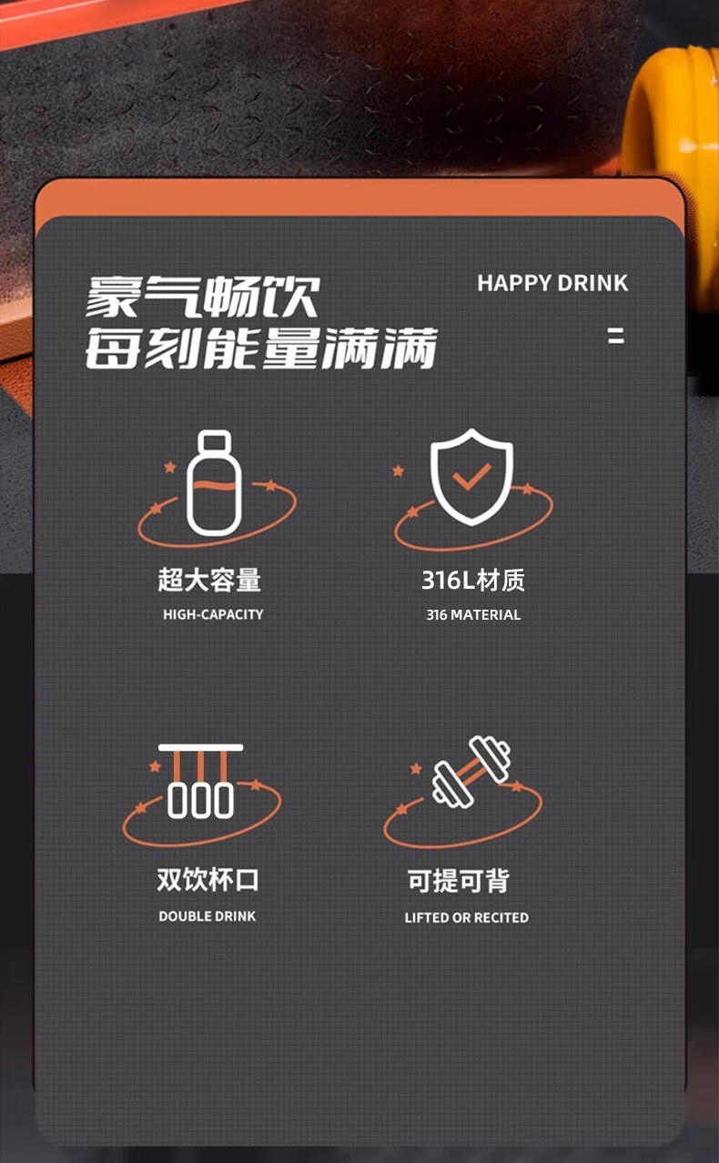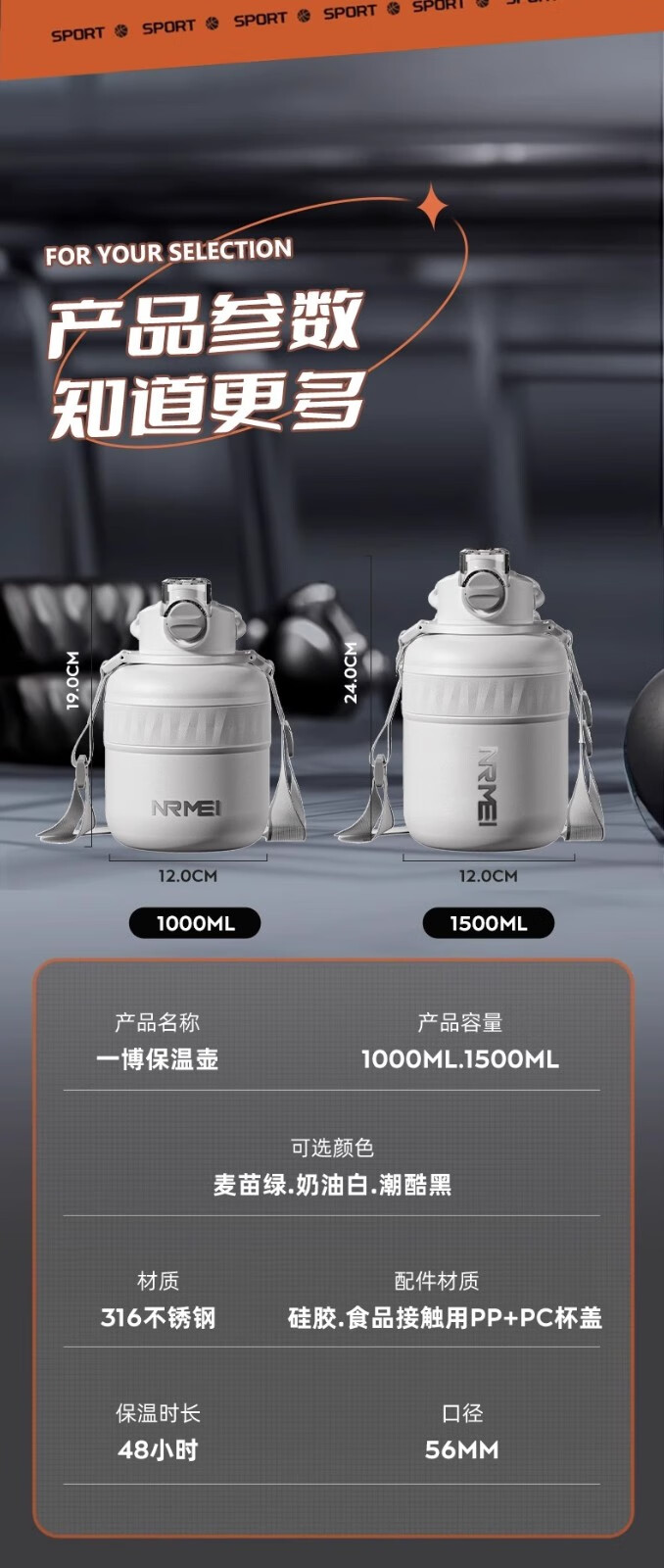 NRMEi nRMEi thermos cup large capacity tons 2023 new water cup sports water cup big belly cup for men and women fashion green-316 material 1000ml