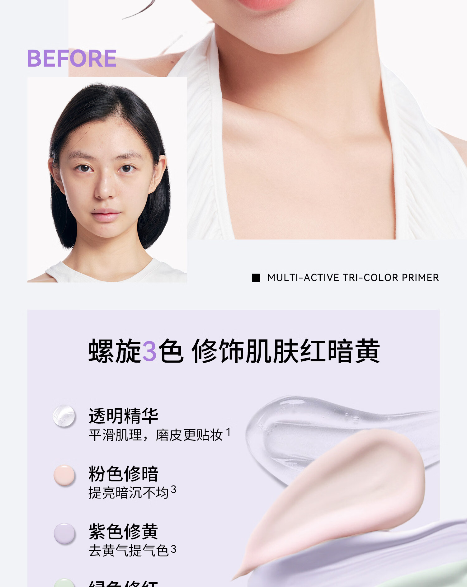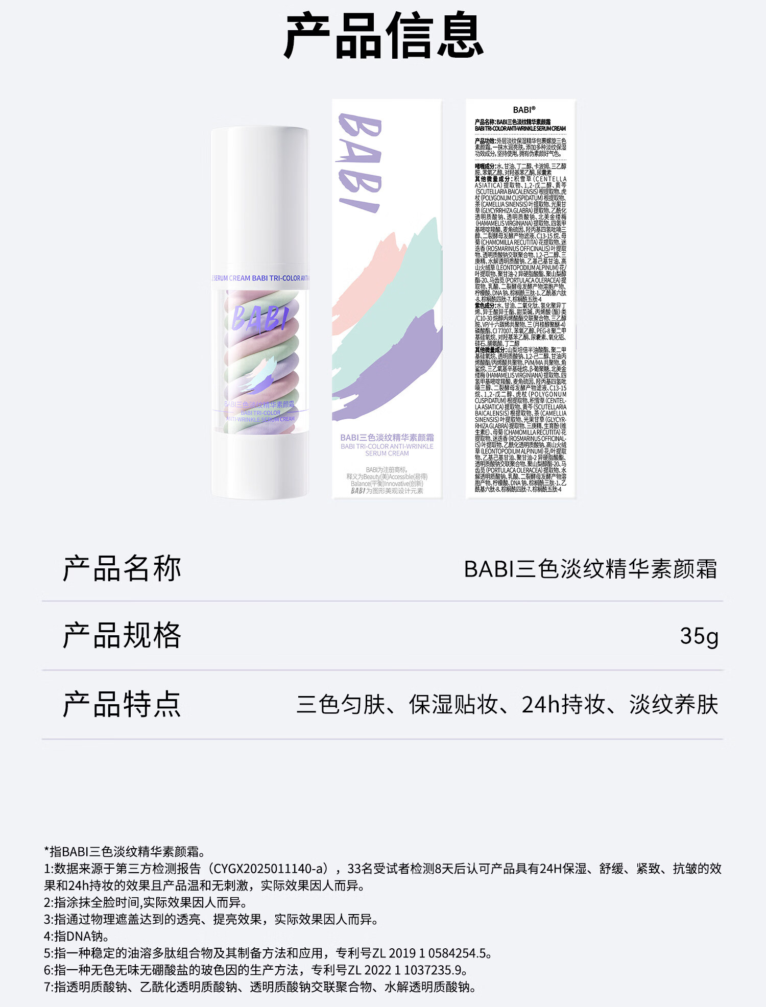 BABI Tricolor Color Cream Isolating Watery Makeup Cream Concealer Primer Brightens Skin Color Nude Moisturizing Upgrade Three Color Color Cream 35g*1