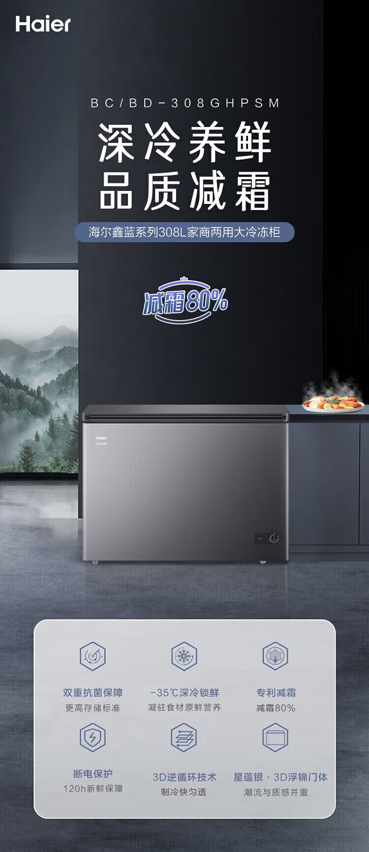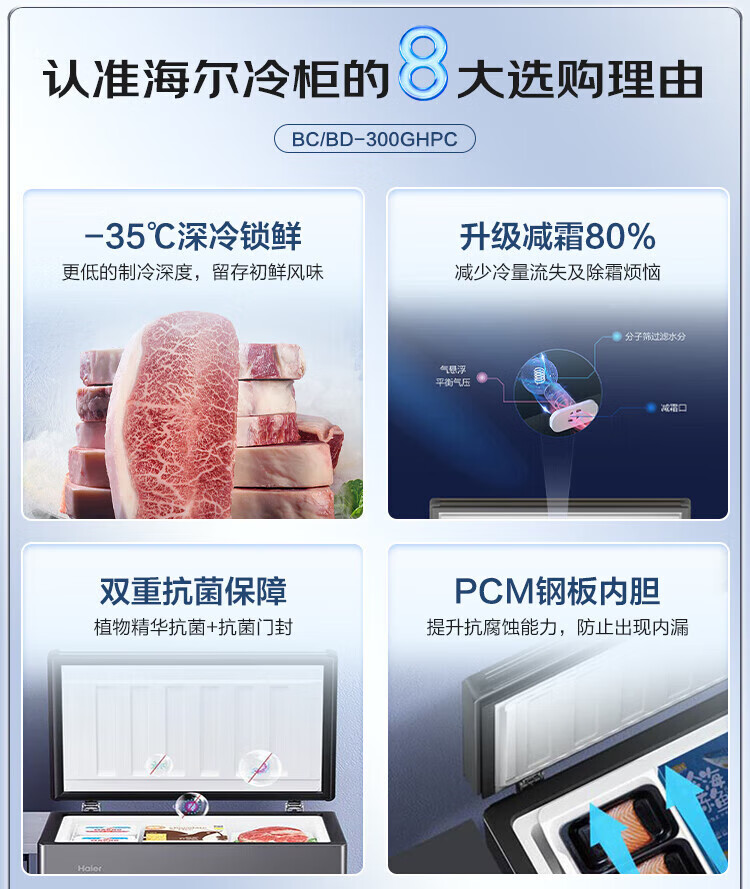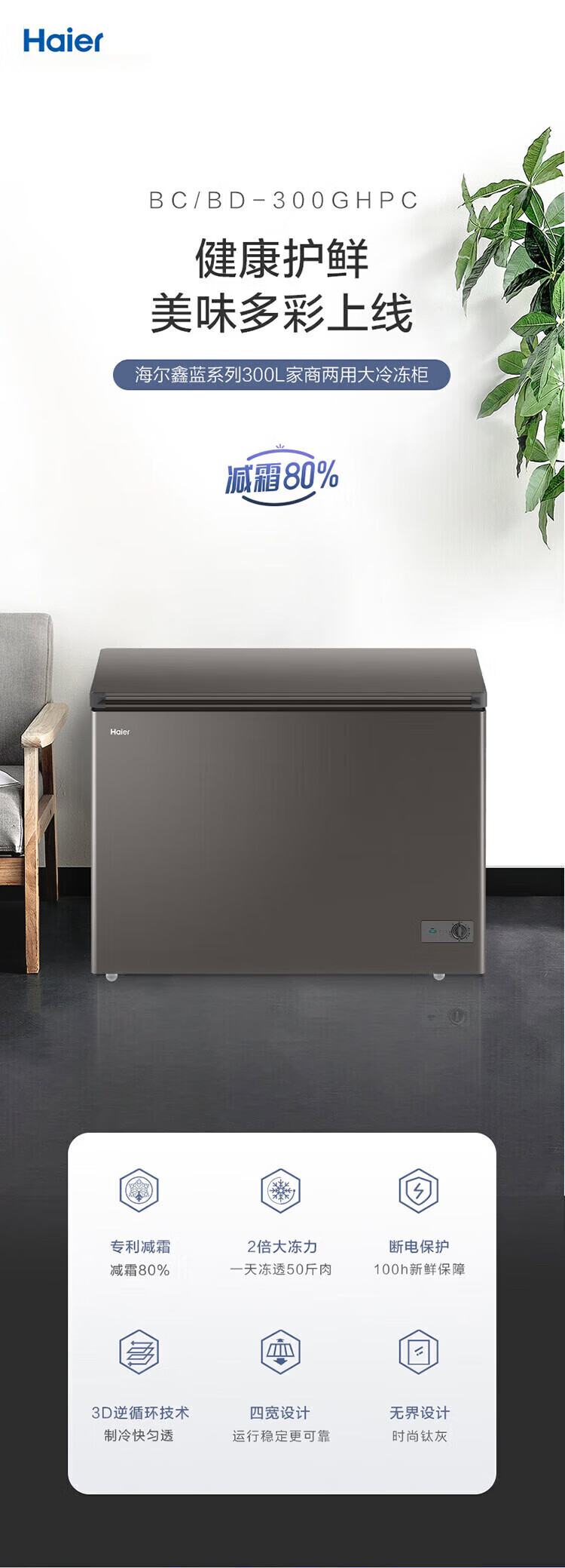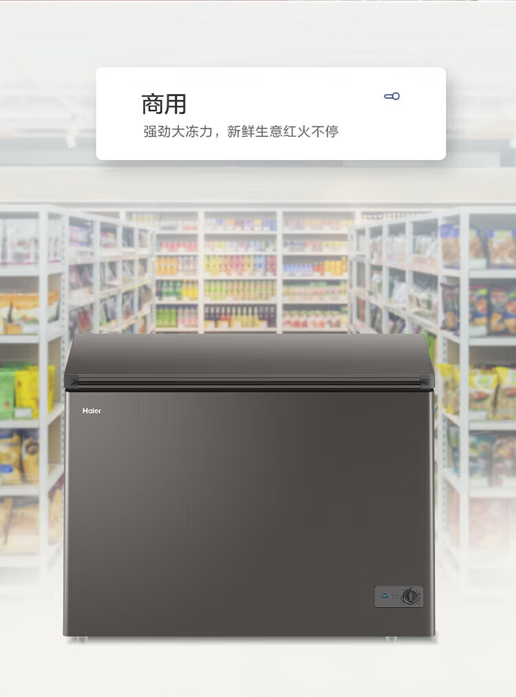 Haier freezer household 25-year-old new product 200/300 liters or more commercial large-capacity refrigeration and freezing dual-purpose horizontal freezer Freezer conversion frost reduction preservation quick freezing 200L |-30 deep freezing + frost reduction 80 + power outage protection