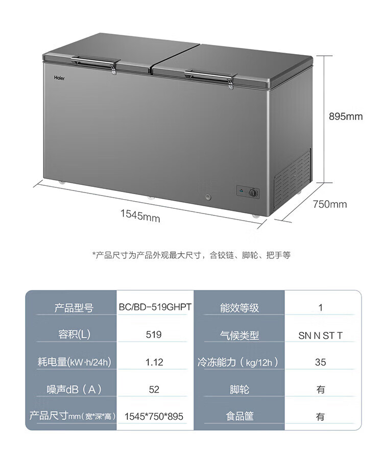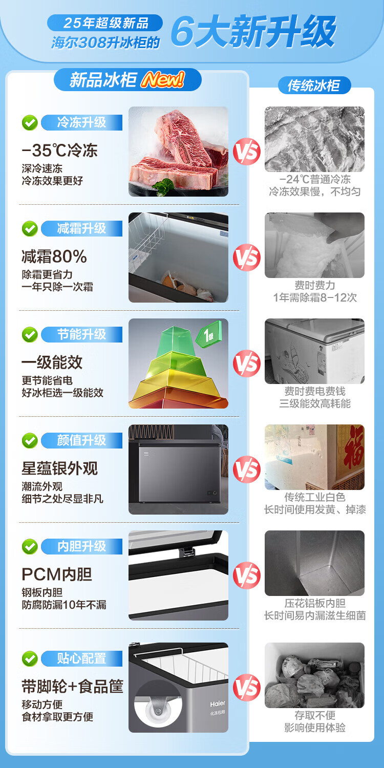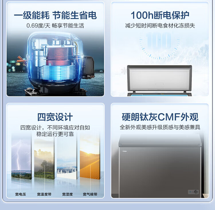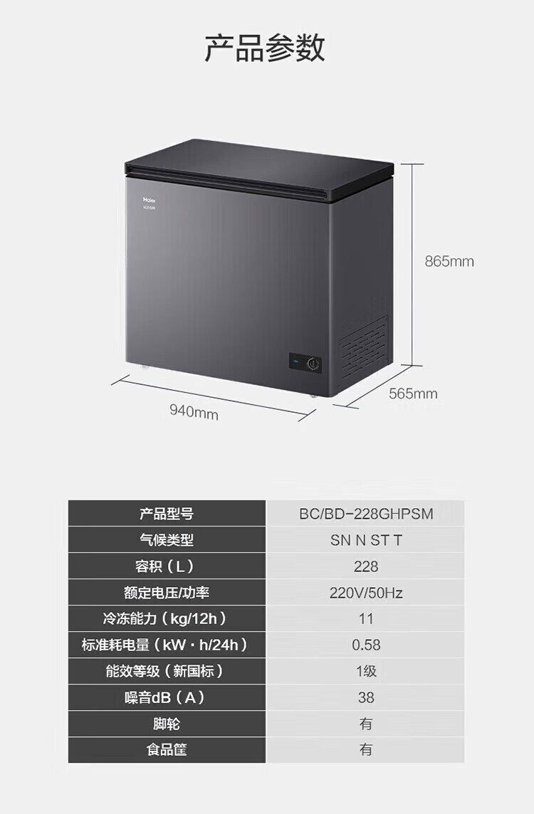 Haier freezer household 25-year-old new product 200/300 liters or more commercial large-capacity refrigeration and freezing dual-purpose horizontal freezer Freezer conversion frost reduction preservation quick freezing 200L |-30 deep freezing + frost reduction 80 + power outage protection