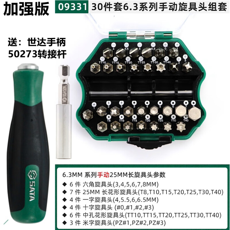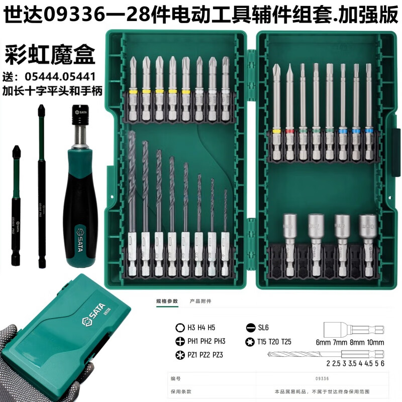 SATA Tools 09337 - 44-piece power tool accessories set 09336 Rainbow Magic Box screwdriver bit set 0933744 bit set box with extended cross