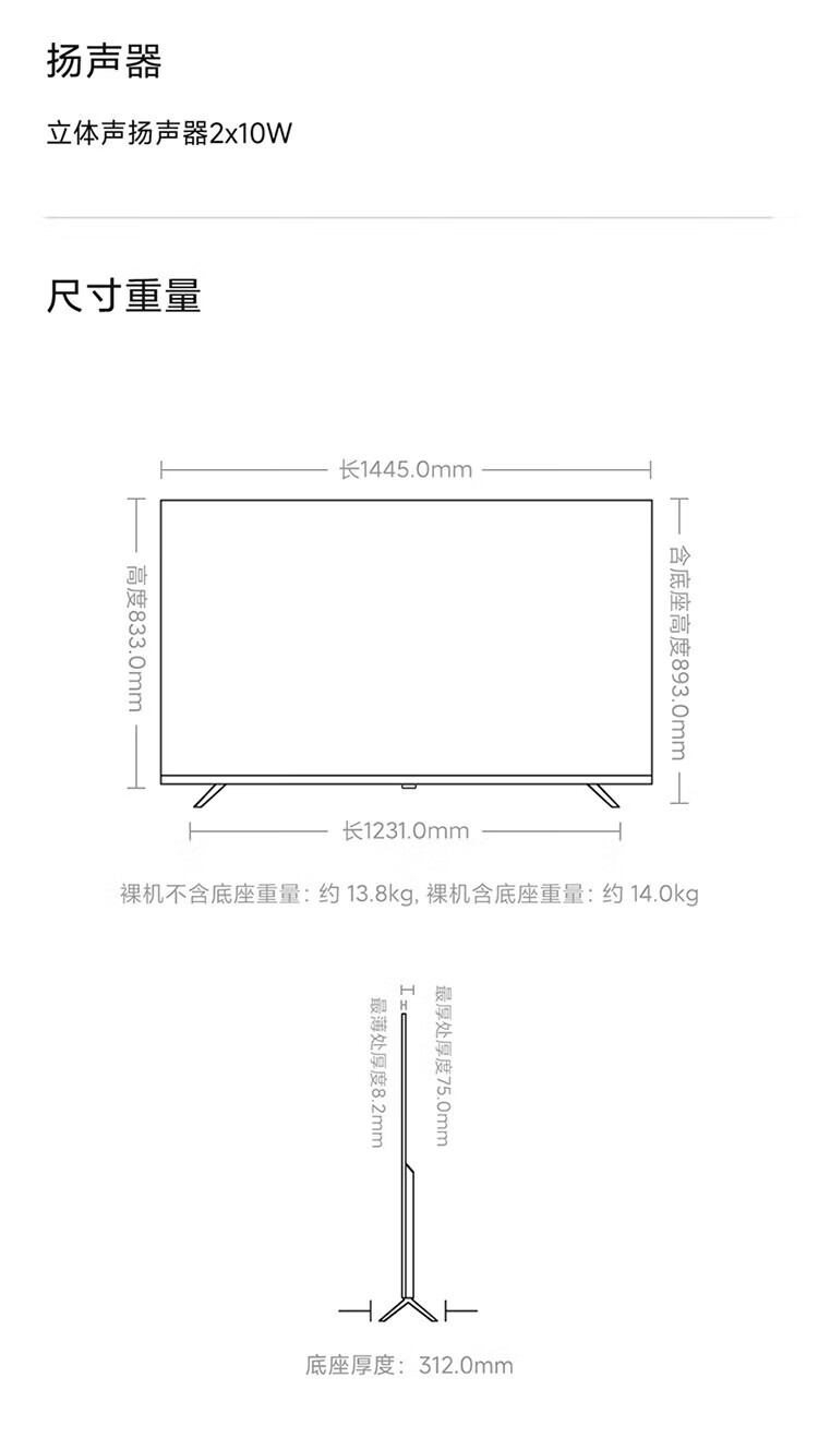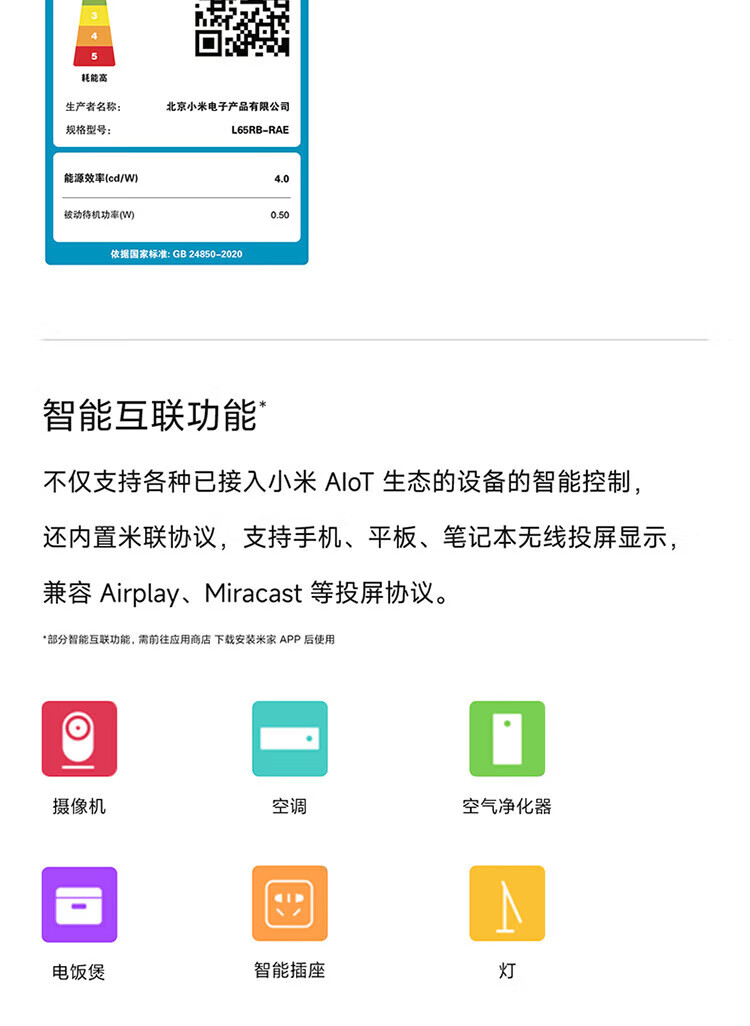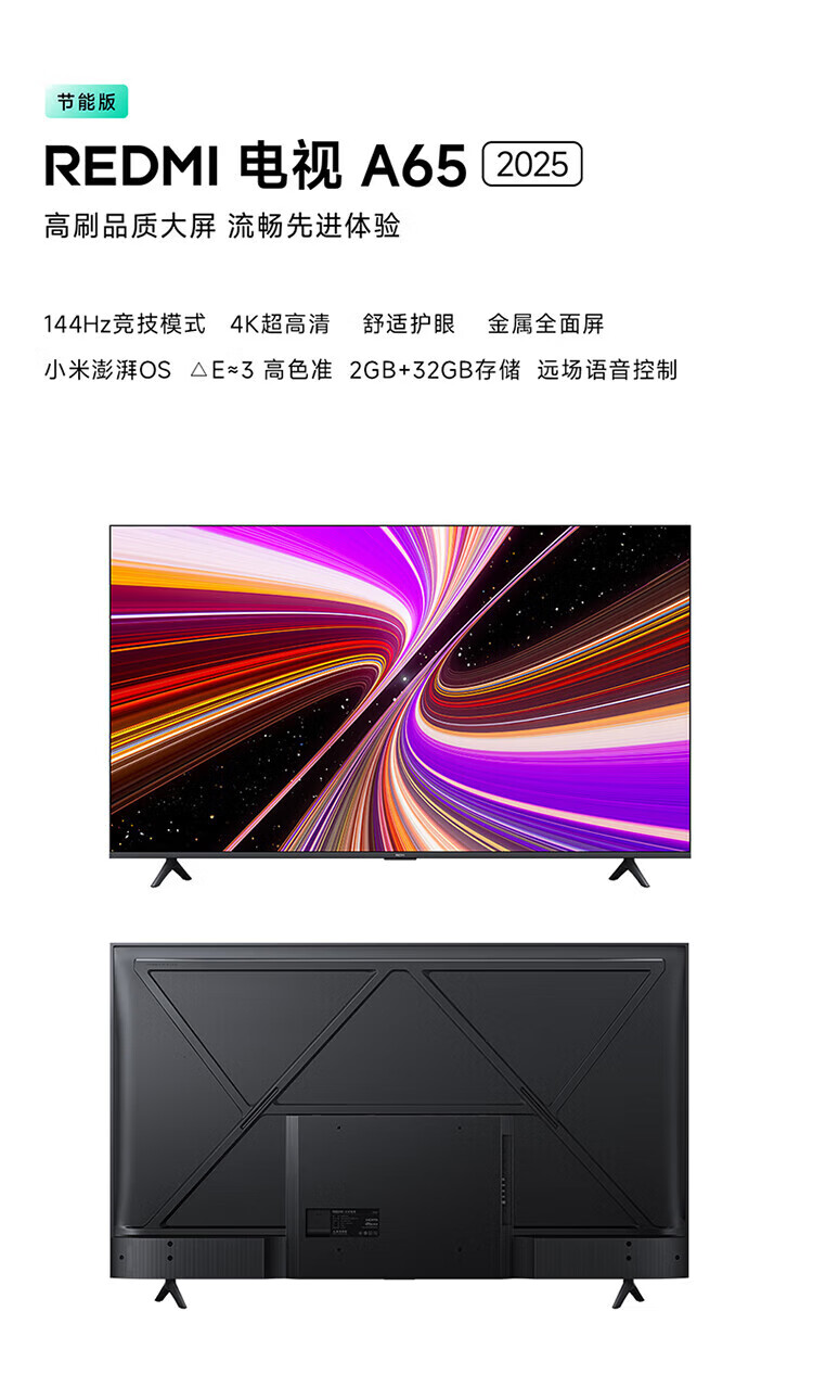 Xiaomi TV 65-inch REDMI A65 first-class energy efficiency energy-saving version 144HZ high brush 2+32G large storage smart flat-screen TV mobile bracket door installation 65-inch installation version TV + mobile bracket + installation