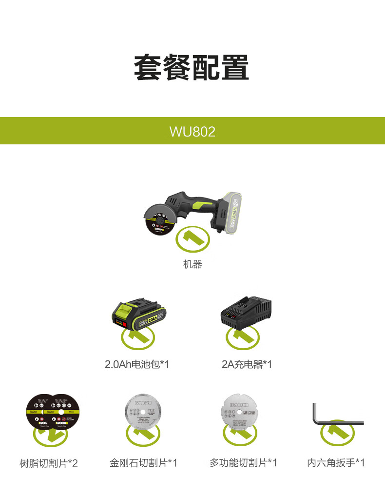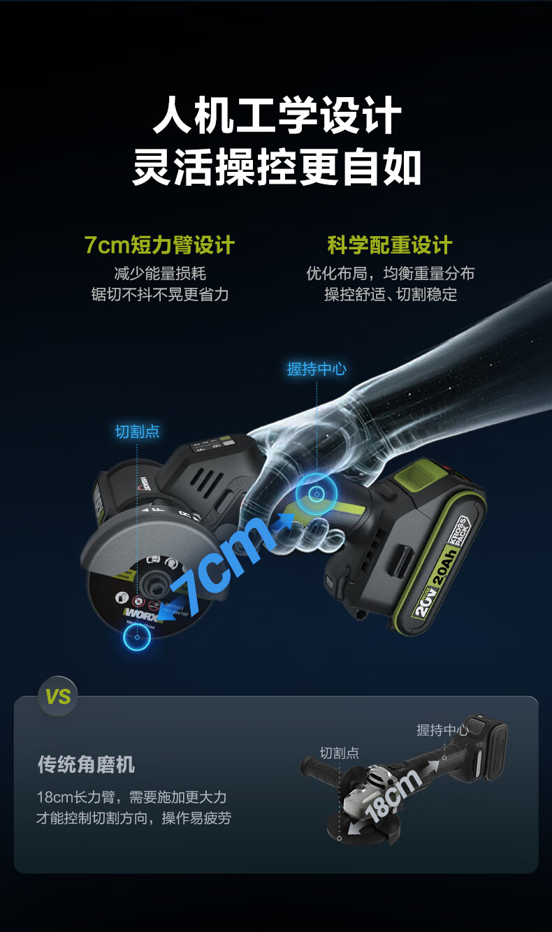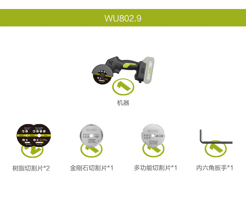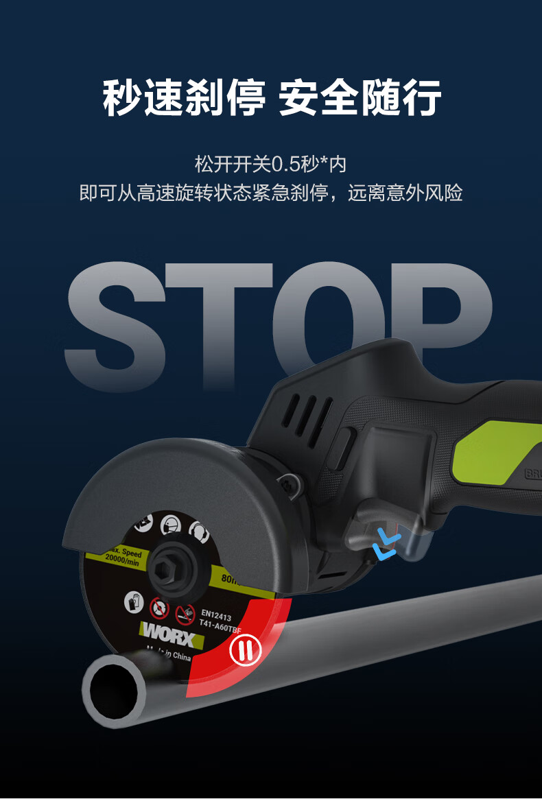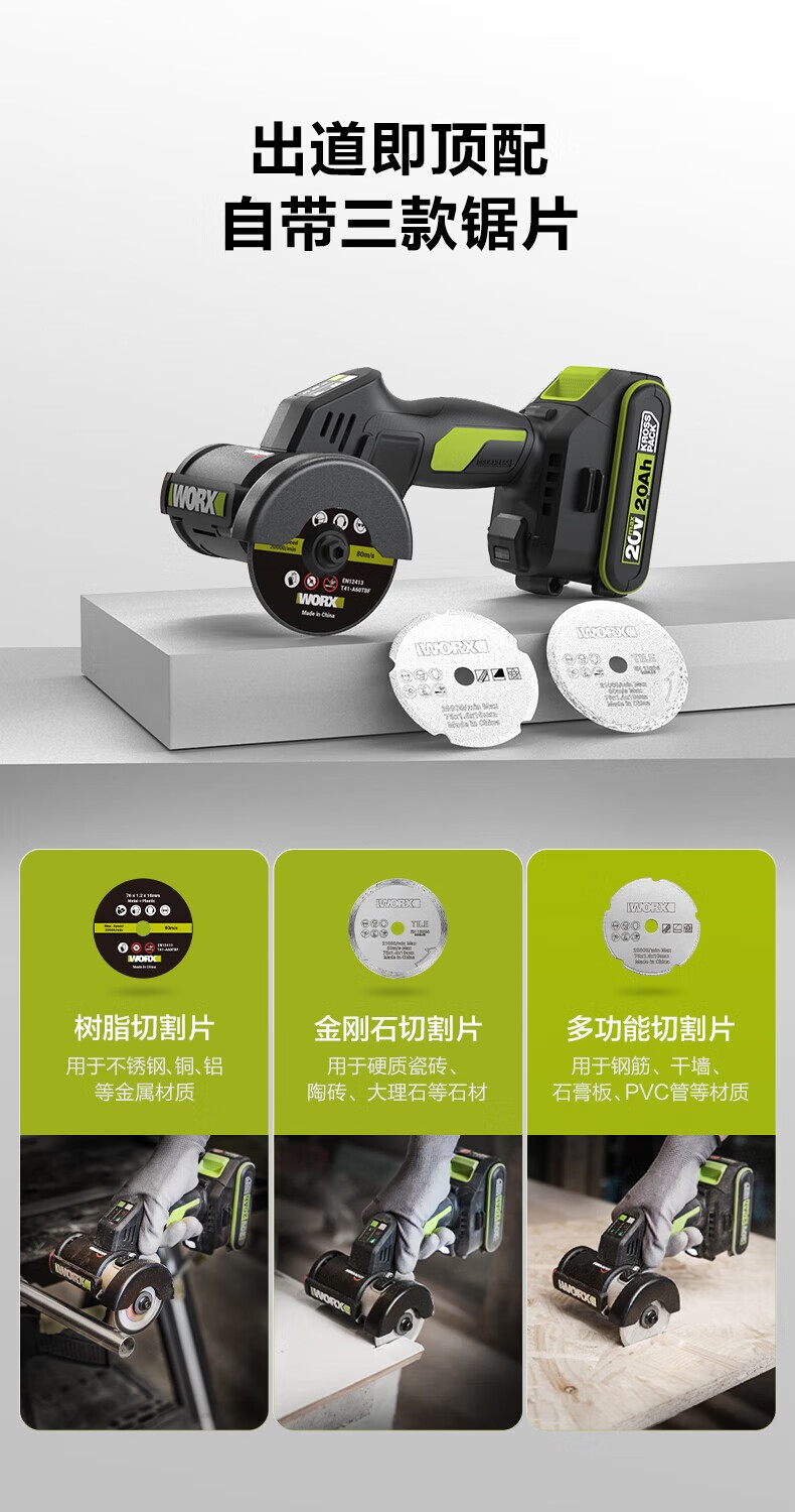 WORX WU802 Kitty Hawk Lithium Battery Small Brushless Angle Grinder Electric Handheld Cutting Machine Polishing Seam Electric Tool WU802 2.0 Single Battery Fast Charging