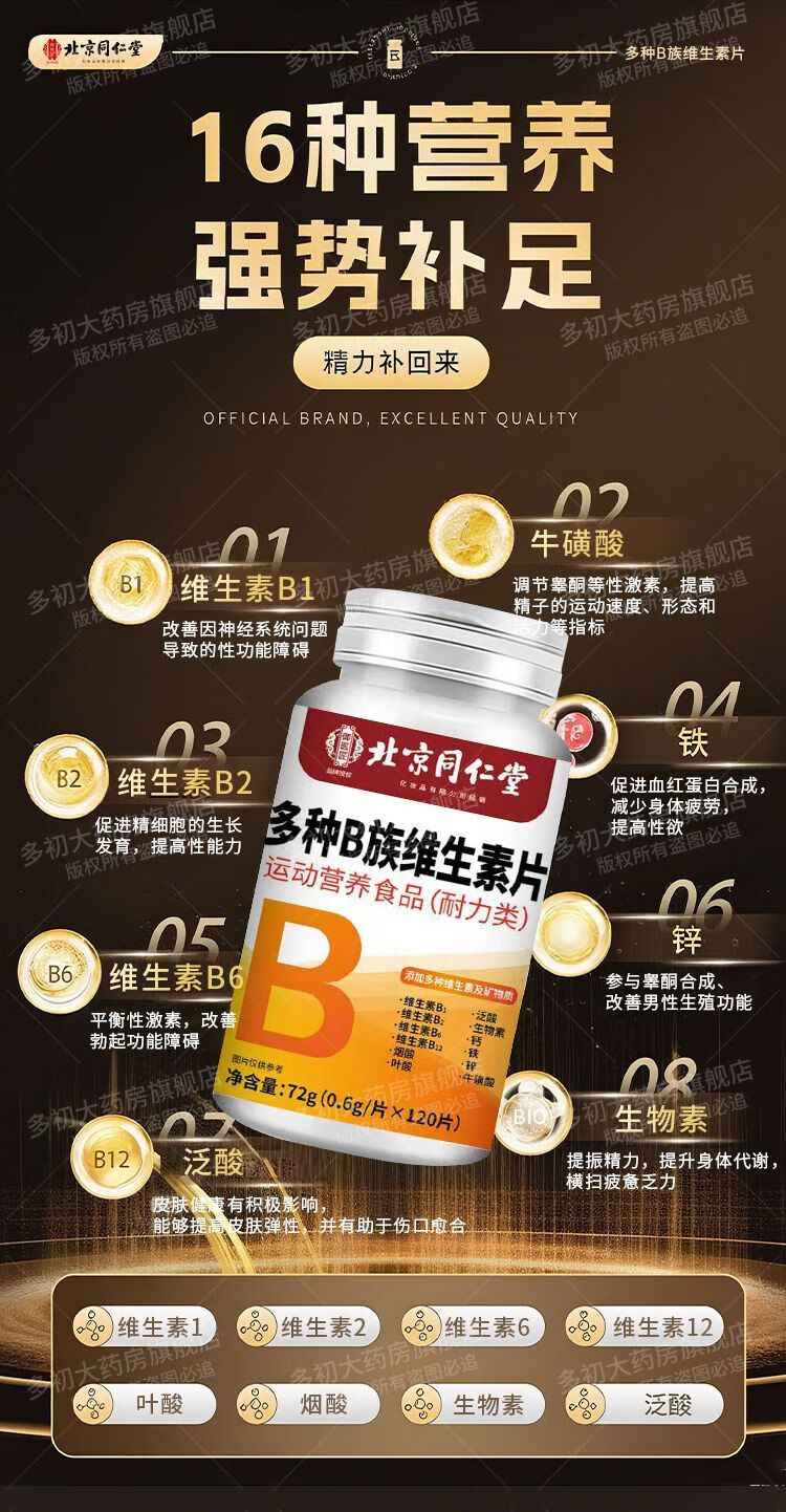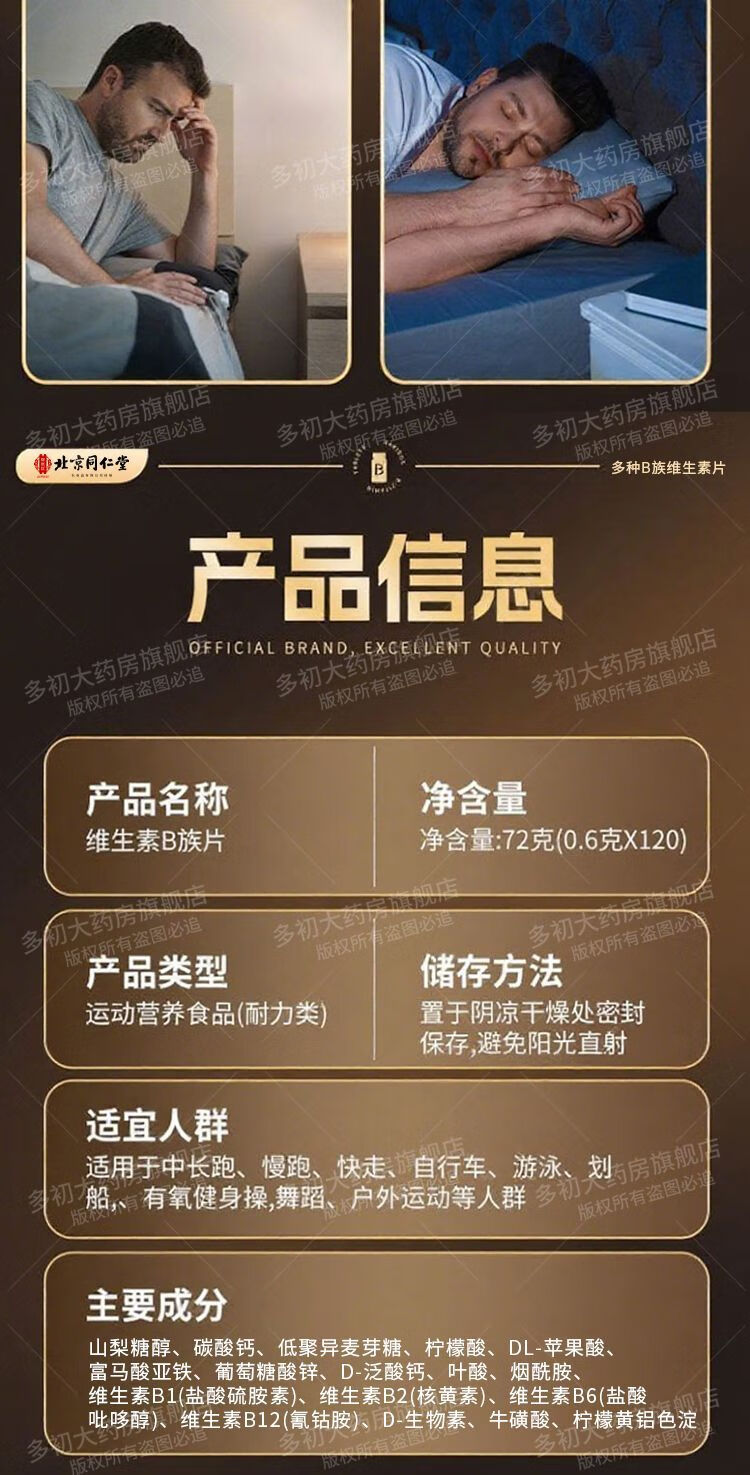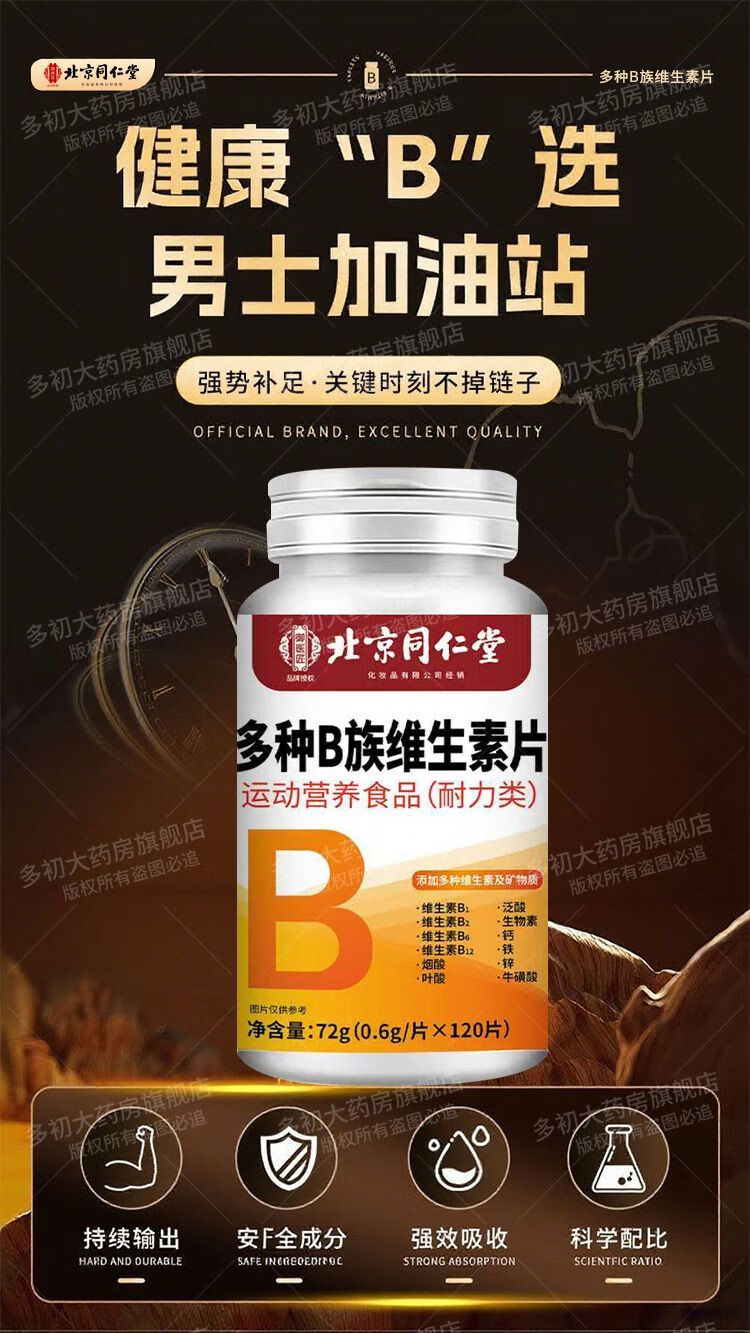 Beijing Tongrentang Concentrated Multivitamin B Complex Tablets 120 Tablets, Chinese Herbal Medicine for Promoting and Replenishing Essence and Replenishing the Body to Stay Up Late Beijing Tongrentang 2 Bottles, 240 Tablets, Powerful and Energetic