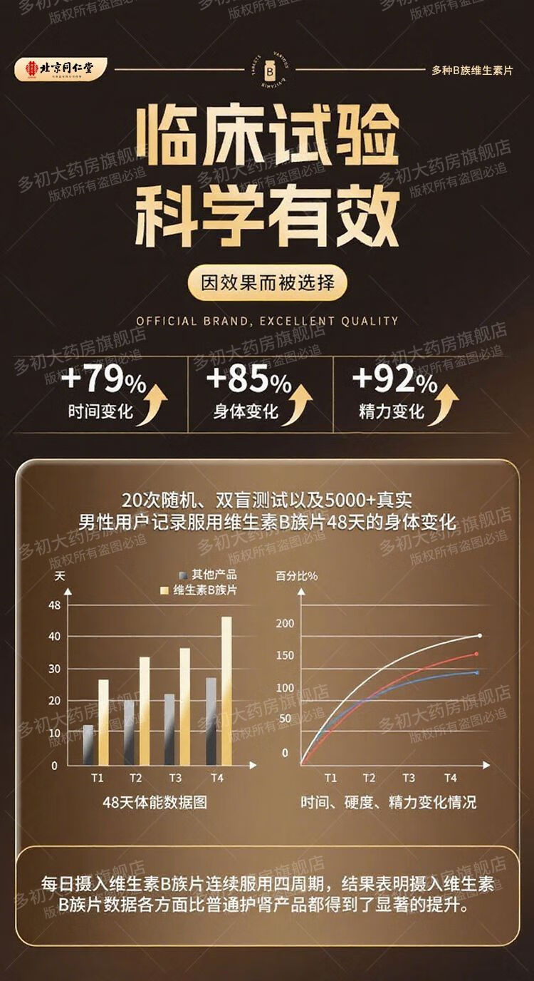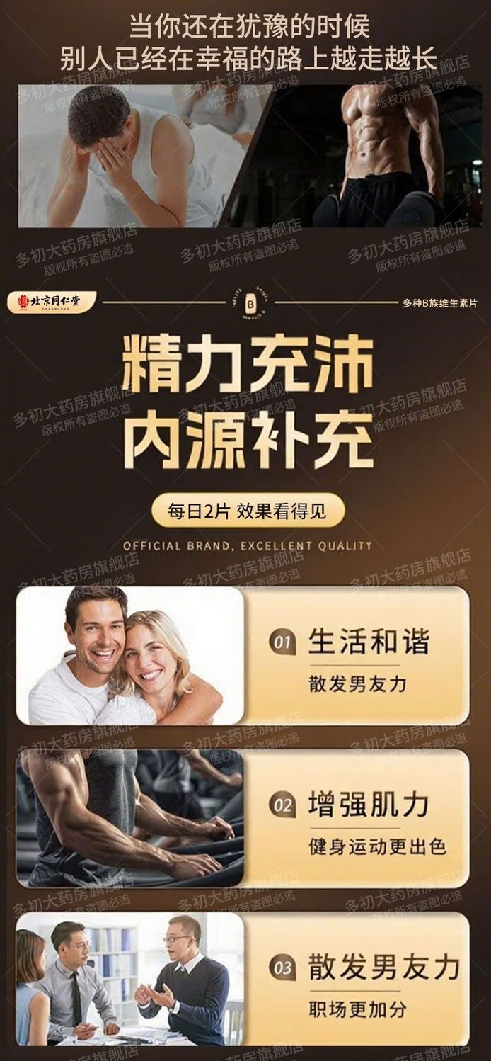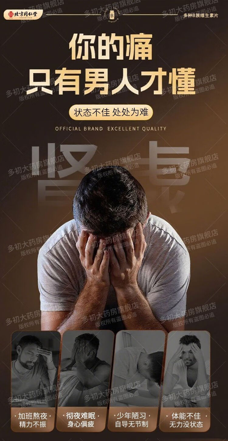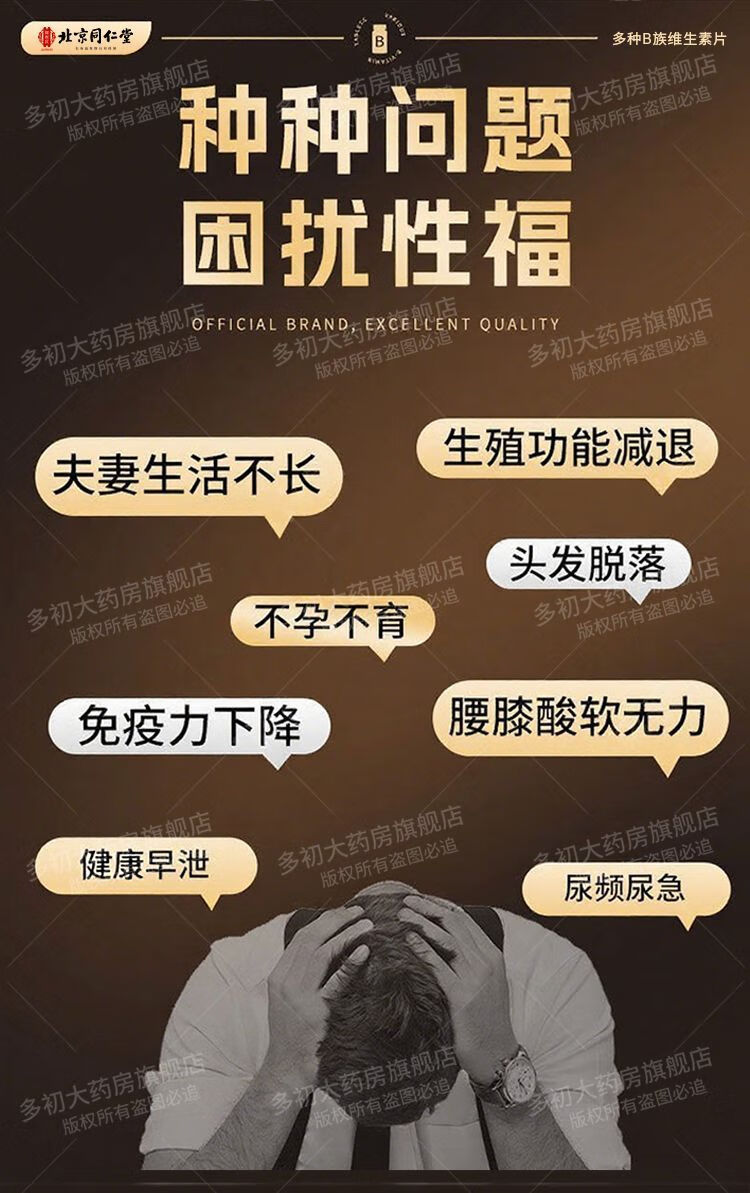 Beijing Tongrentang Concentrated Multivitamin B Complex Tablets 120 Tablets, Chinese Herbal Medicine for Promoting and Replenishing Essence and Replenishing the Body to Stay Up Late Beijing Tongrentang 2 Bottles, 240 Tablets, Powerful and Energetic