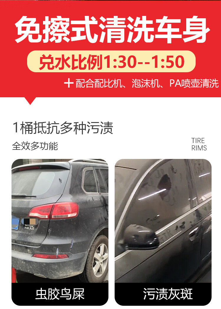 Car Wash Self-Cleaning Agent Powerful Decontamination-Free Car Washing Liquid Tire Rim Hub Steel Rim Cleaning Agent Liquid Car Large Bucket Self-Cleaning Agent (40 catties) + 1 Large Watering Can