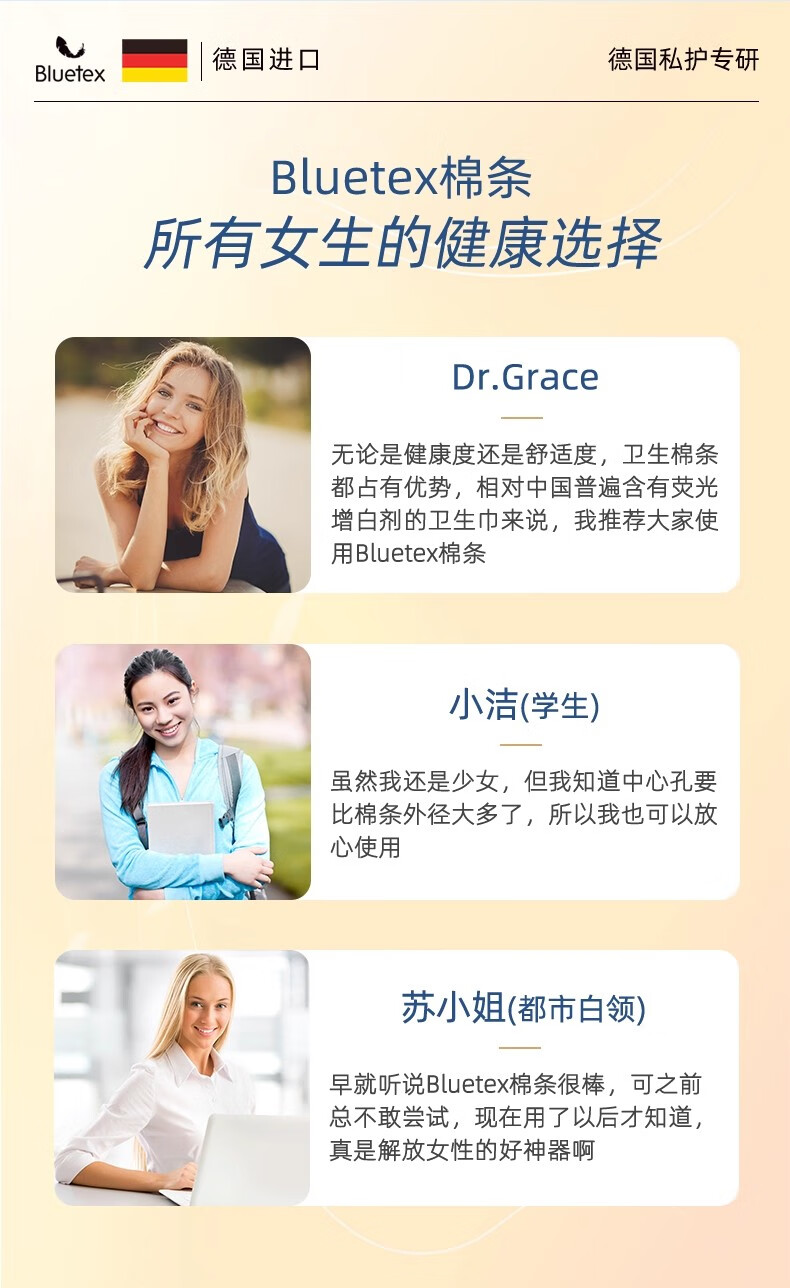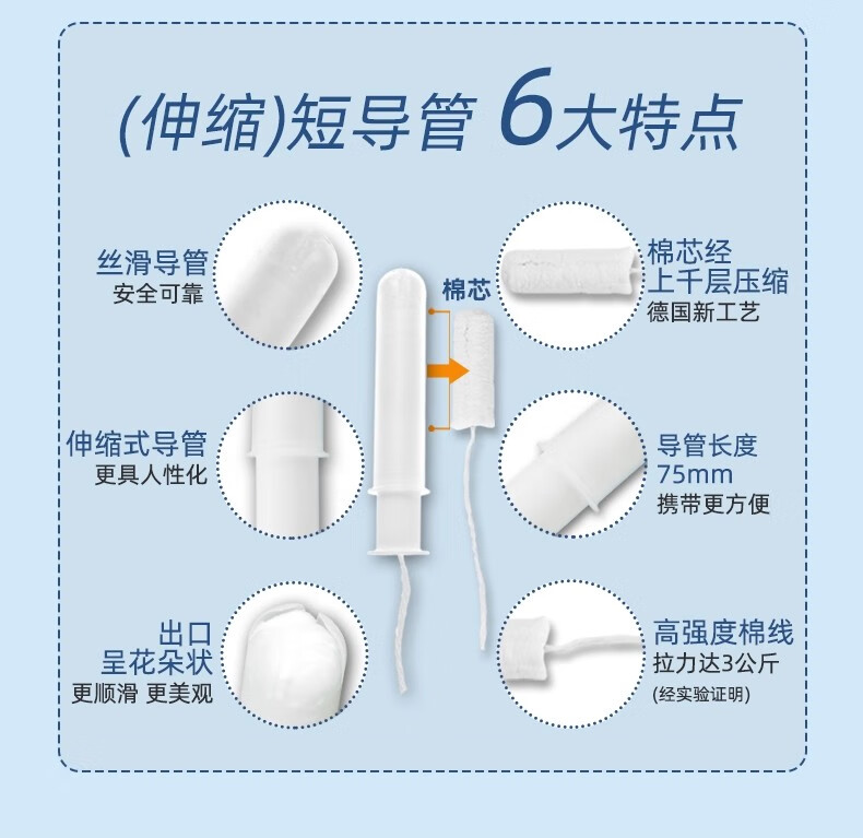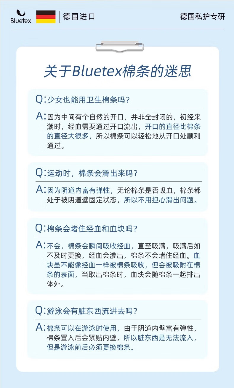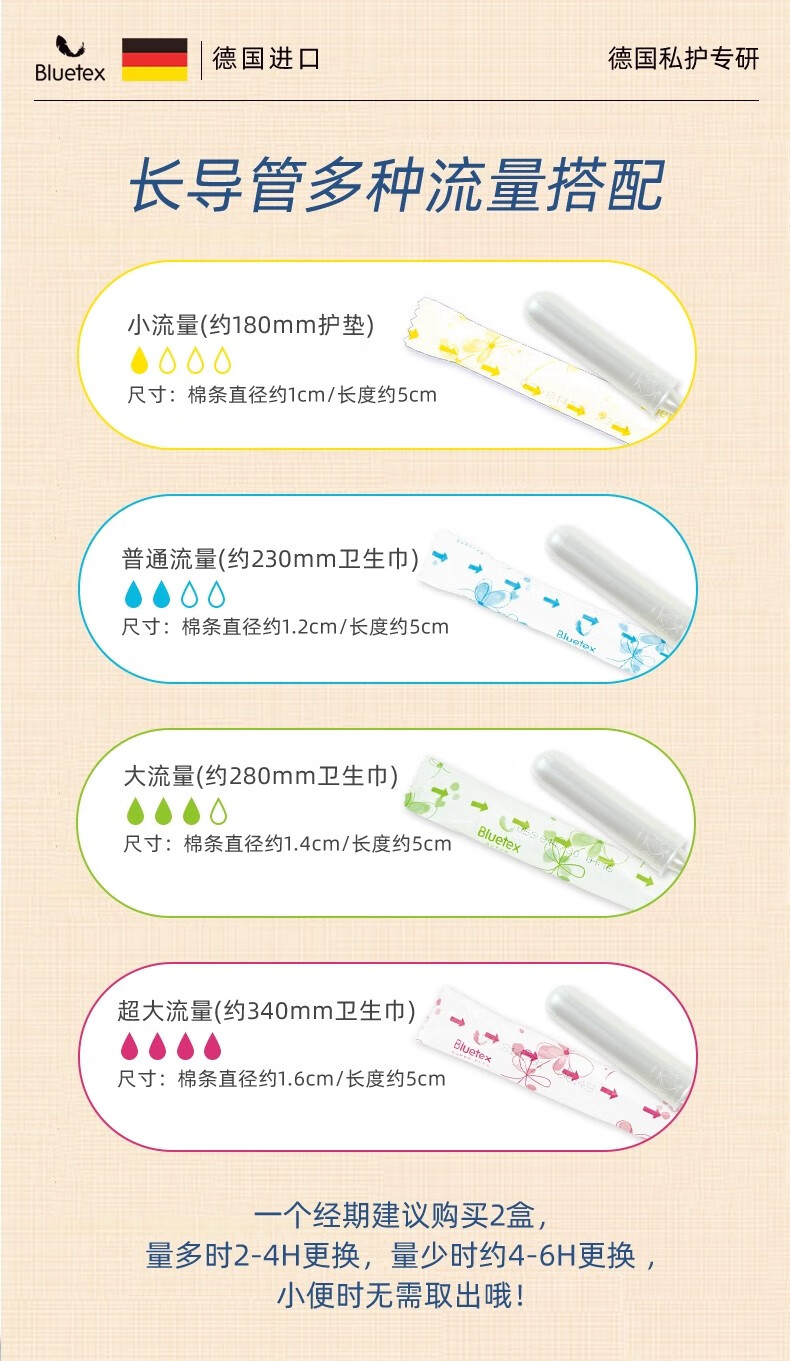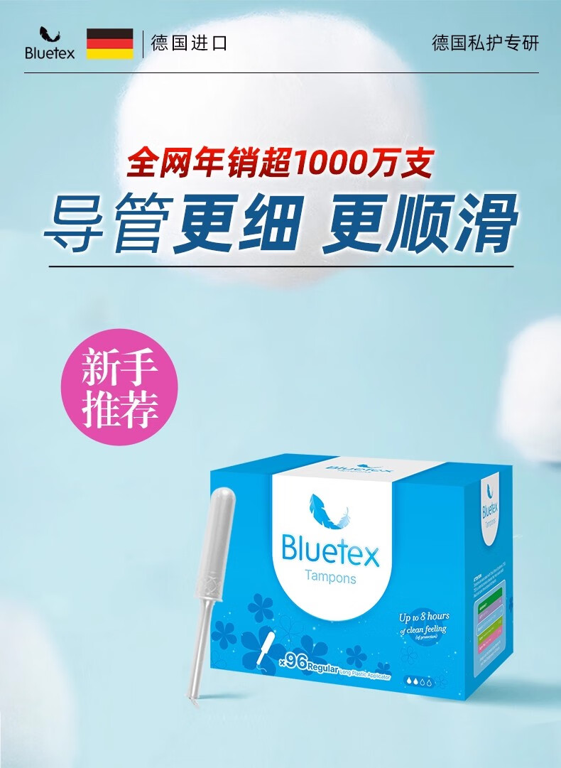 Bluetex (Bluetex) 96-piece stocking pack, tampon catheter-type leak-proof swimming swab, long catheter, large flow, 96-count