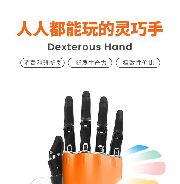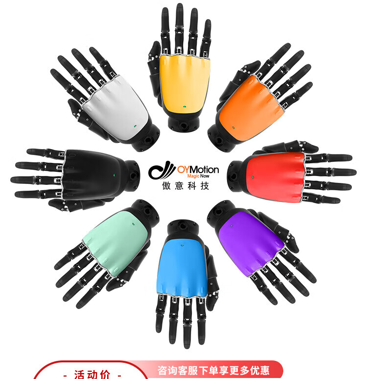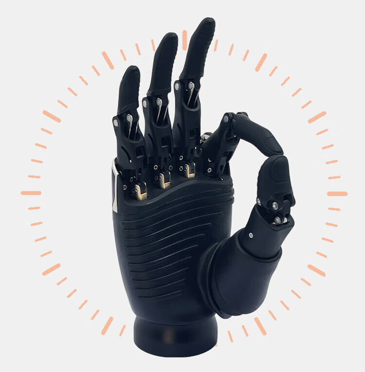 OYMOTION Aoyi Technology Robot Dexterous Hand ROH-LiteS001 Educational and Scientific Research Intelligent Bionic Hand Robotic Arm Five Finger Dexterous Hand Bionic Glove Humanoid Robotic Hand Black - Standard Four-core Cable - 485 Interface - Left Hand