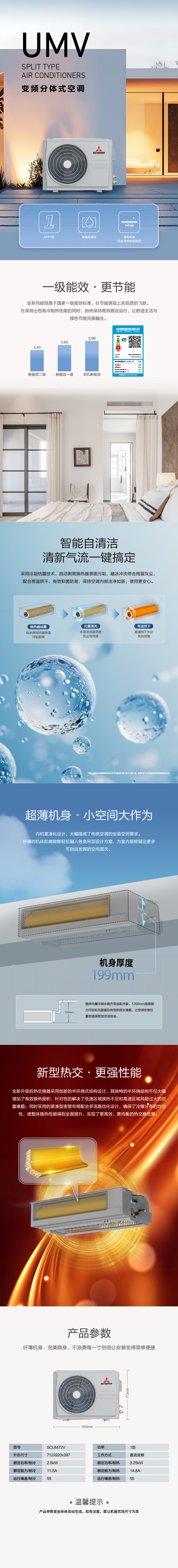 MITSUBISHI Mitsubishi Heavy Industries one-to-one central air conditioner for living room, bedroom and restaurant UMV series first-class energy efficiency energy-saving full DC variable frequency duct machine 3 hp 1.5 hp large 2 hp UM series 3 hp