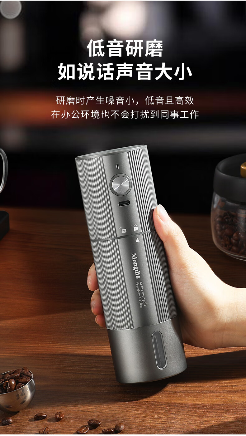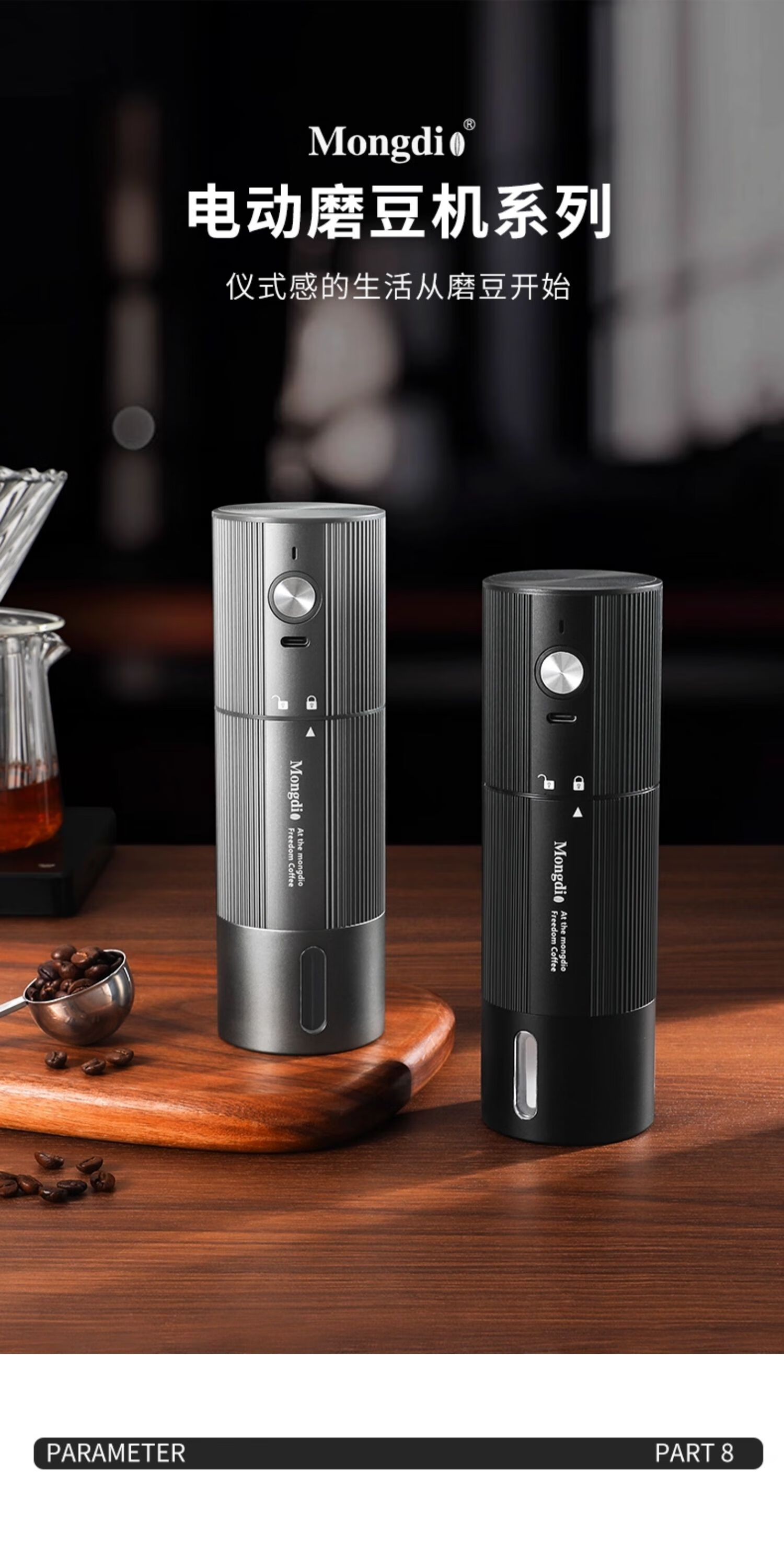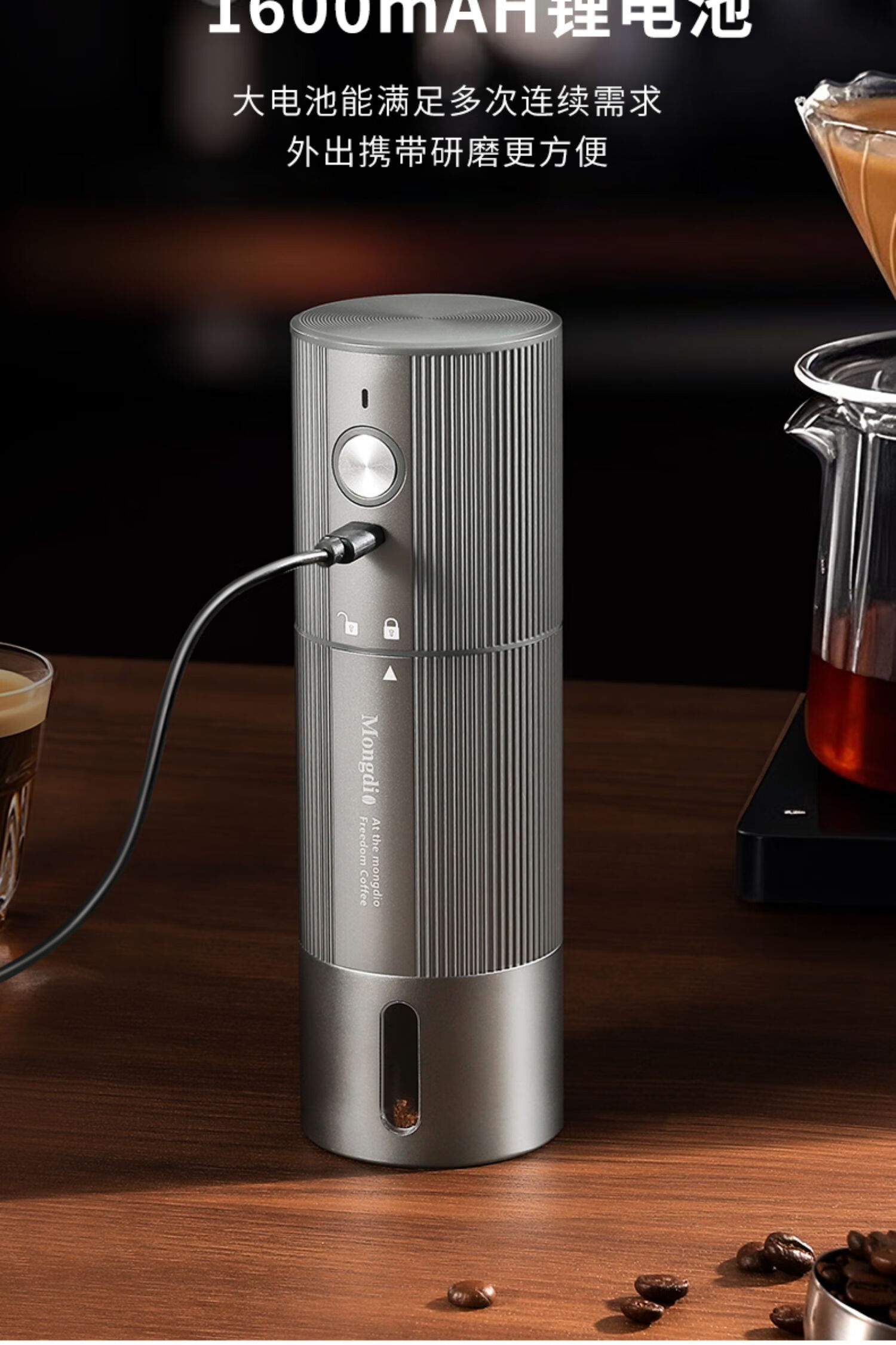 Mongdio bean grinder electric coffee bean grinder portable coffee machine rechargeable steel core grinder T2 electric bean grinder-silver seven-star knife cone