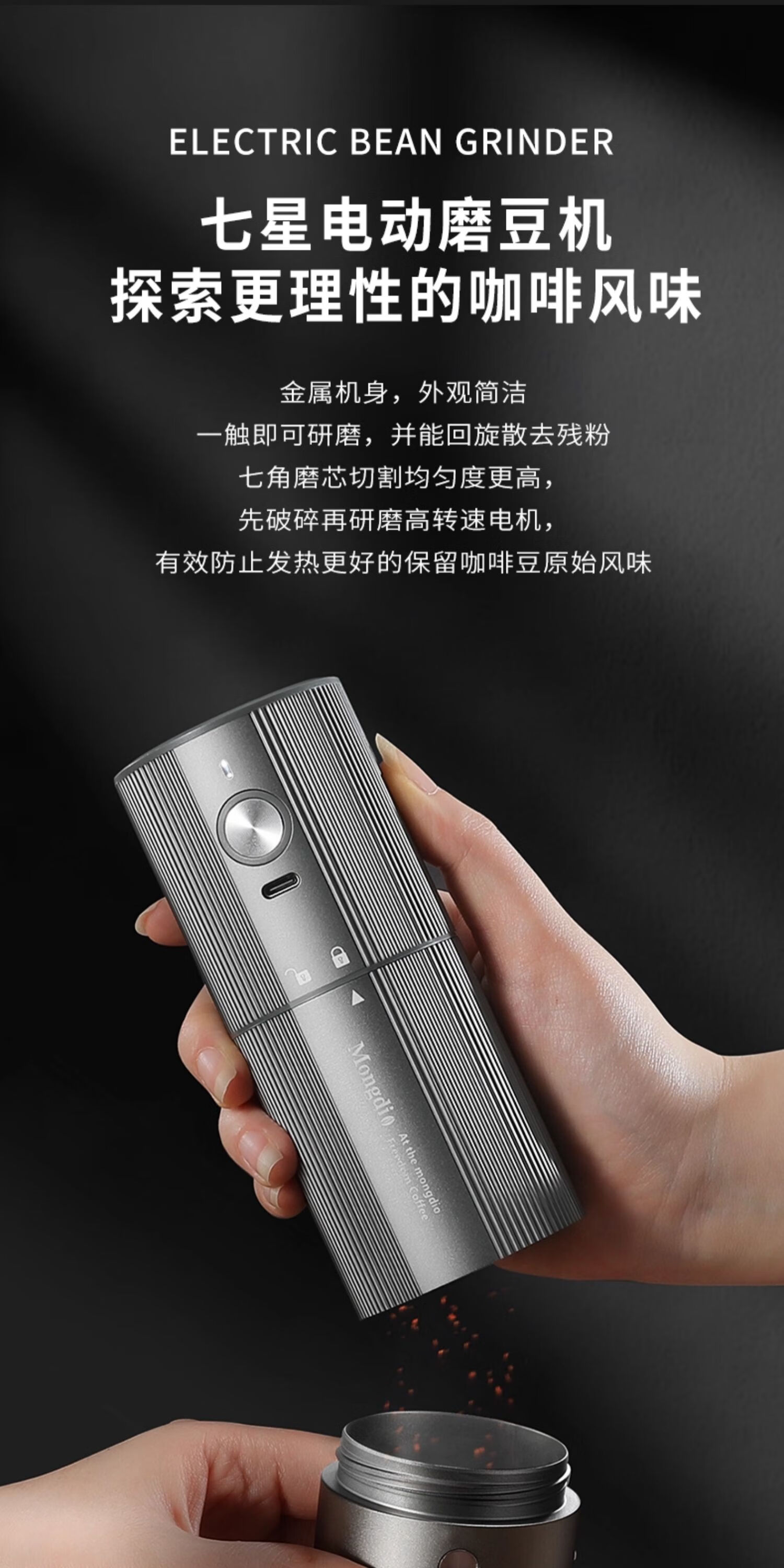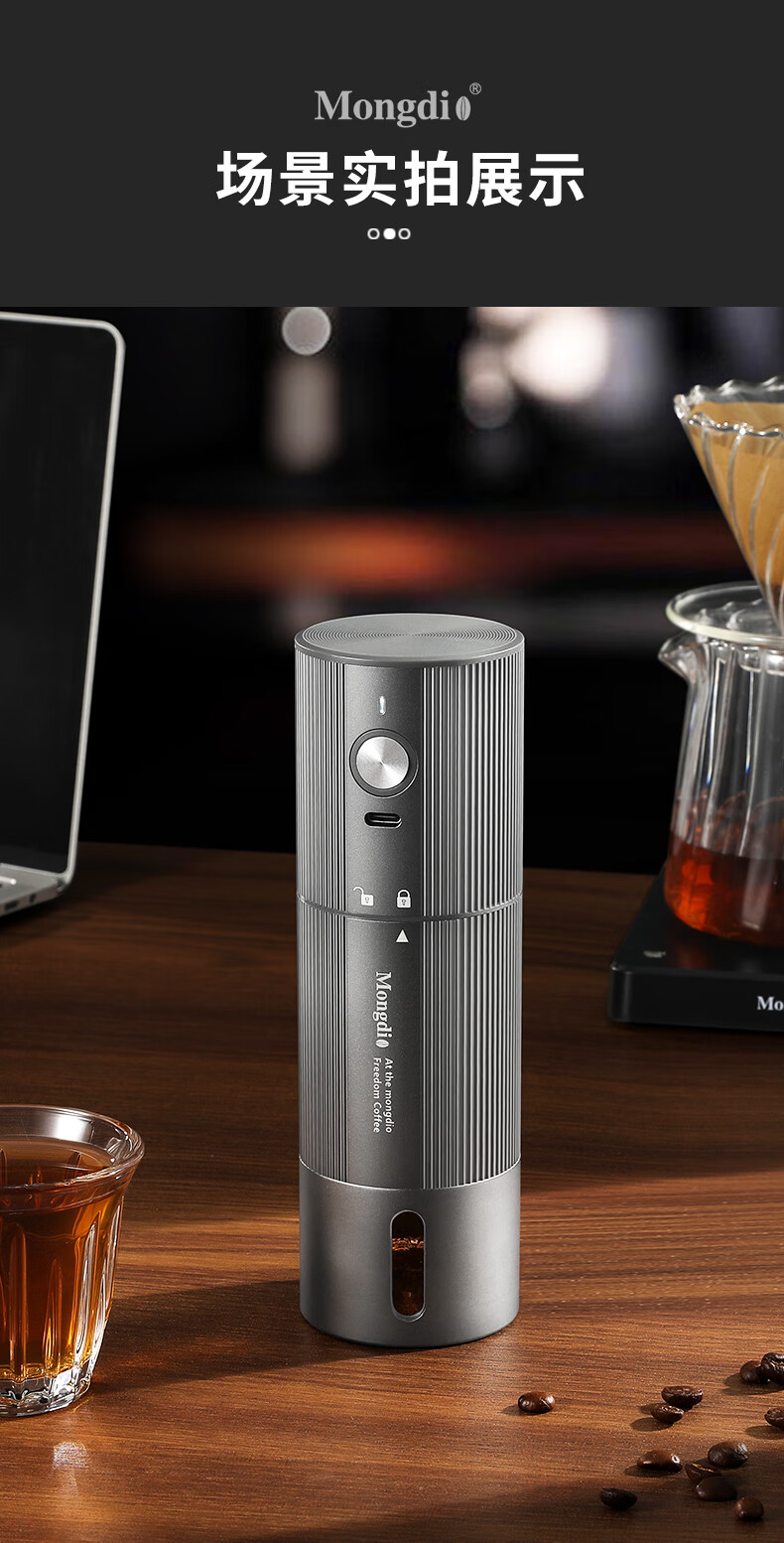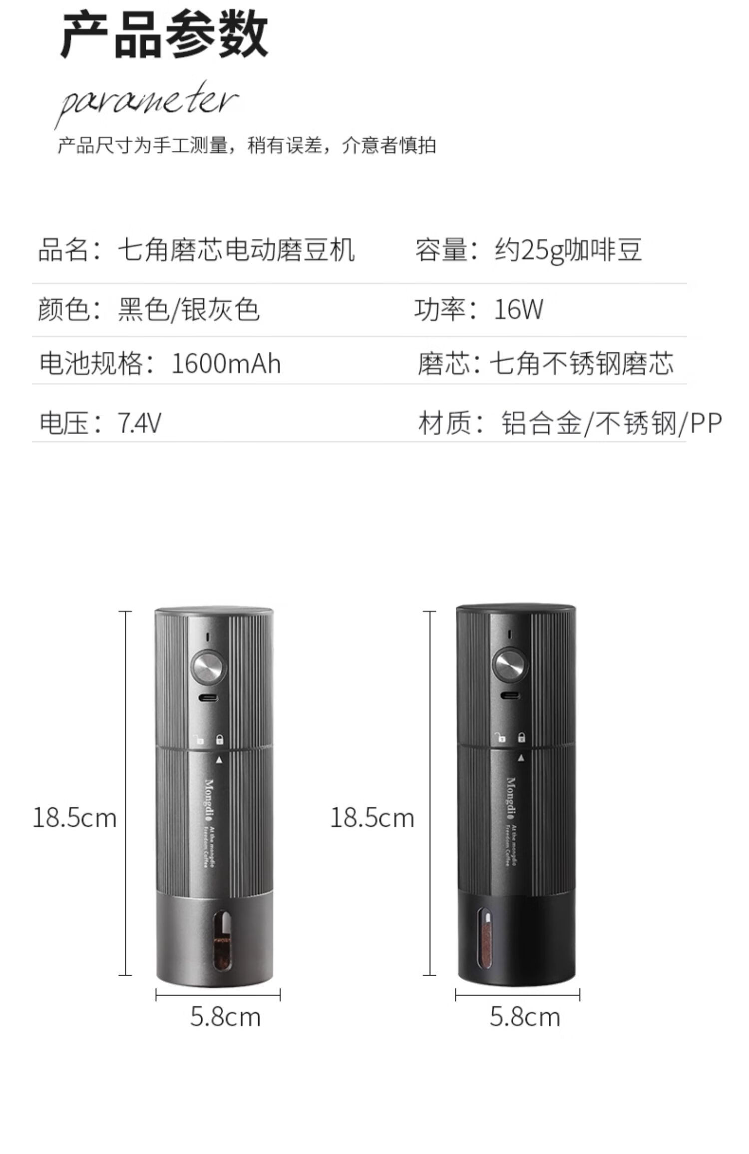 Mongdio bean grinder electric coffee bean grinder portable coffee machine rechargeable steel core grinder T2 electric bean grinder-silver seven-star knife cone
