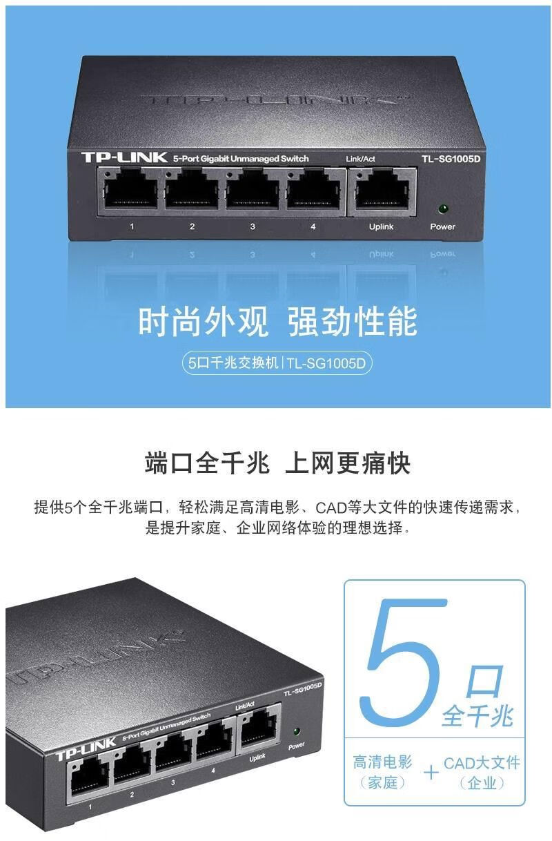 Pulian Pulian (TP-LINK) Pulian TPLINK switch 5-port 4-port Gigabit five-port steel shell 8-port branch line monitoring shunt hub switch 8 Gigabit steel shell cloud management TL-SG2008D