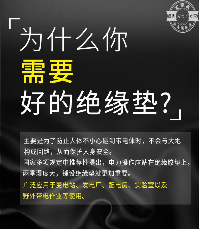 High-voltage insulating rubber pad for He Jiagong power plant, high-voltage insulating floor wear-resistant insulating pad for power distribution room, red and black 3mm (0.5*0.5m) black