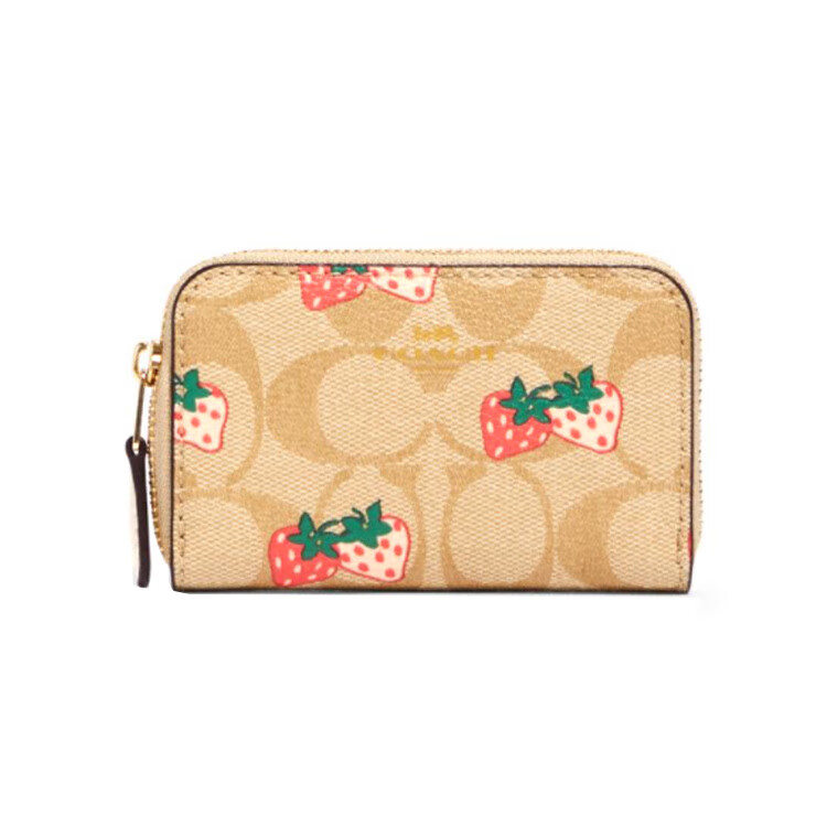 COACH Zip Around 12 strawberry print presbyopic wraparound zipper canvas with leather coin purse women's card basic outfit (bag + dust bag)