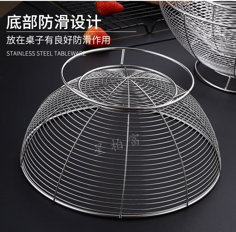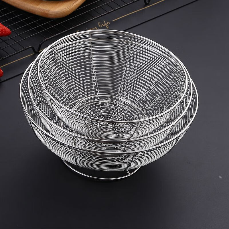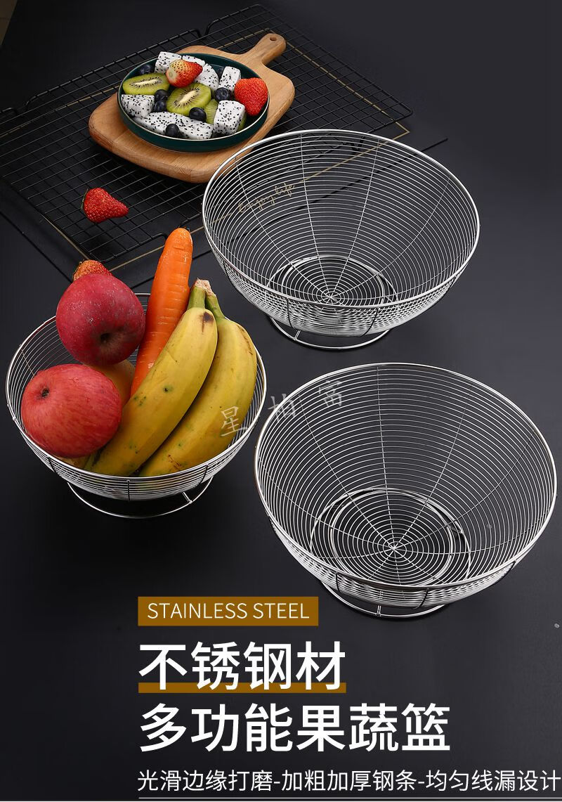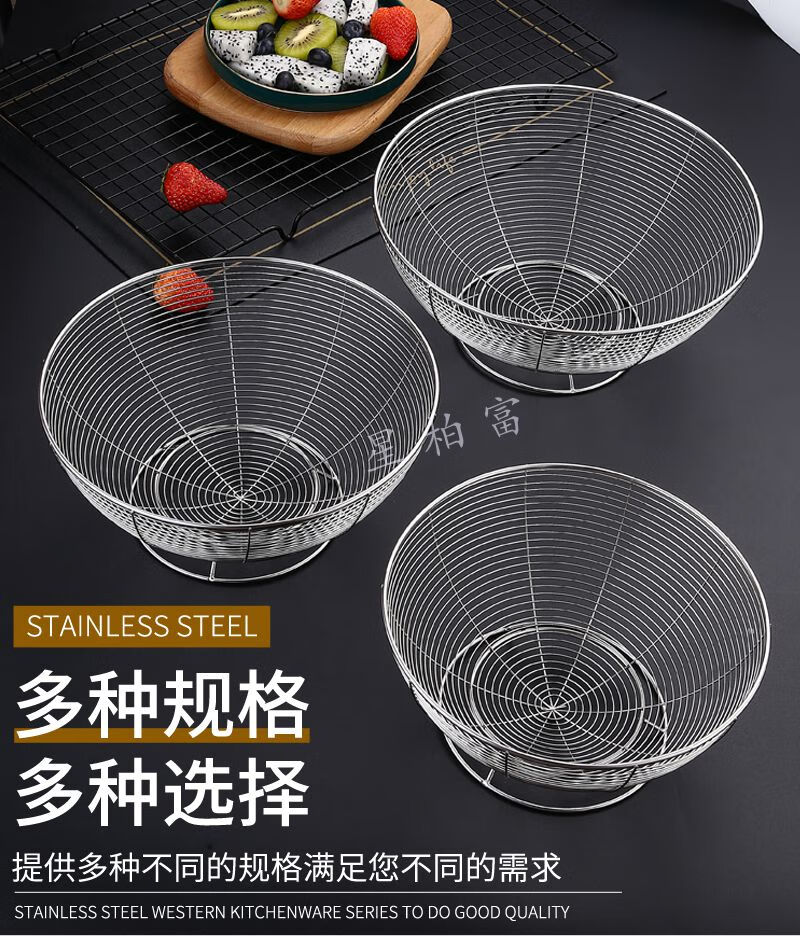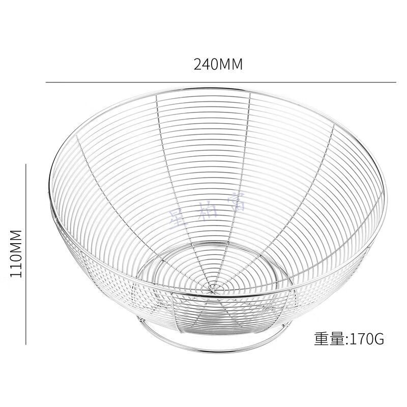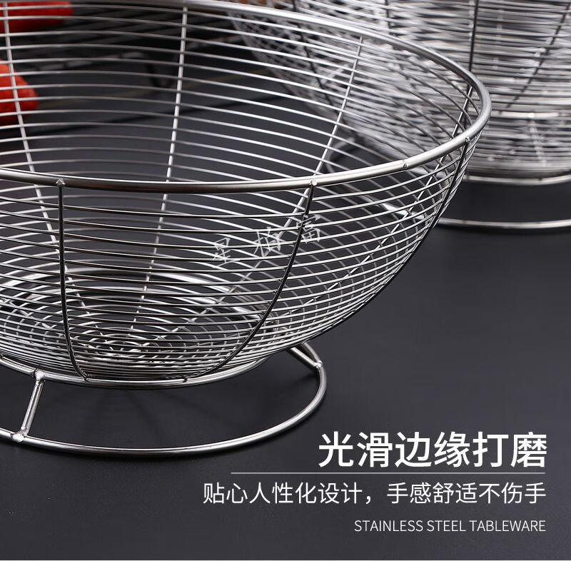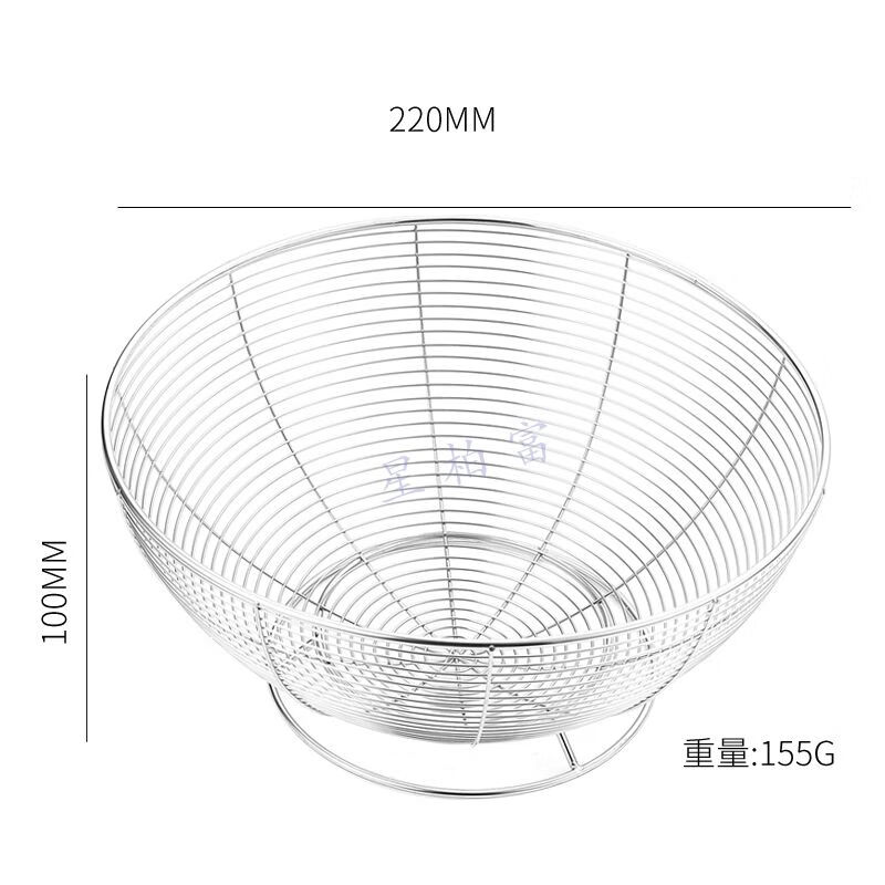 Drain basket, stainless steel household fruit basket, drain basket, fruit plate, vegetable basin, melons, fruits and vegetables, silver (20CM) round feet
